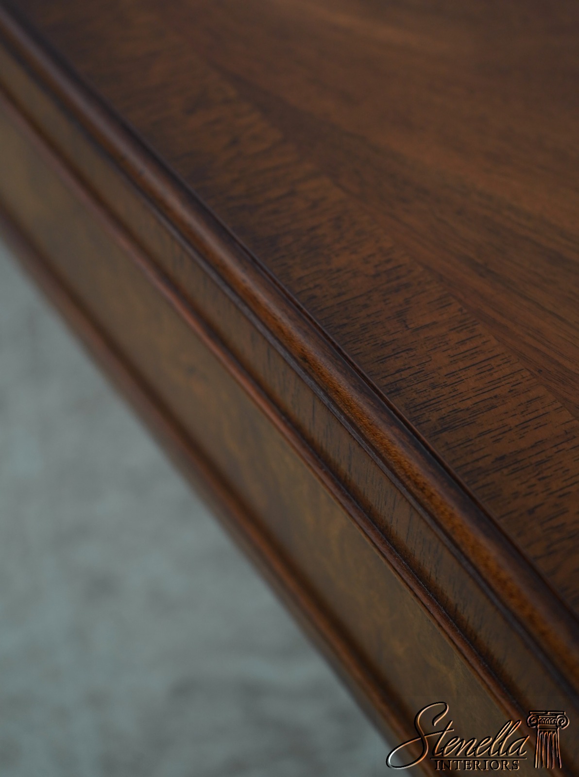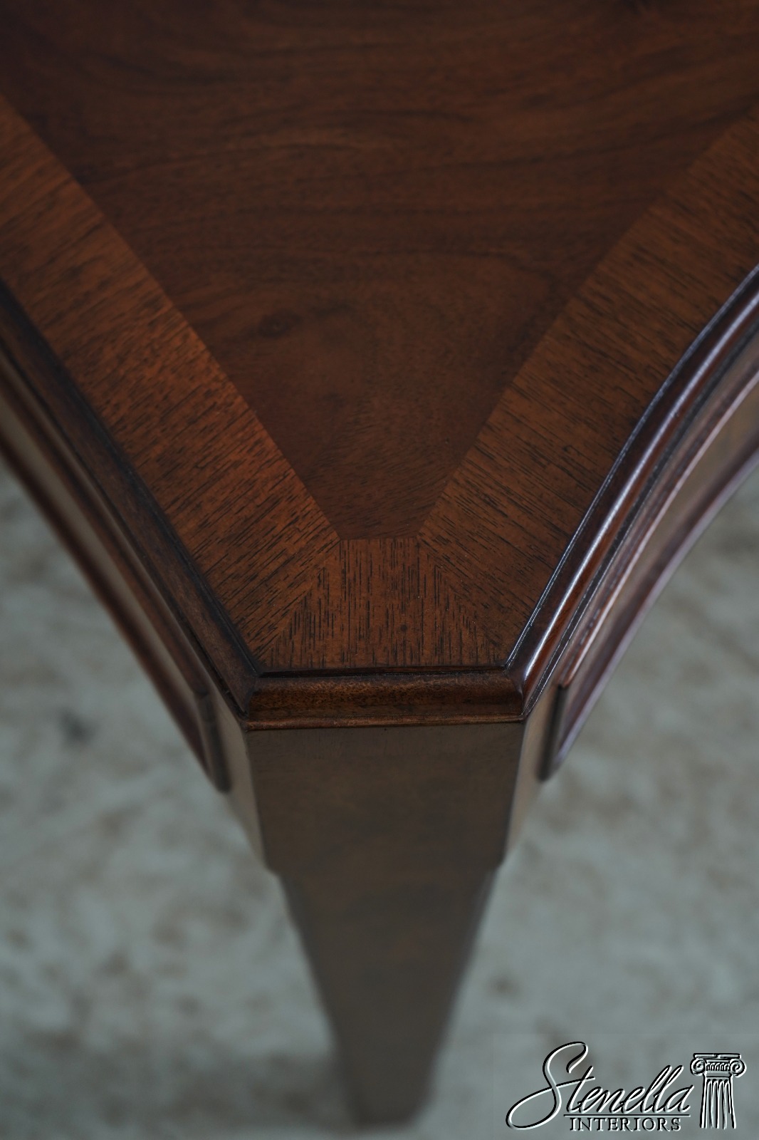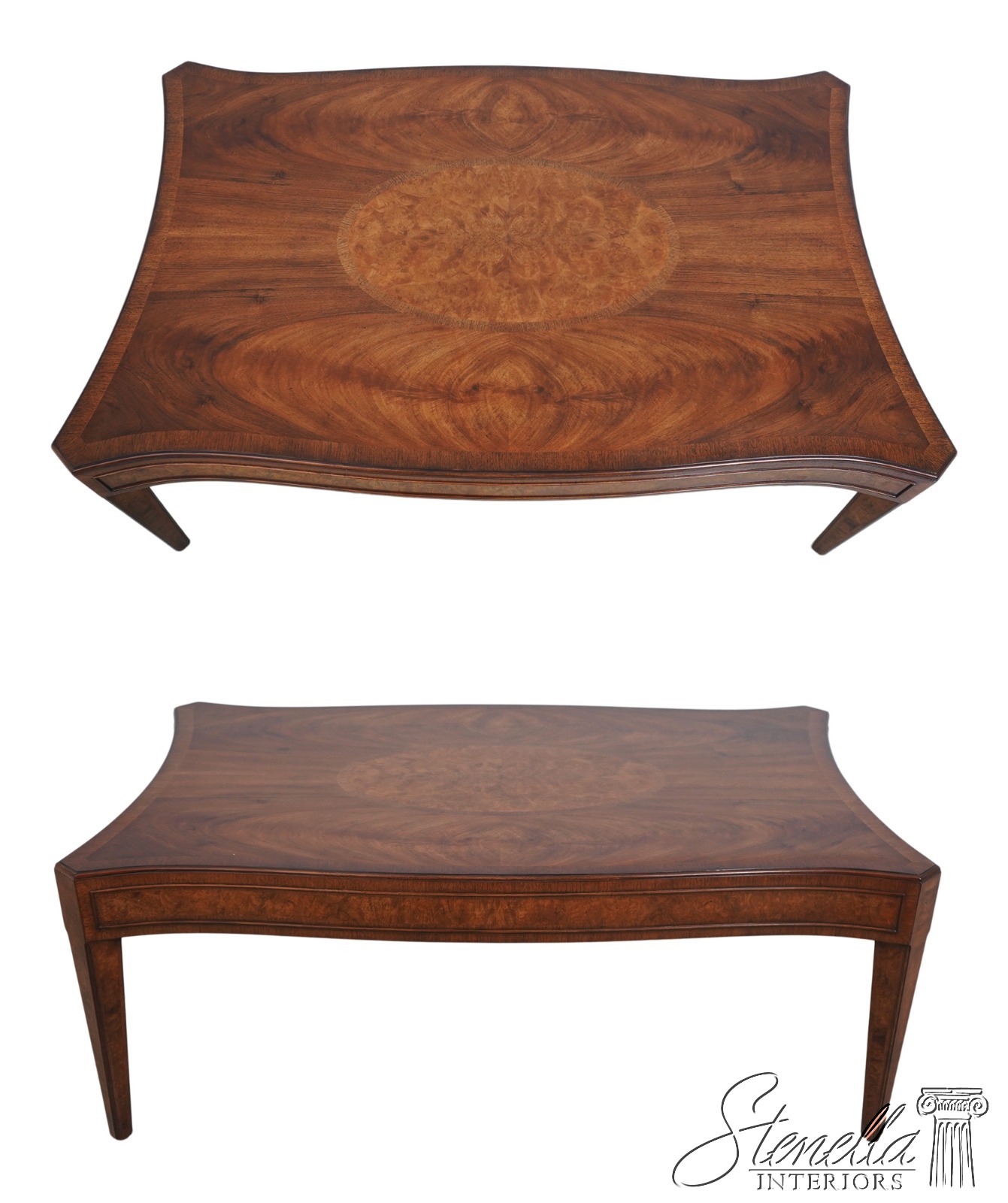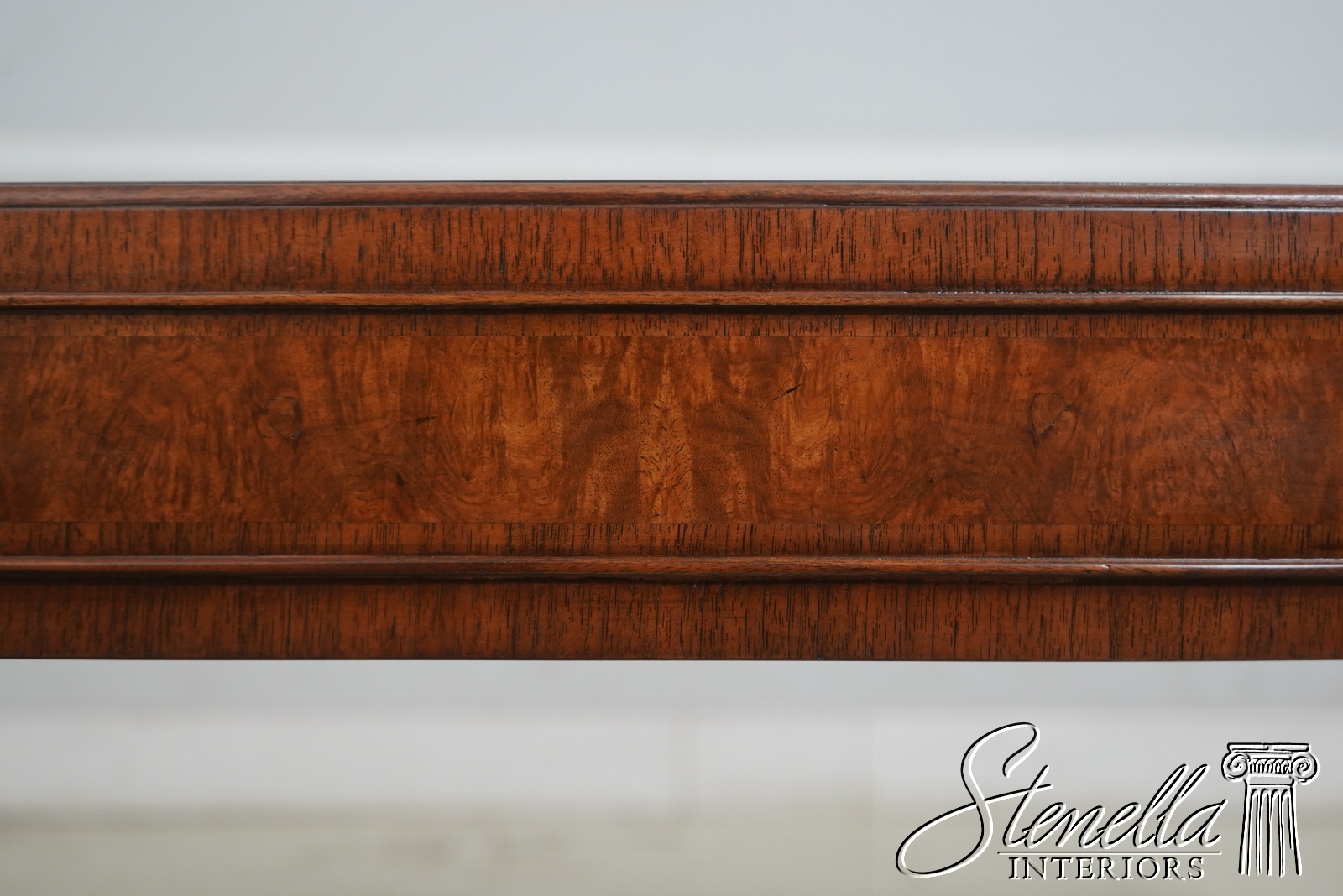 Details: High Quality Construction Large Impressive Table High Quality Construction Sheraton Style Gorgeous Mahogany Top w. Burl Walnut Center Inlay Offered @ Fraction Original Retail Cost