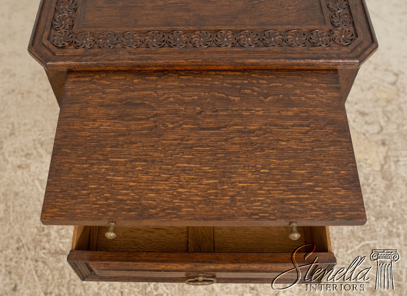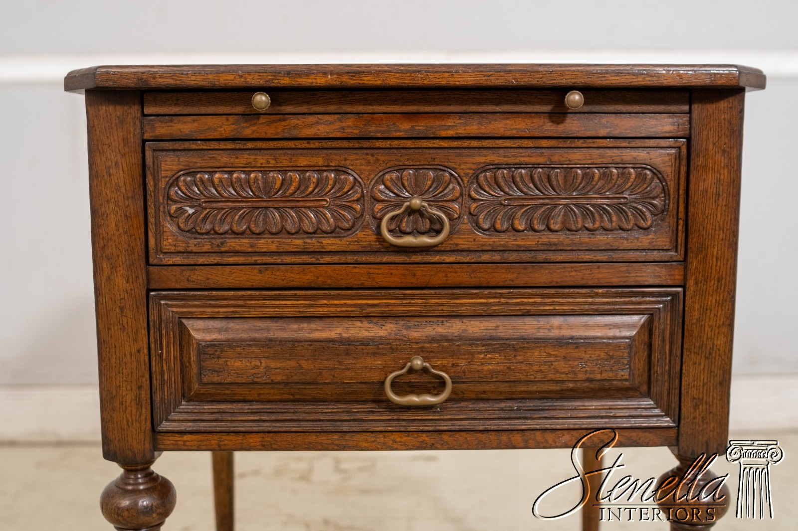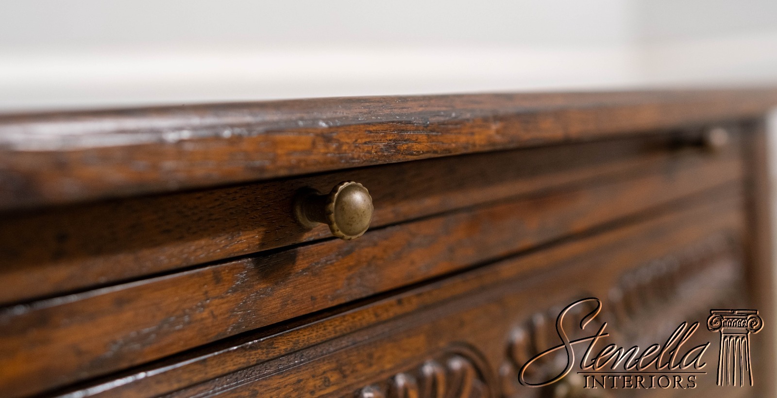 Details: Oak Secondary Drawer Construction Dovetailed Drawer Construction Fine Carved Details High Quality Construction Solid Brass Hardware Stretcher Base Frame Pull Out Writing Slide Rosettes In Top Offered @ Fraction Original Retail Cost