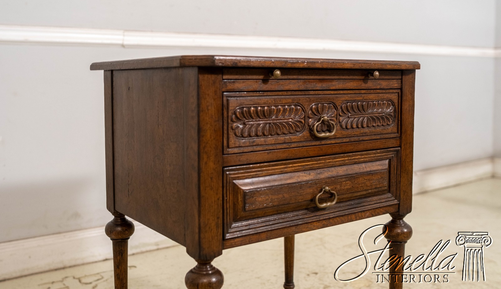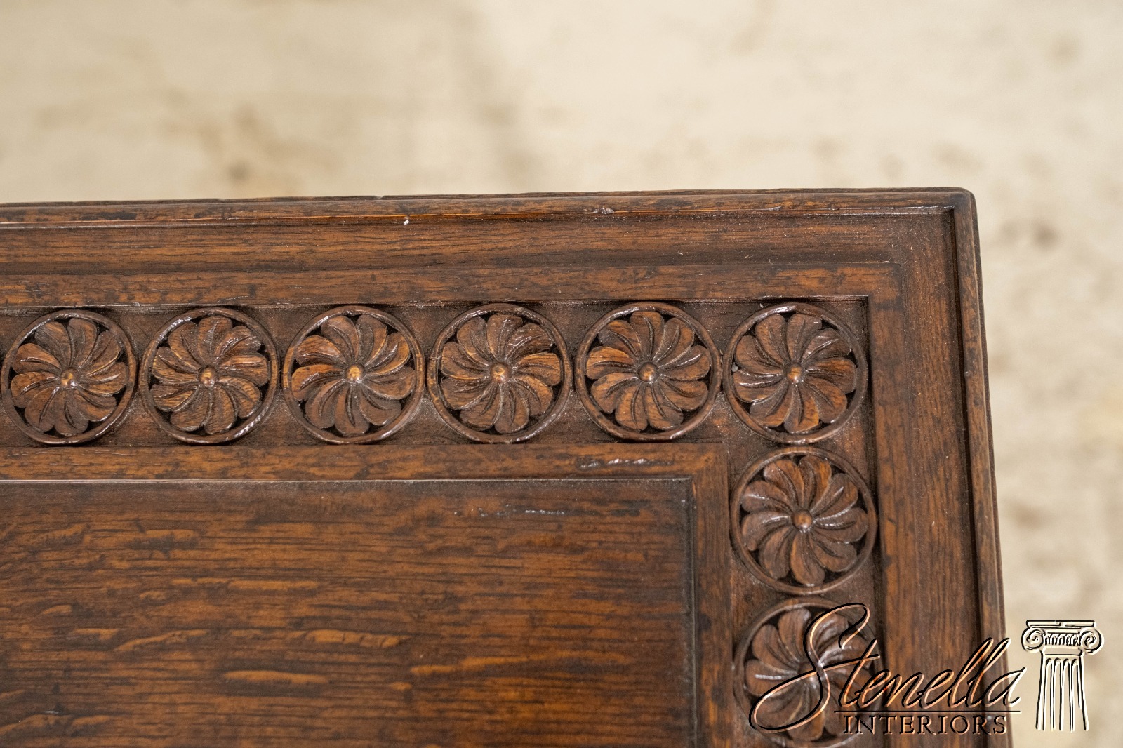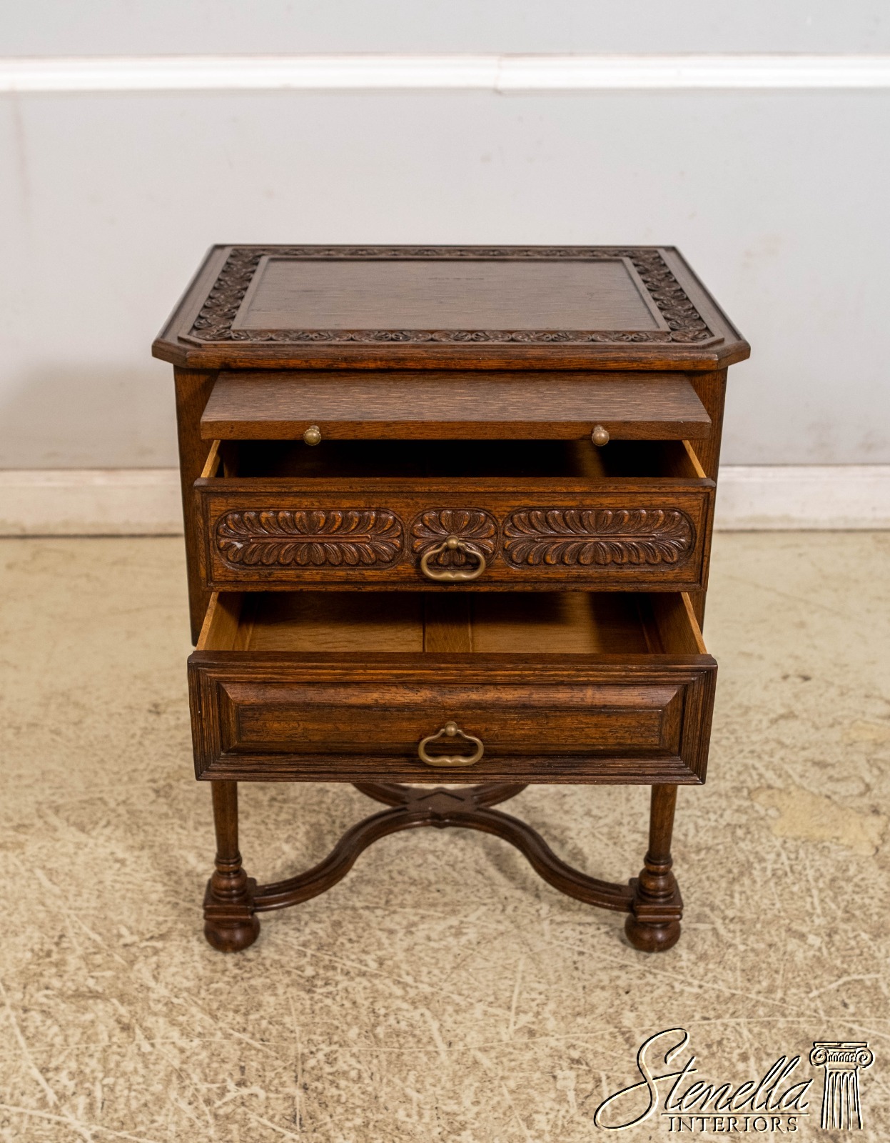 Details: Oak Secondary Drawer Construction Dovetailed Drawer Construction Fine Carved Details High Quality Construction Solid Brass Hardware Stretcher Base Frame Pull Out Writing Slide Rosettes In Top Offered @ Fraction Original Retail Cost