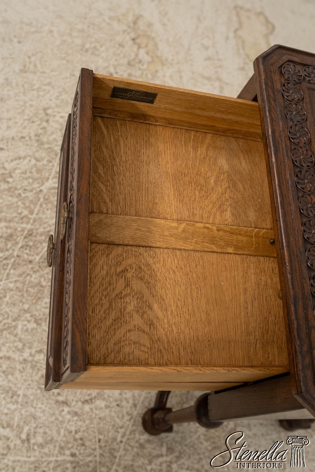 Stenella Antiques is proud retailer of fine quality furniture maker, Jonathan Charles. This is a brand new item that was unboxed and currently on display in our showroom. It is in stock and ready to ship. Pieces are un-marked or labeled as this manufacturer only uses hang tags as shown. Depending on the piece, this manufacture is known for high quality construction, english old world distressed finishes, quality tooled leather, fine select solid woods and veneers as well as very practical and functional designs. Stock photos used, and since all pieces are individually crafted, some variations to graining, distressing, color, etc., may vary from piece to piece. If there is any item on the Jonathan Charles line that you wish to see listed here on ebay, please contact us directly with model number and we can see about inventory and pricing. Feel free to contact us with any questions or info on quantity discounts.