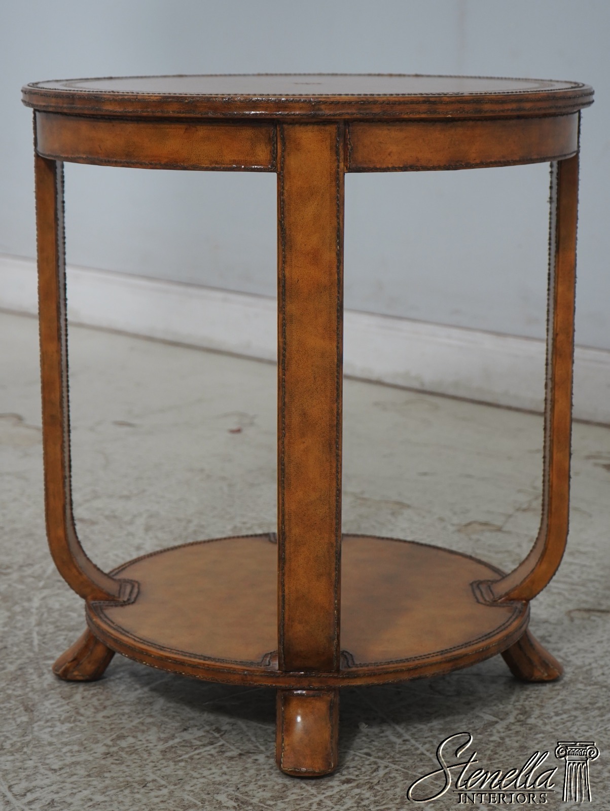 L70812: MAITLAND SMITH Leather Wrapped Round Lamp Table