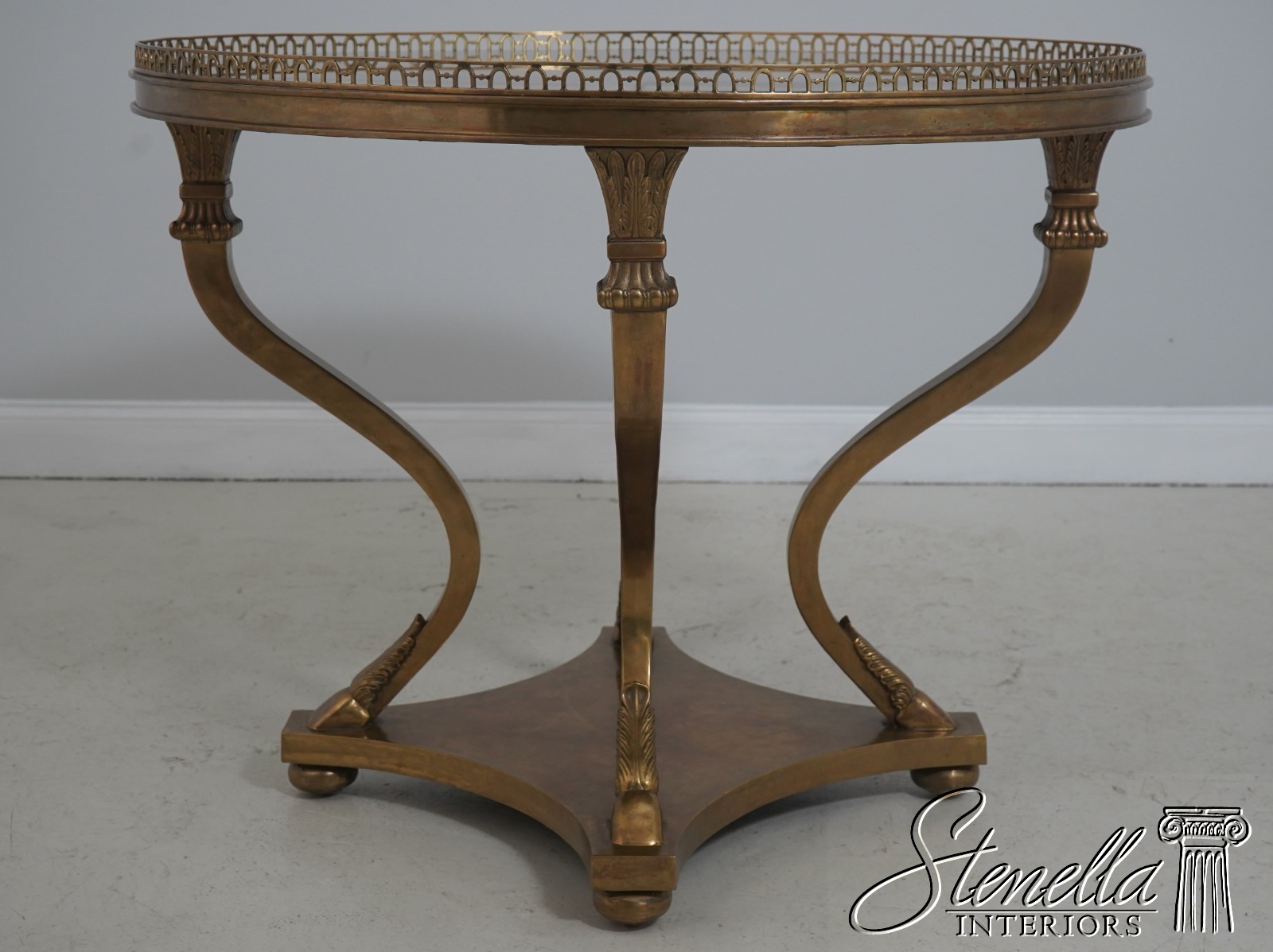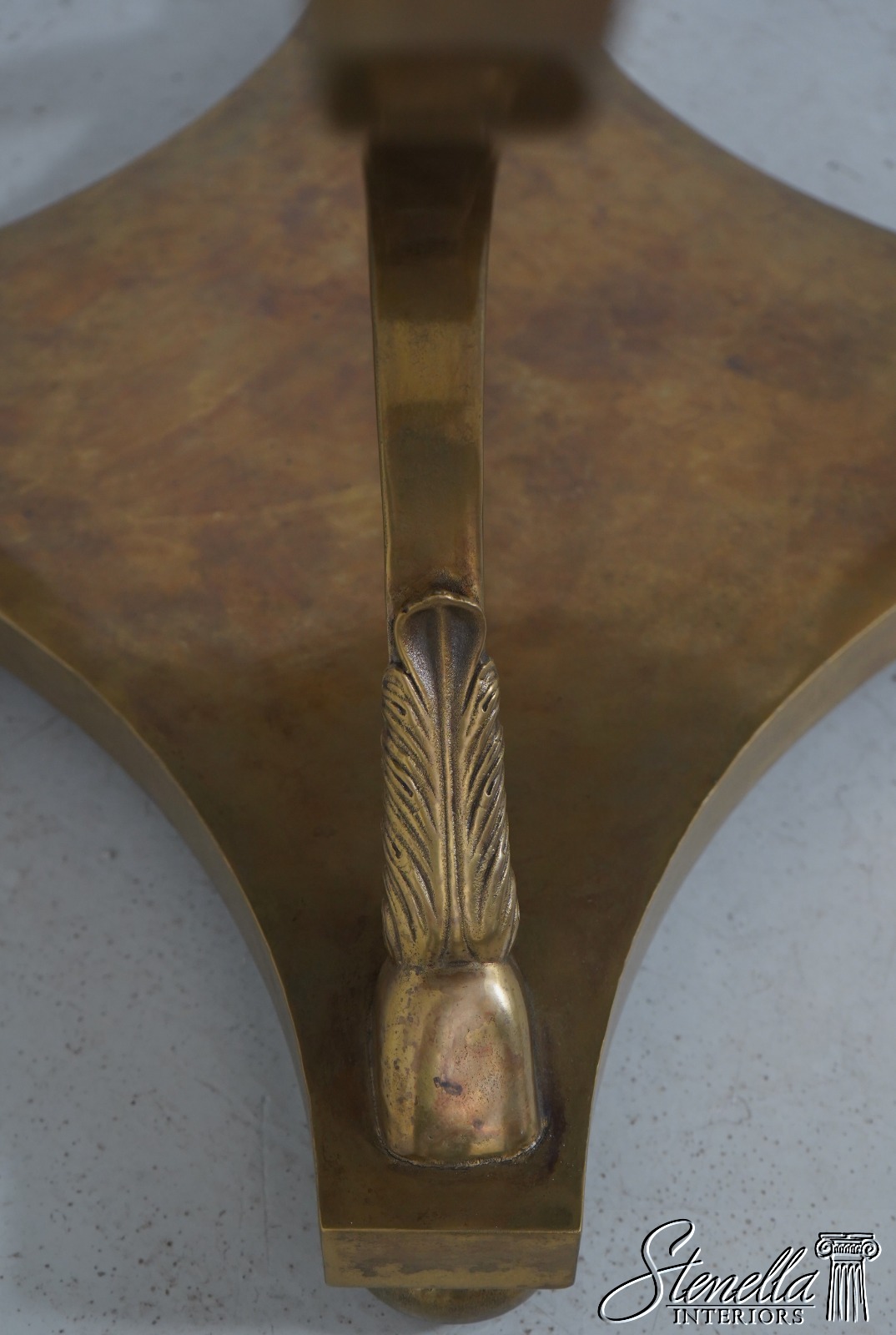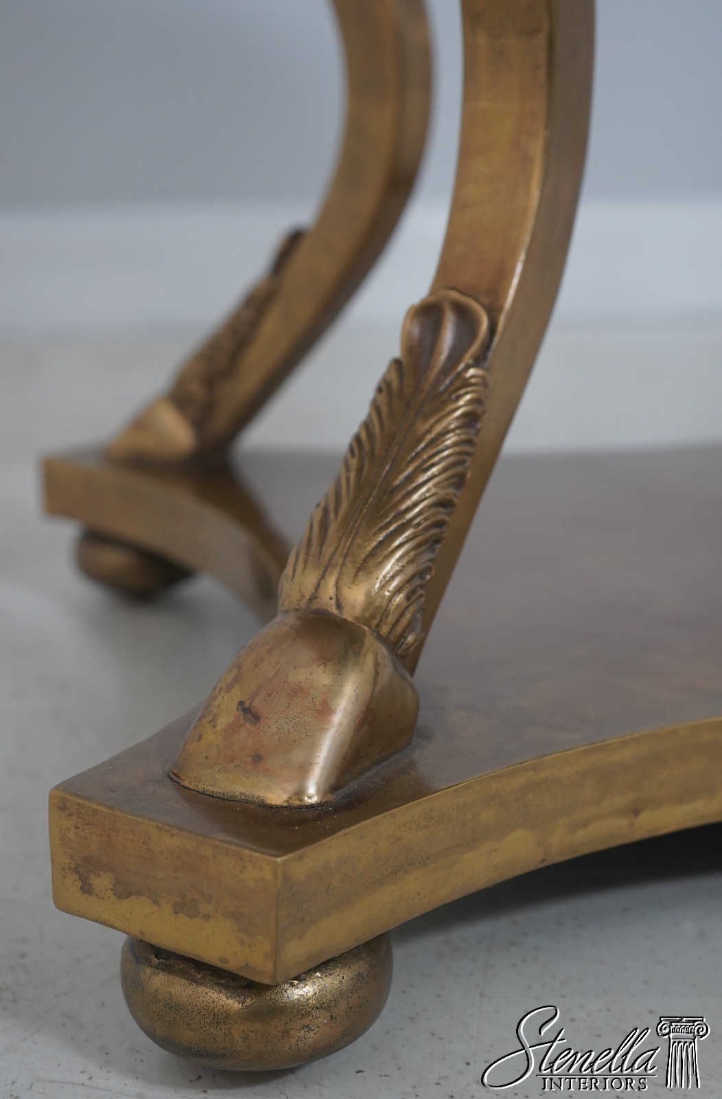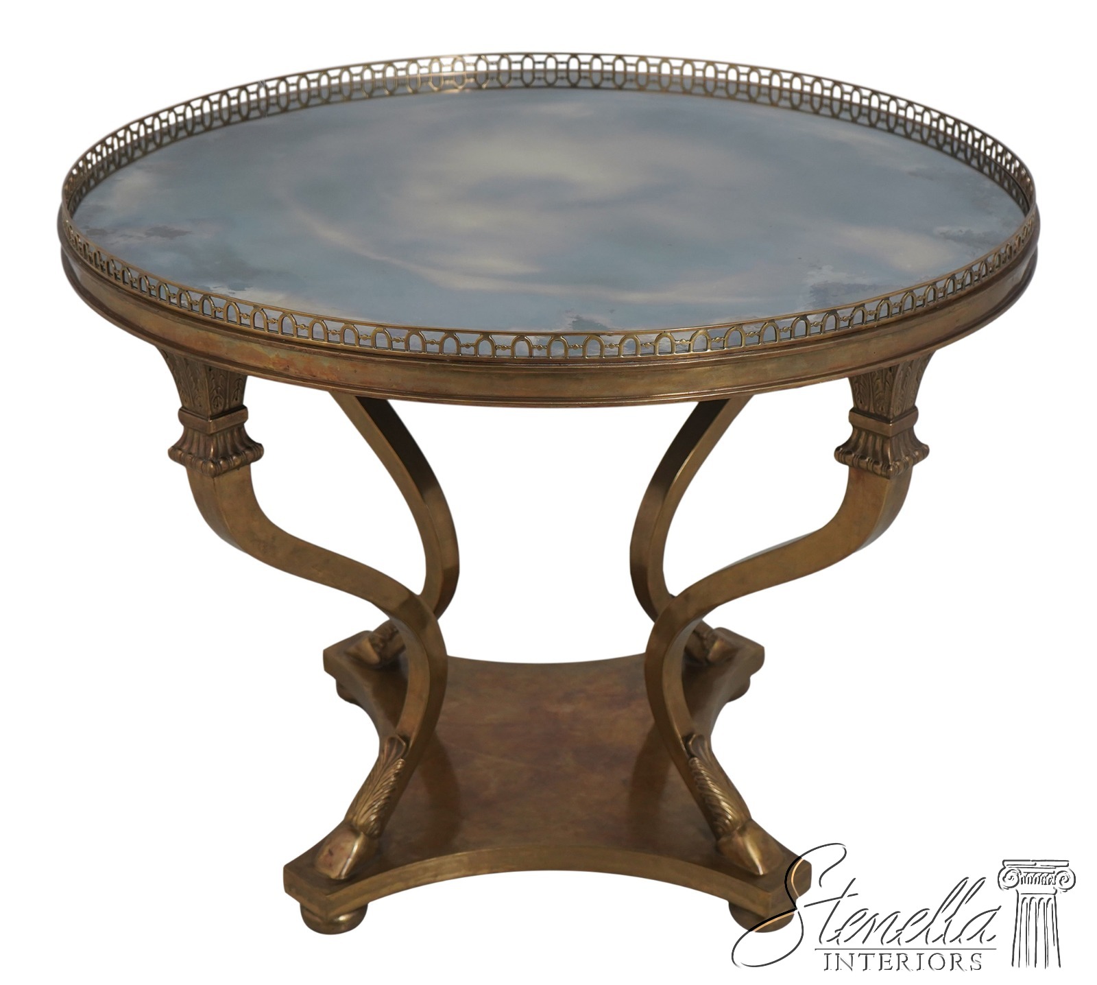 Details: In The Manner Of Maison Jansen High Quality Construction Distressed Mirror Glass Top Heavy Bronze Base Hoof Feet On Platform Base Offered @ Fraction Original Retail Cost