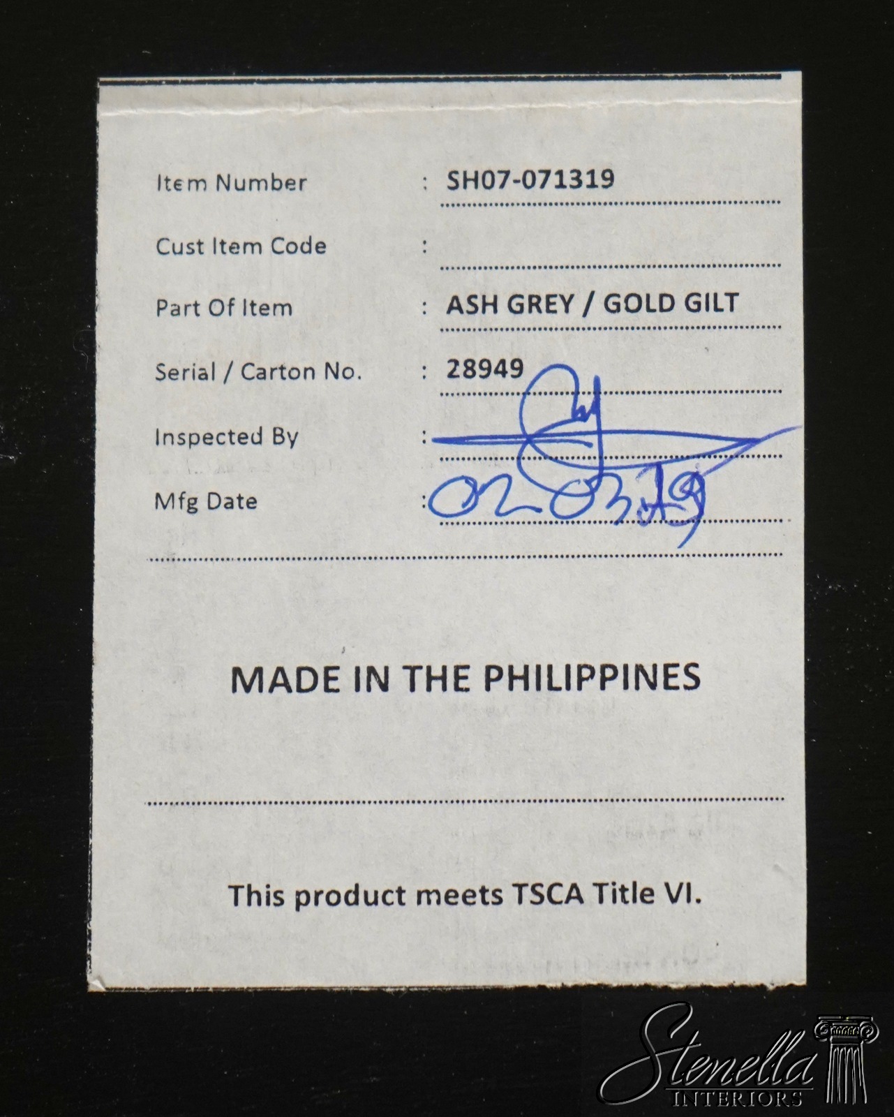 | Paypal | Ebay Payments | | Visa/MC/AMEX/DIS | Contact for credit card processing | | Check | Mail to: Stenella Antiques & Interiors