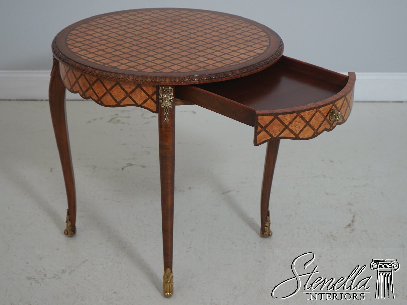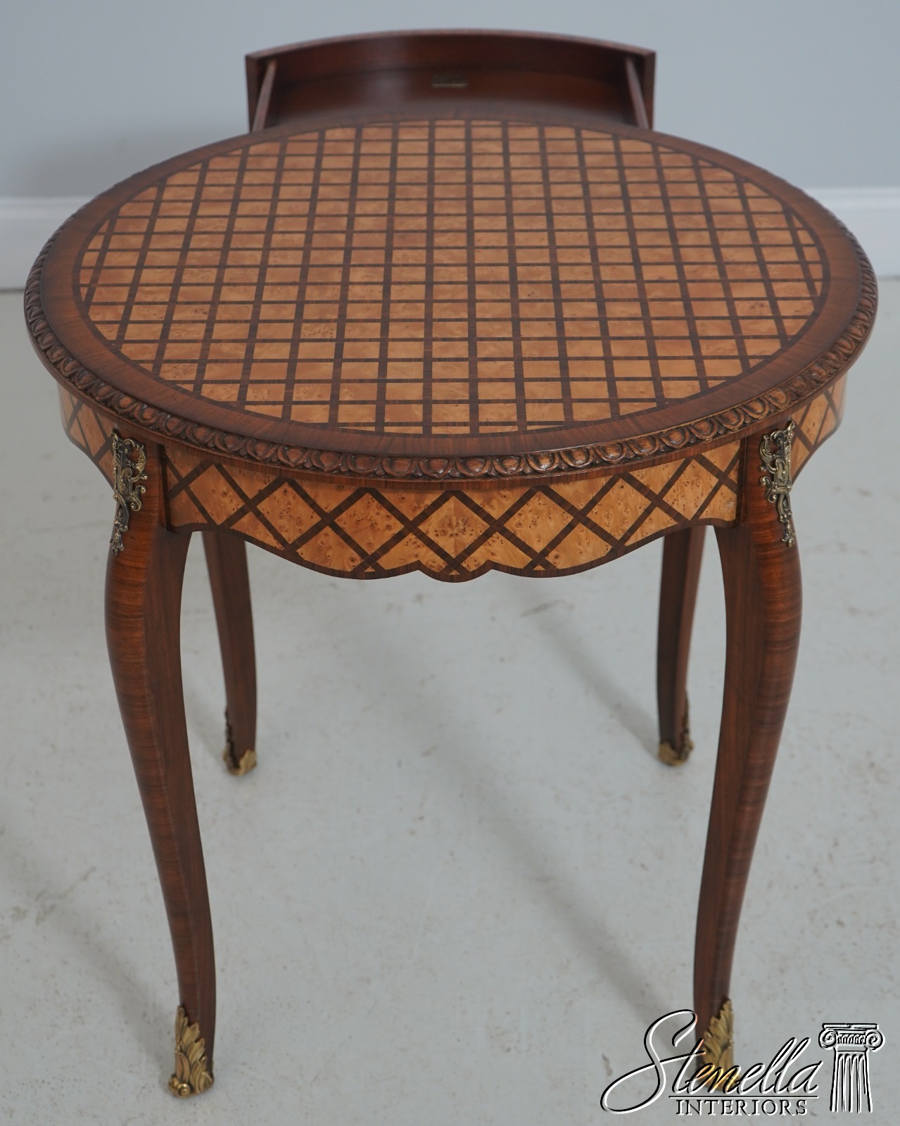 Details: Model 5005-961 1 Drawer Front High Quality Construction French Louis Style Brass Ormolu Mounts Birdseye Maple & Mahogany Veneers Offered @ Fraction Original Retail Cost