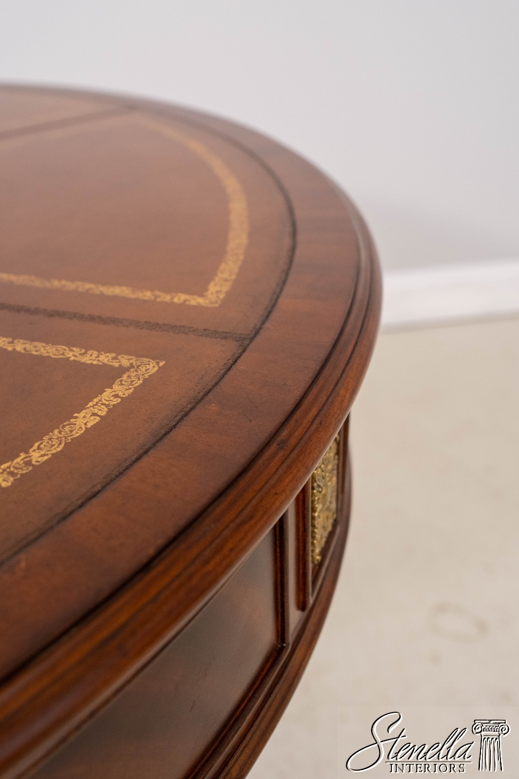 L71244: SCARBOROUGH HOUSE Round Leather Top Center Table ~ NEW