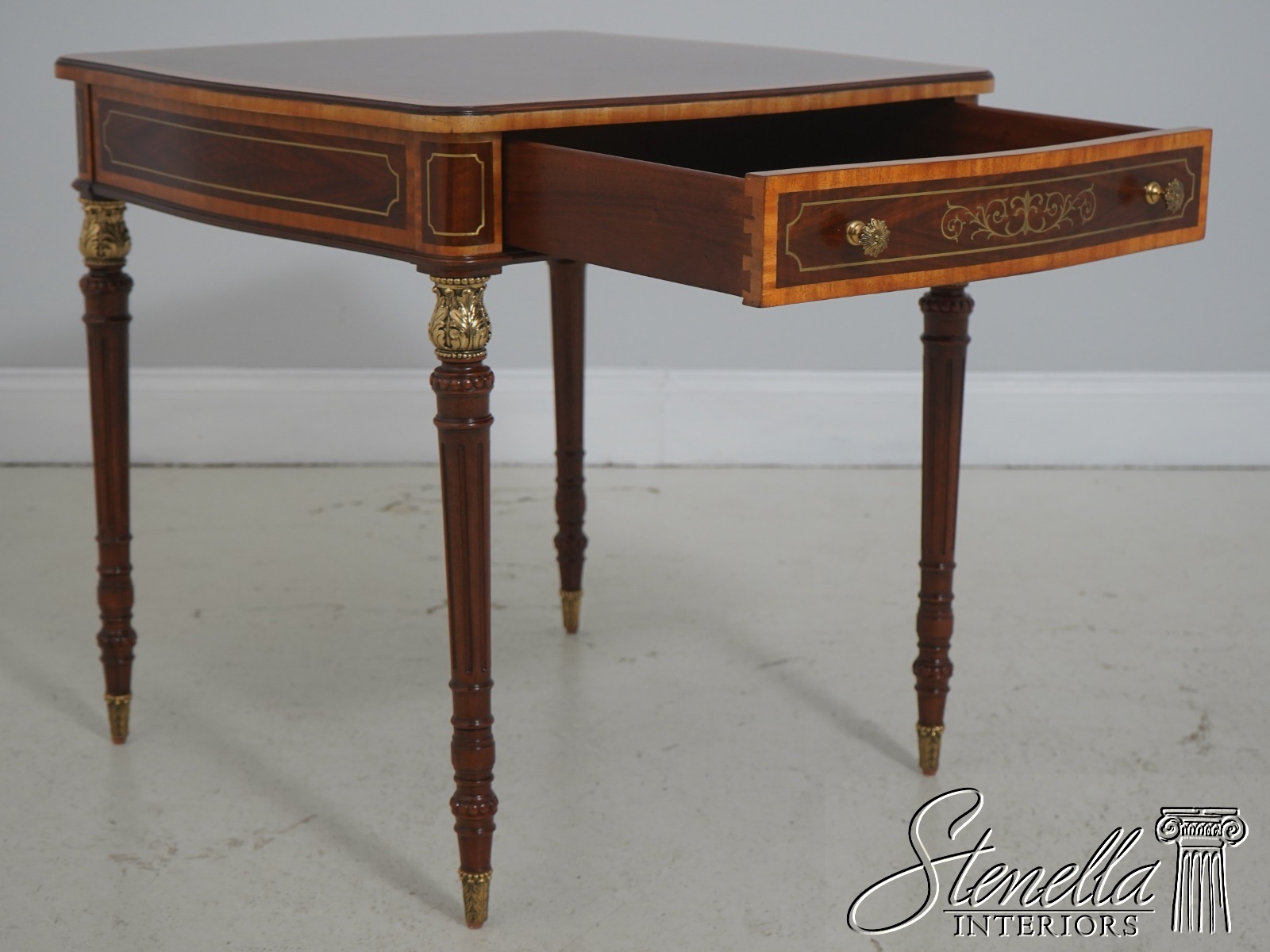 Details: Brass Leg Tops & Caps Dovetailed Drawer Construction High Quality Construction Brass Inlay Details Brand New Satinwood Cross Banded Borders Offered @ Fraction Original Retail Cost