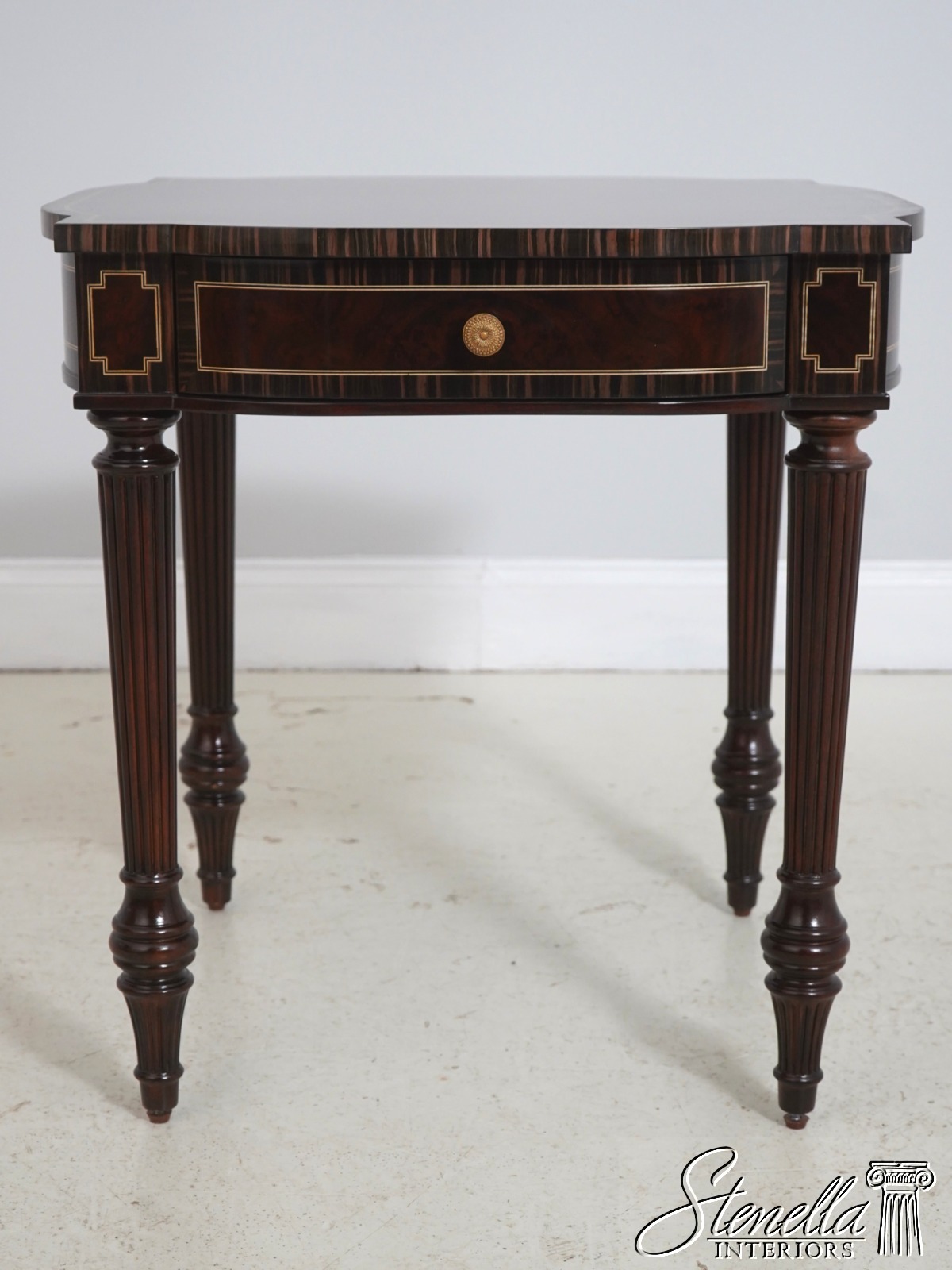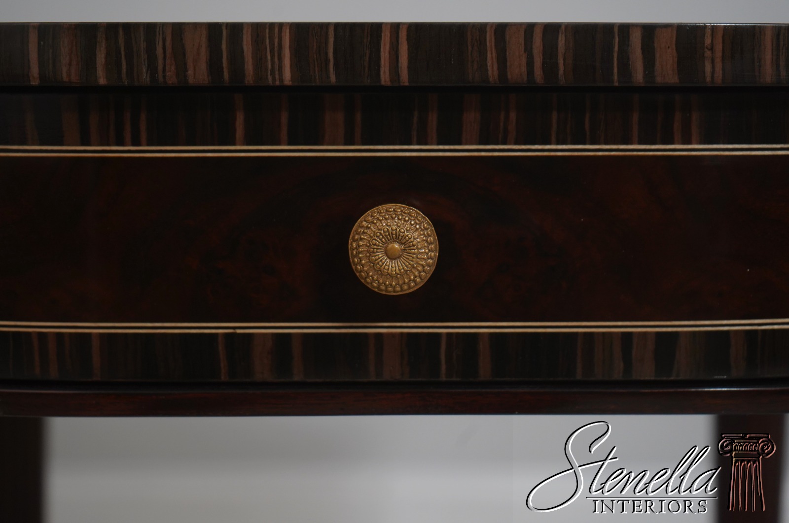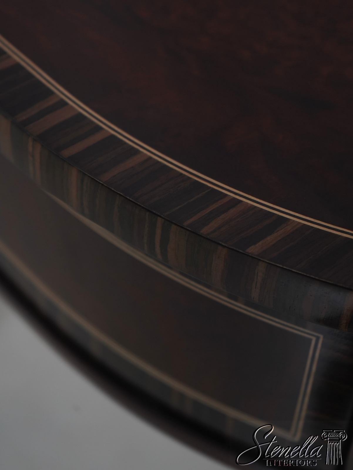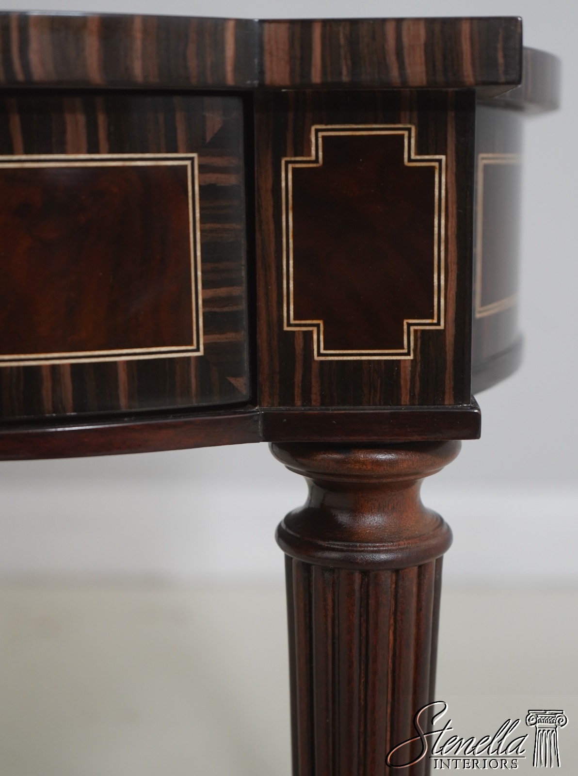 Details: Model 5006-028 High Quality Construction Nice Inlay Work Throughout French Style Gorgeous Burl Walnut Top w. Zebra Walnut Banded Borders Nice Reeded Legs Offered @ Fraction Original Retail Cost