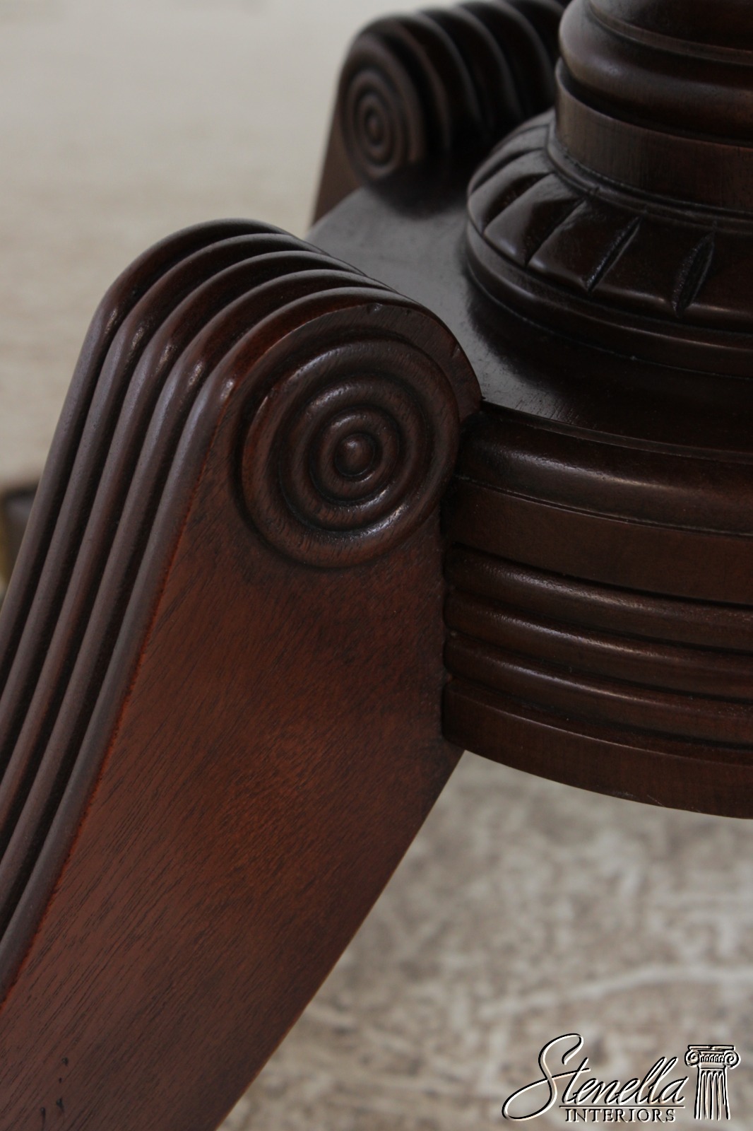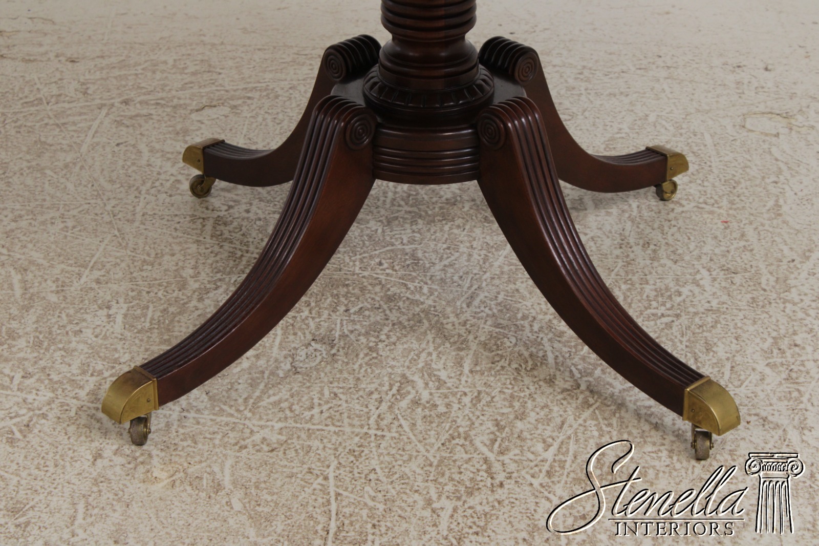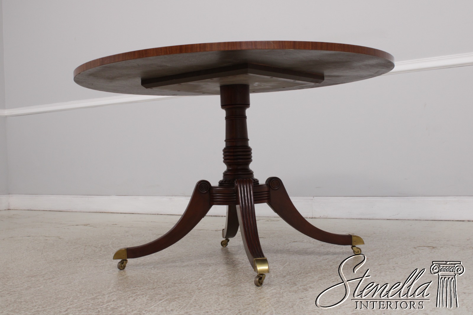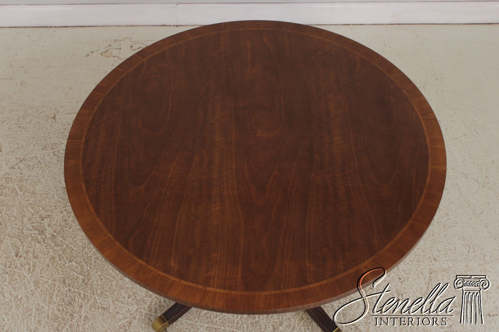 Details: Brass Capped Feed And Casters High Quality Construction Gorgeous Table Nice Inlay Work Throughout Four Leg Base Duncan Phyfe Pedestal Base Reeded Legs Walnut Top With Mahogany Pedestal Base Offered At A Fraction Of The Original Retail Cost