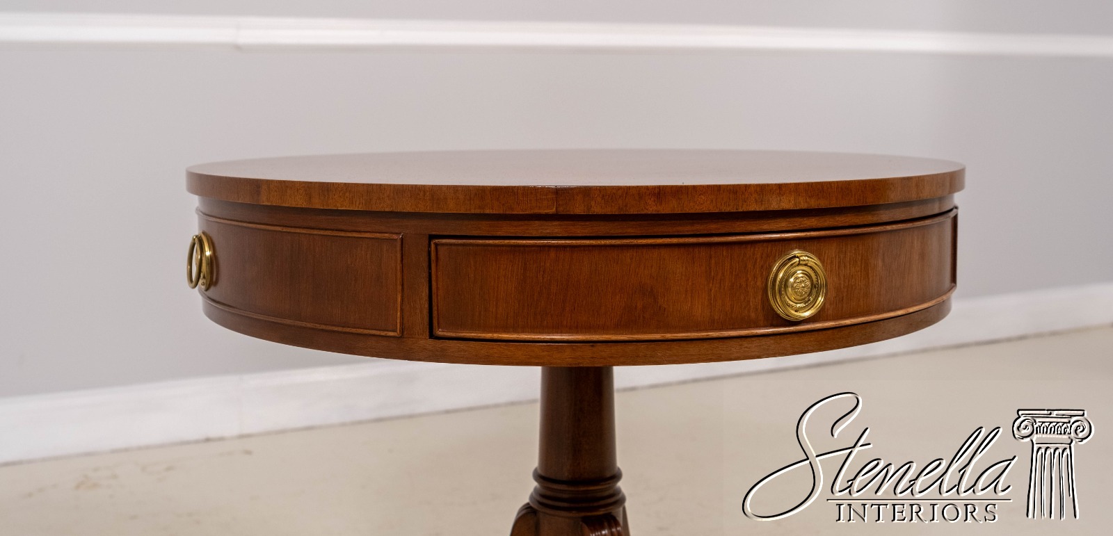 L71307: COUNCIL Mahogany One-Drawer Round Drum End Table