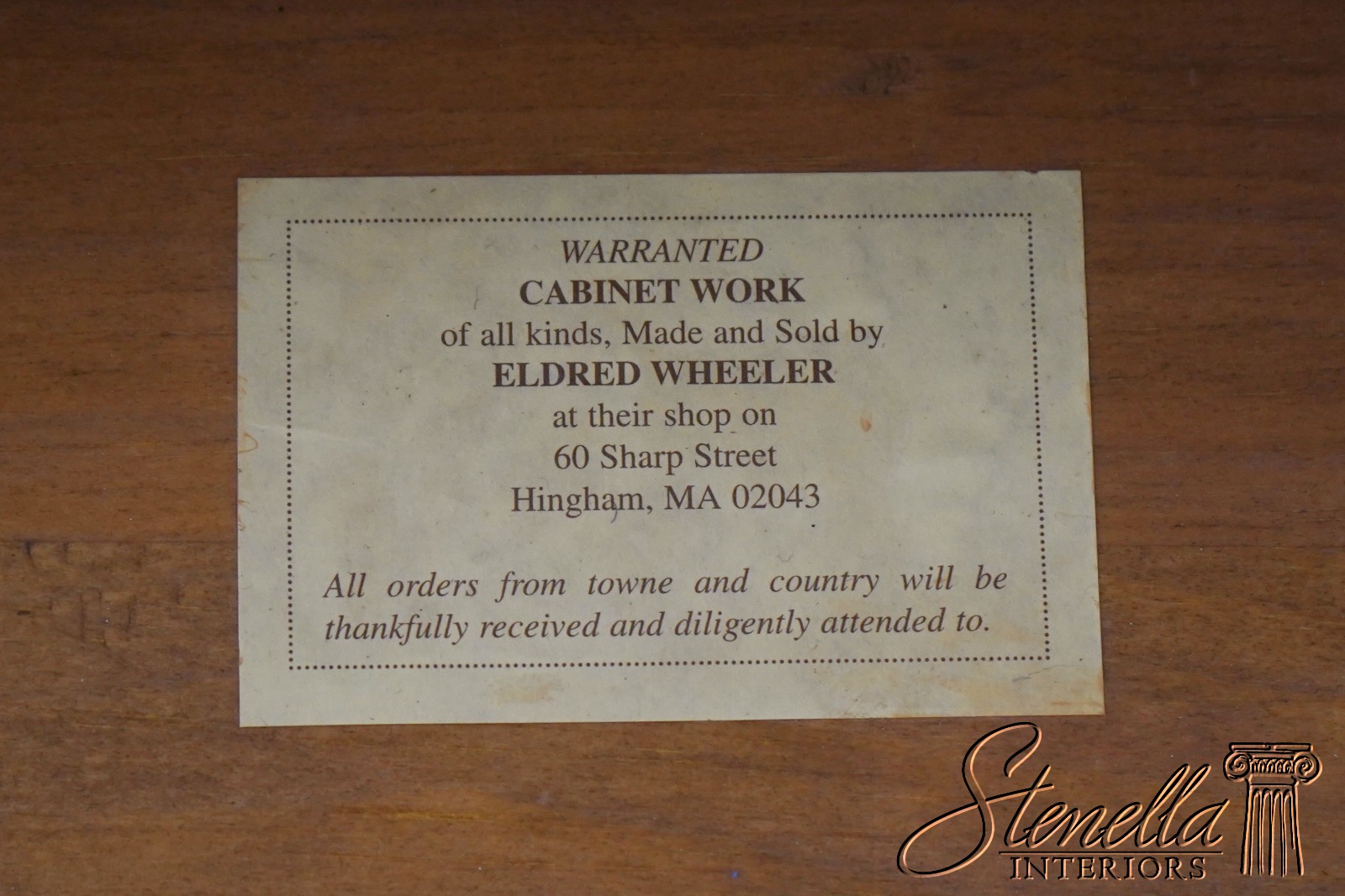 | Paypal | Ebay Payments | | Visa/MC/AMEX/DIS | Contact for credit card processing | | Check | Mail to: Stenella Antiques & Interiors