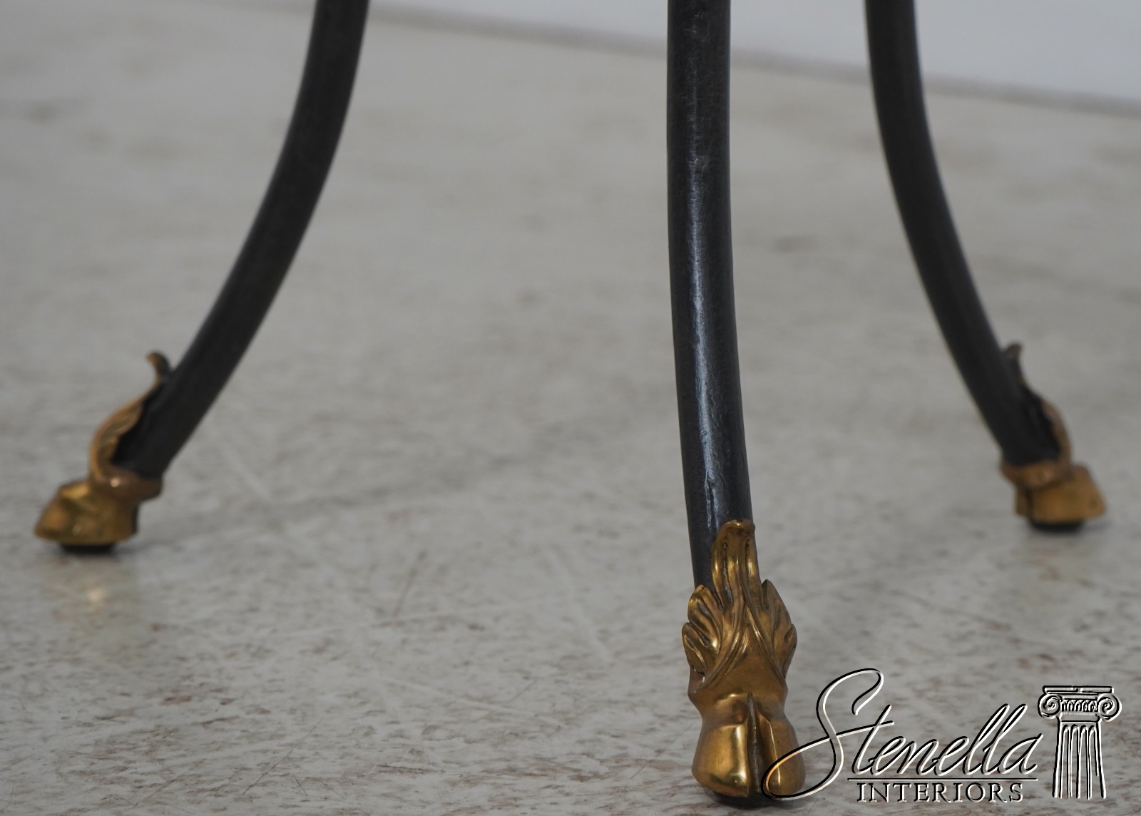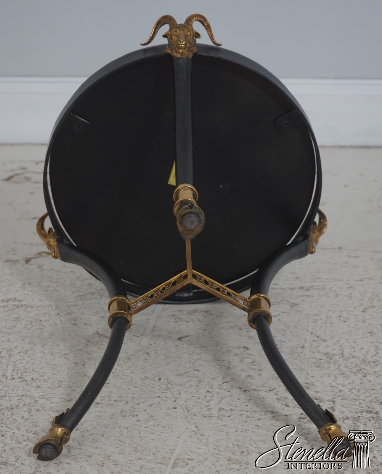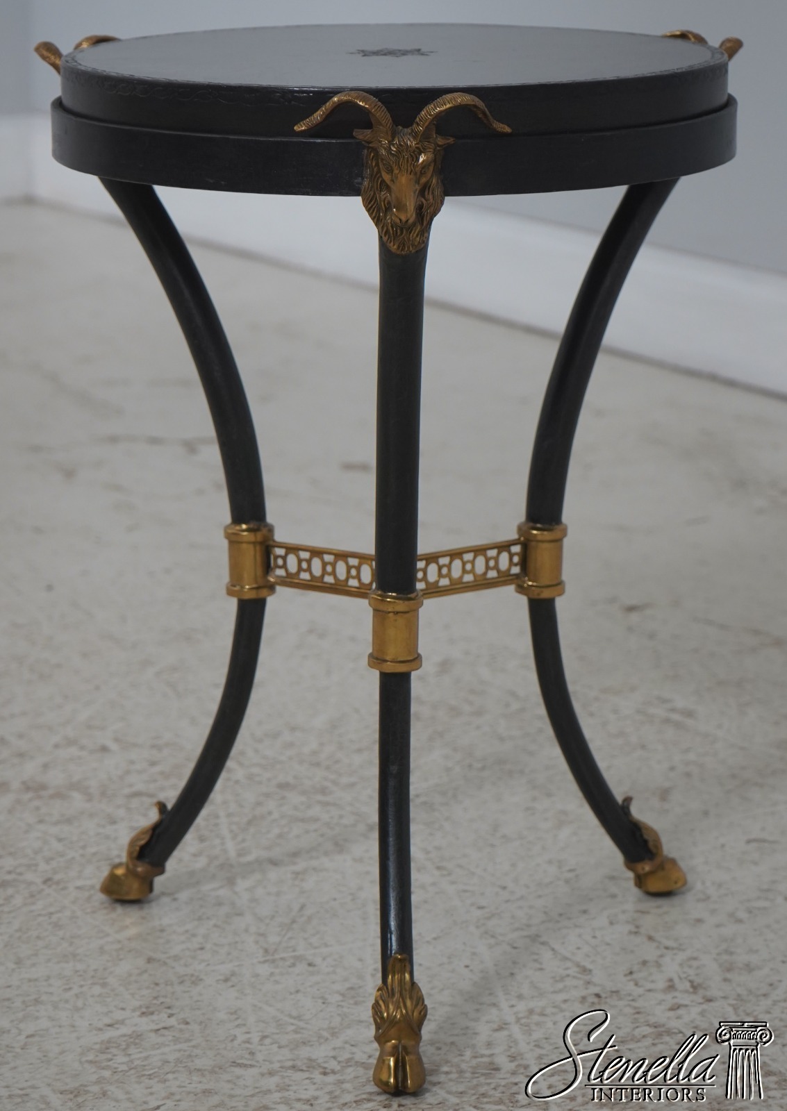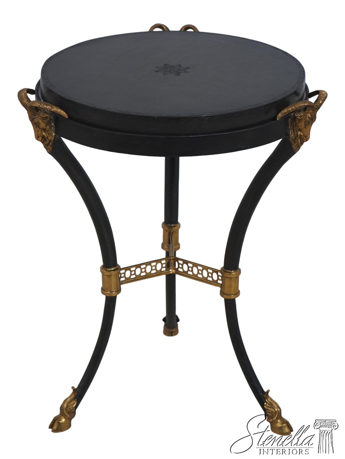 Details: Regency Style Quality Construction Quality Tooled Leather Top Iron Base w. Brass Rams Head & Hoof Feet Offered @ Fraction Original Retail Cost