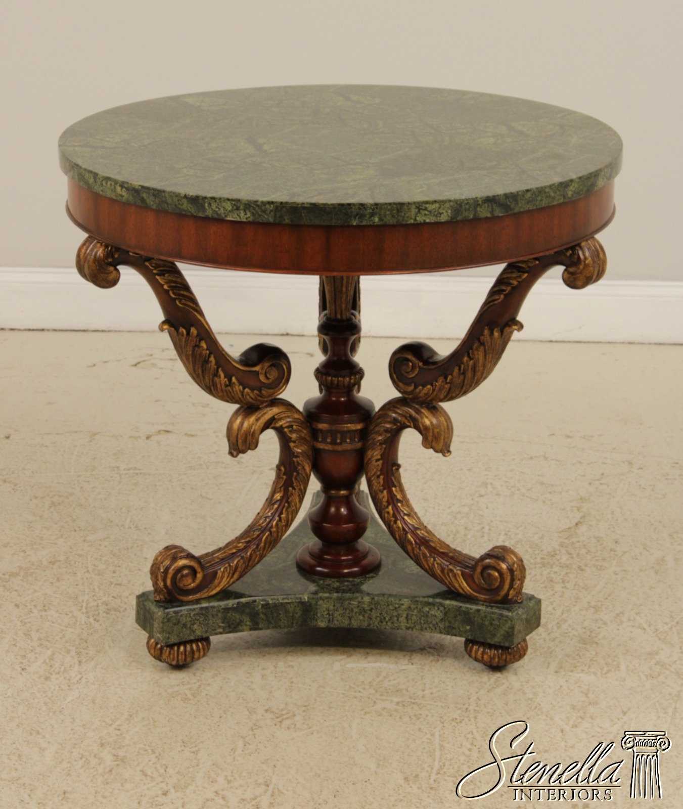 Details: Mahogany Base w. Gold Accents Nice Carved Details High Quality Construction Green Marble Overlay Top & Marble Platform Base French Louis XV Style