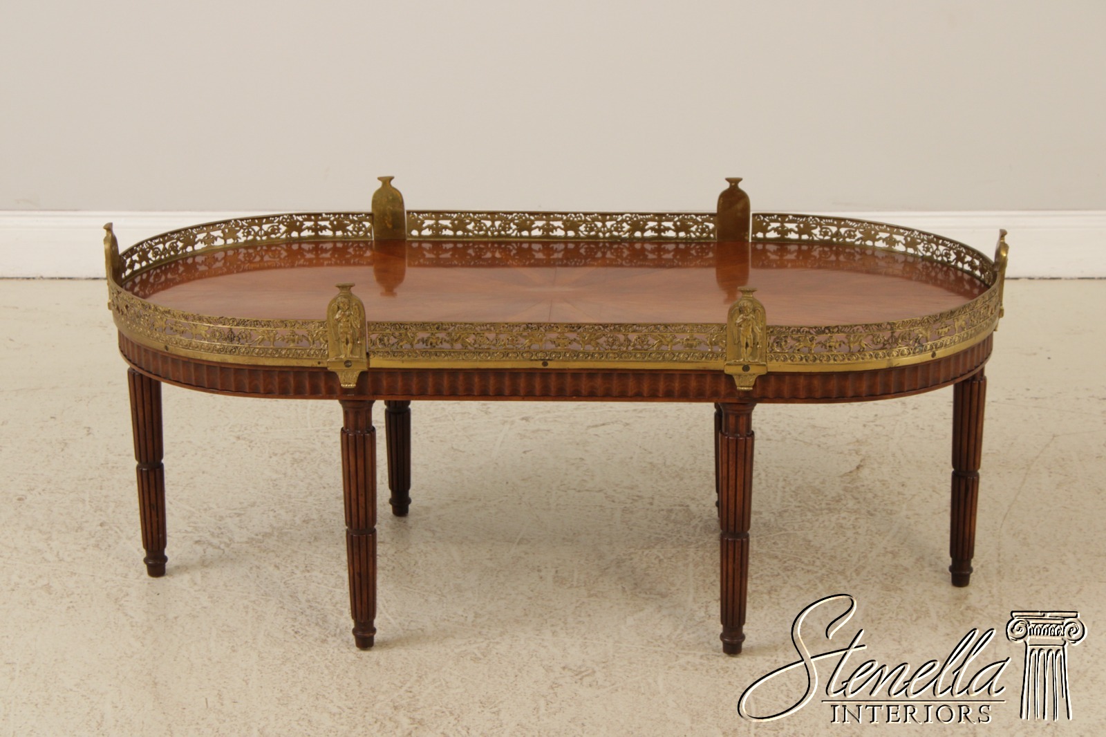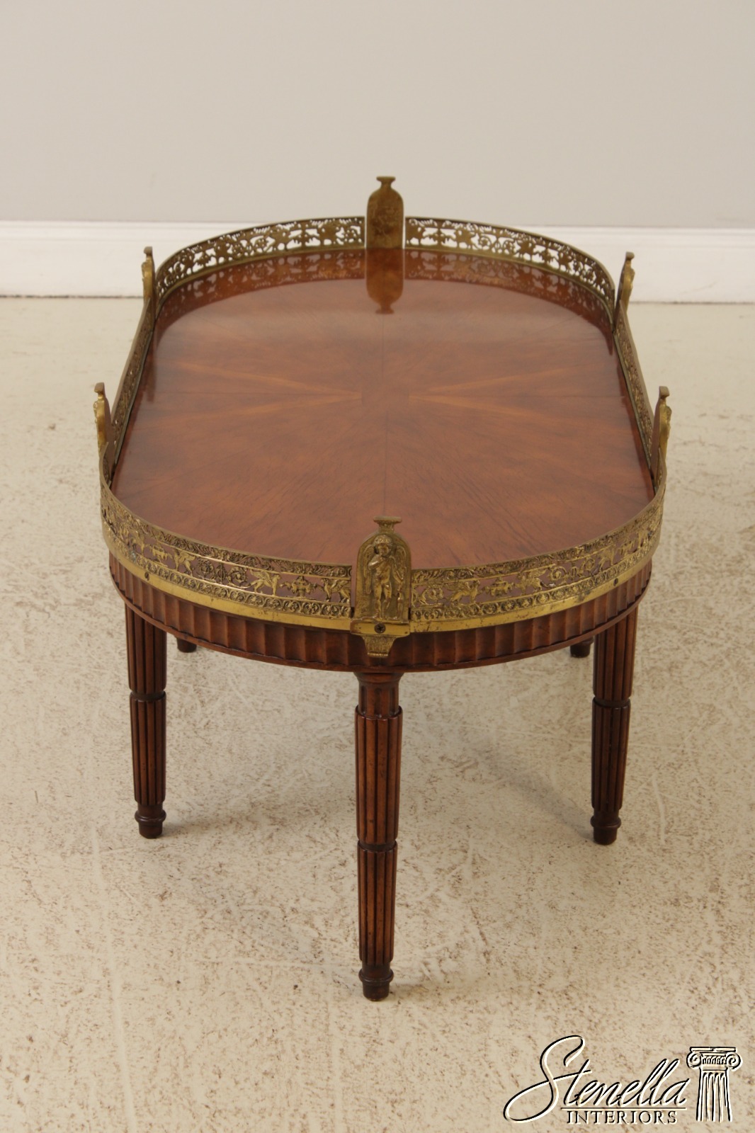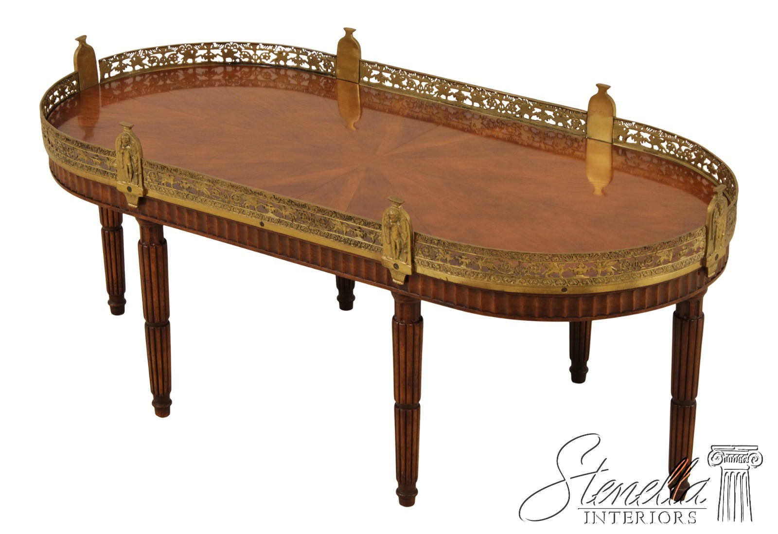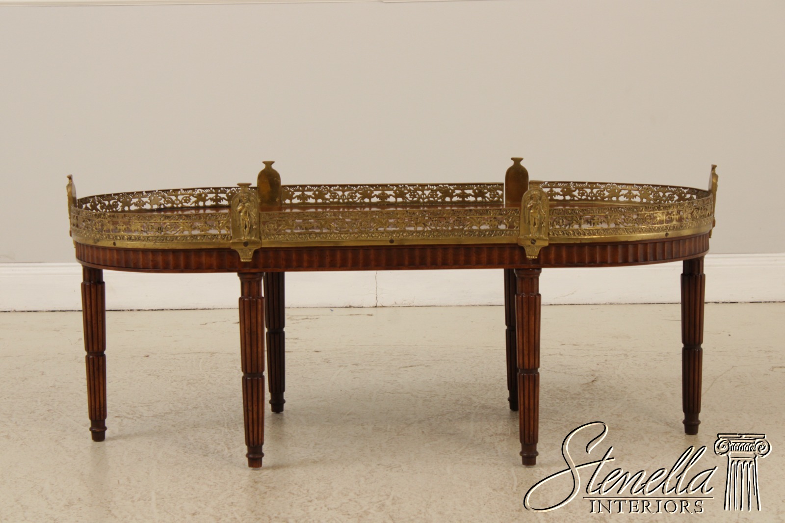 L71920: Vintage French Louis XVI Style Brass Gallery Coffee Cocktail Table