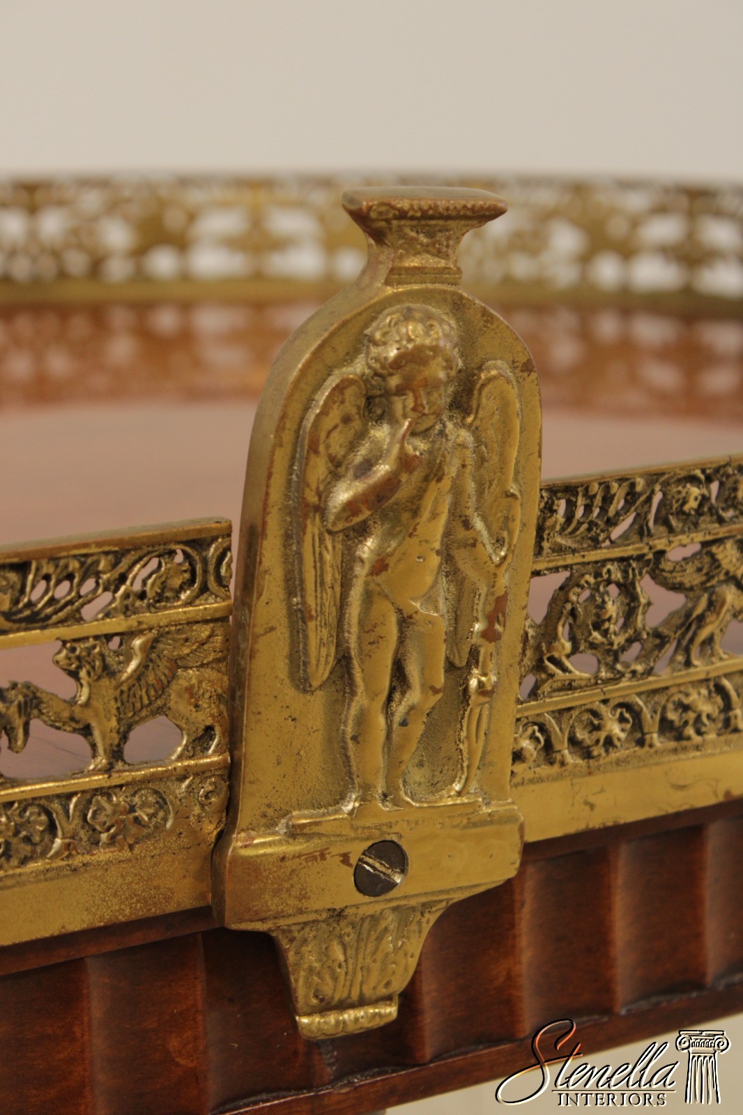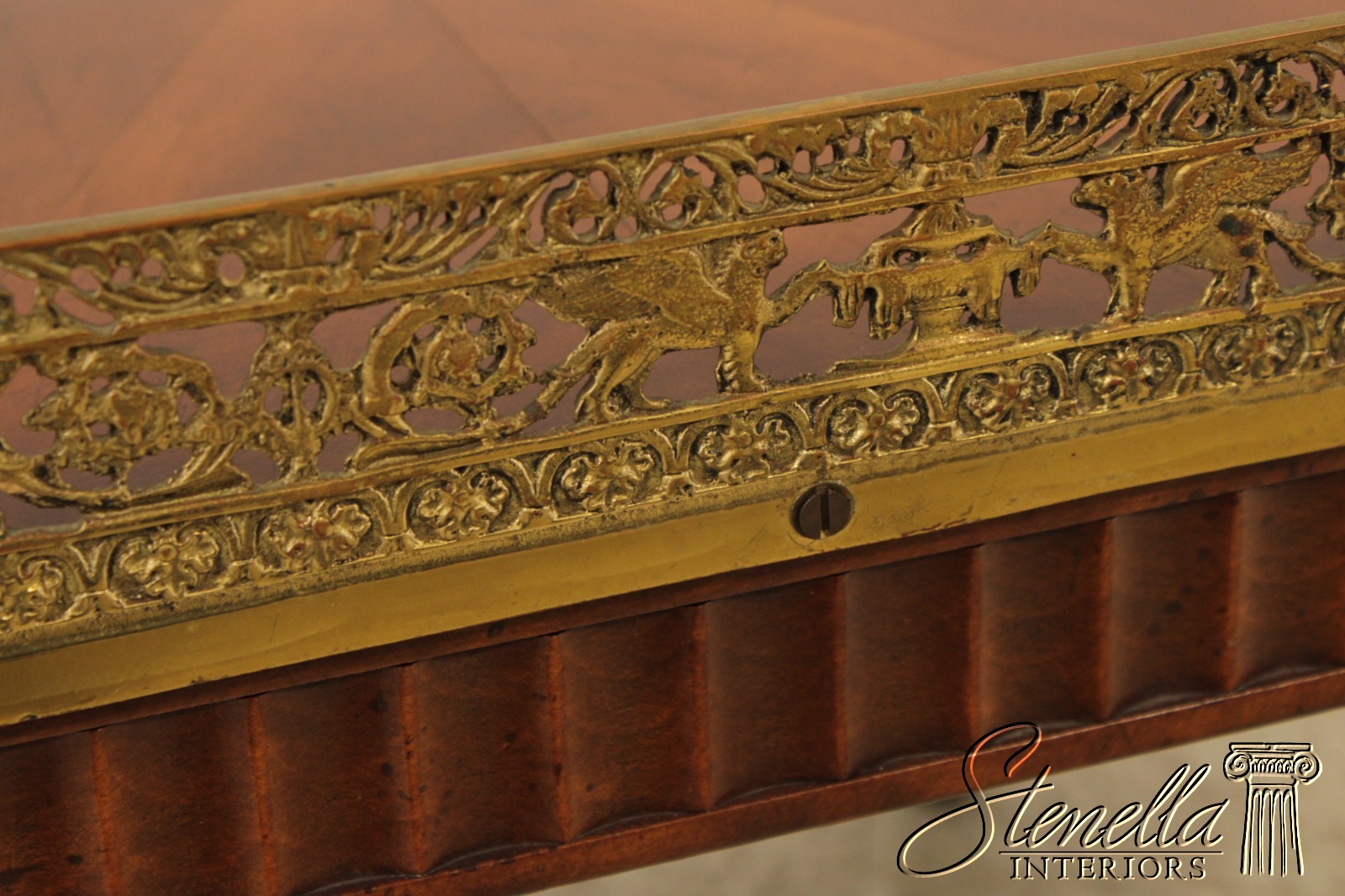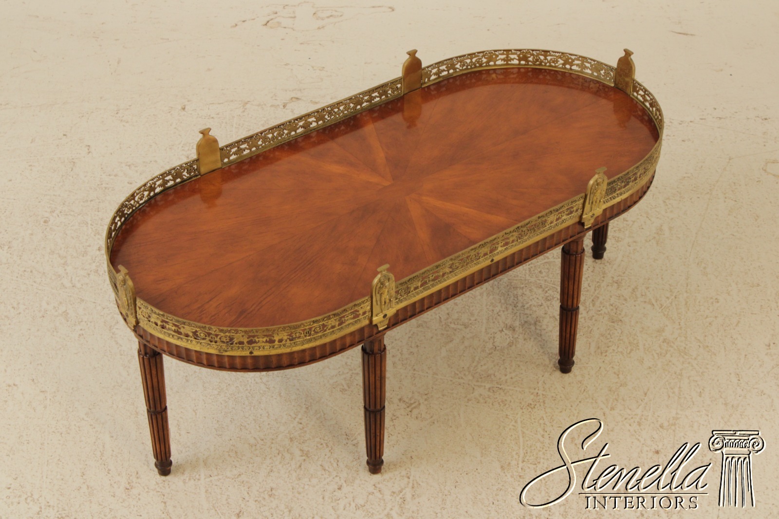 L71920: Vintage French Louis XVI Style Brass Gallery Coffee Cocktail Table