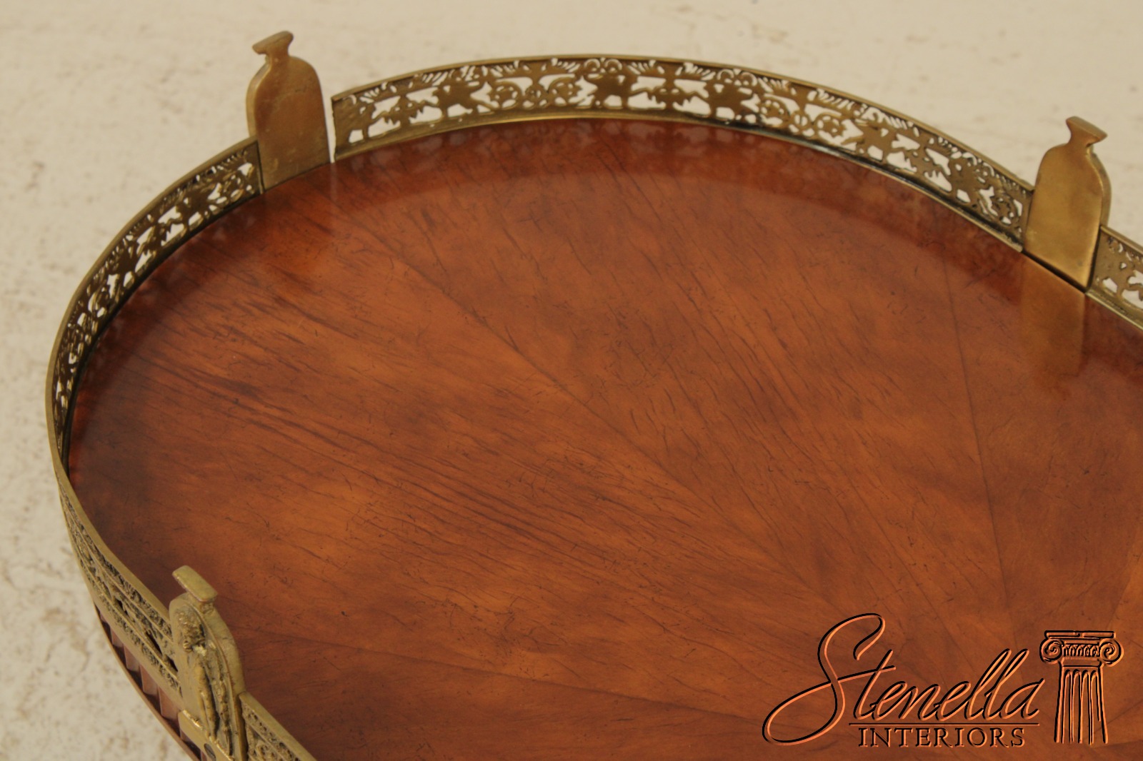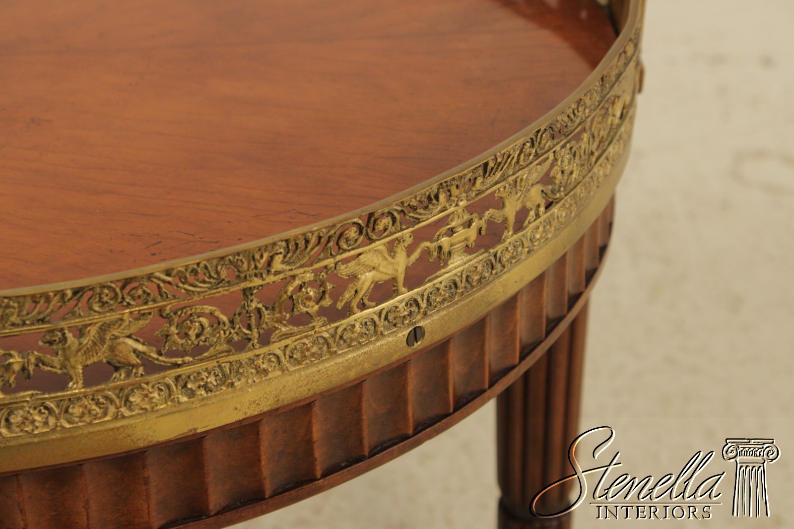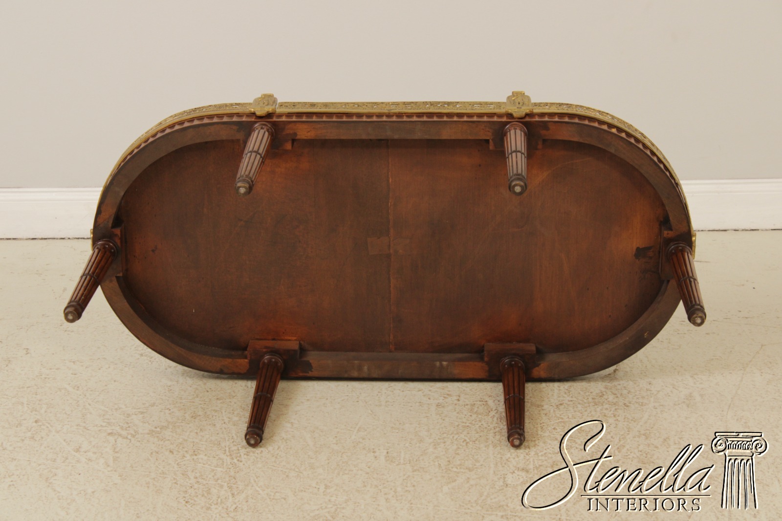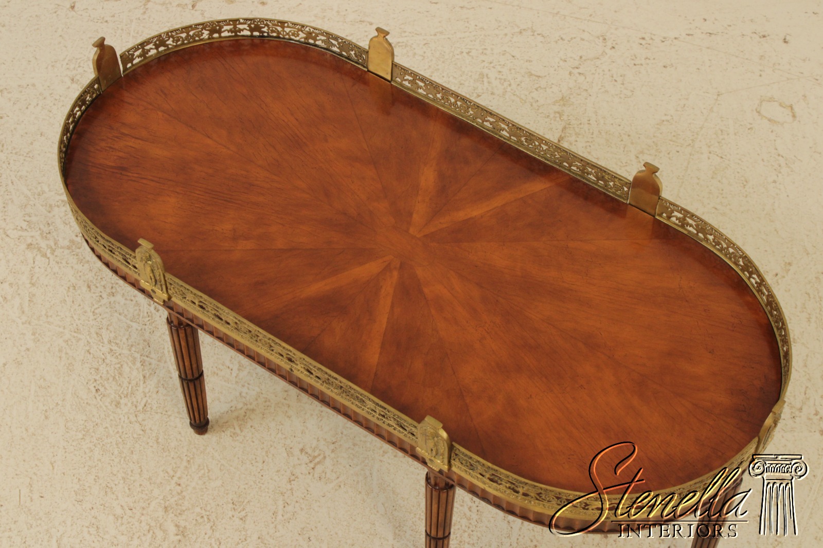 L71920: Vintage French Louis XVI Style Brass Gallery Coffee Cocktail Table