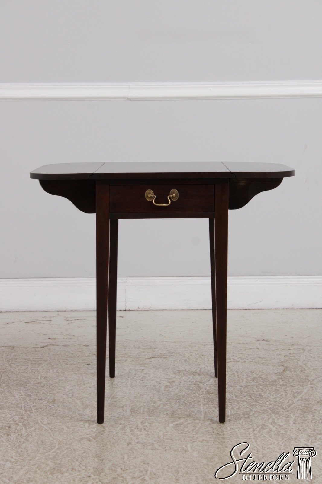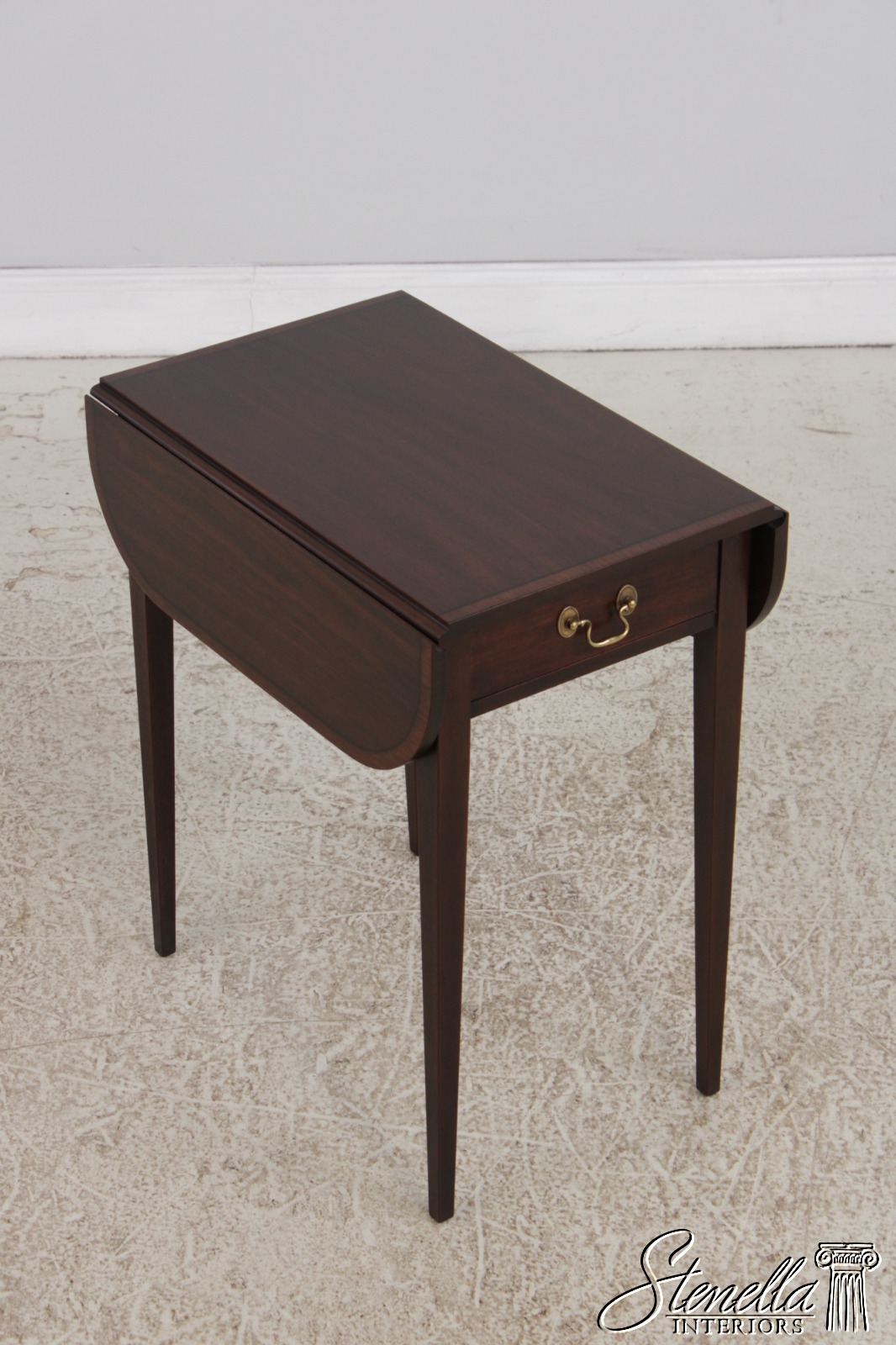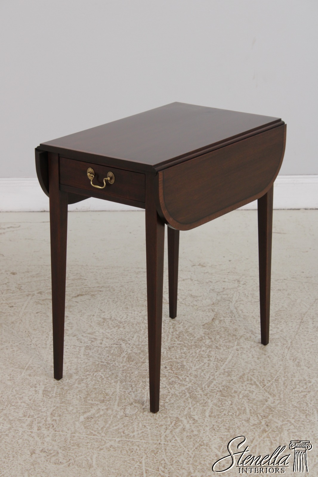 Details: Finish no.29 Model 5406 Mahogany High Quality Construction Nice Inlay Work Throughout Federal Style Traditional Style Solid Brass Hardware Tapered Legs Drop Leaf Sides Banded Line Inlay Offered @ Fraction Original Retail Cost