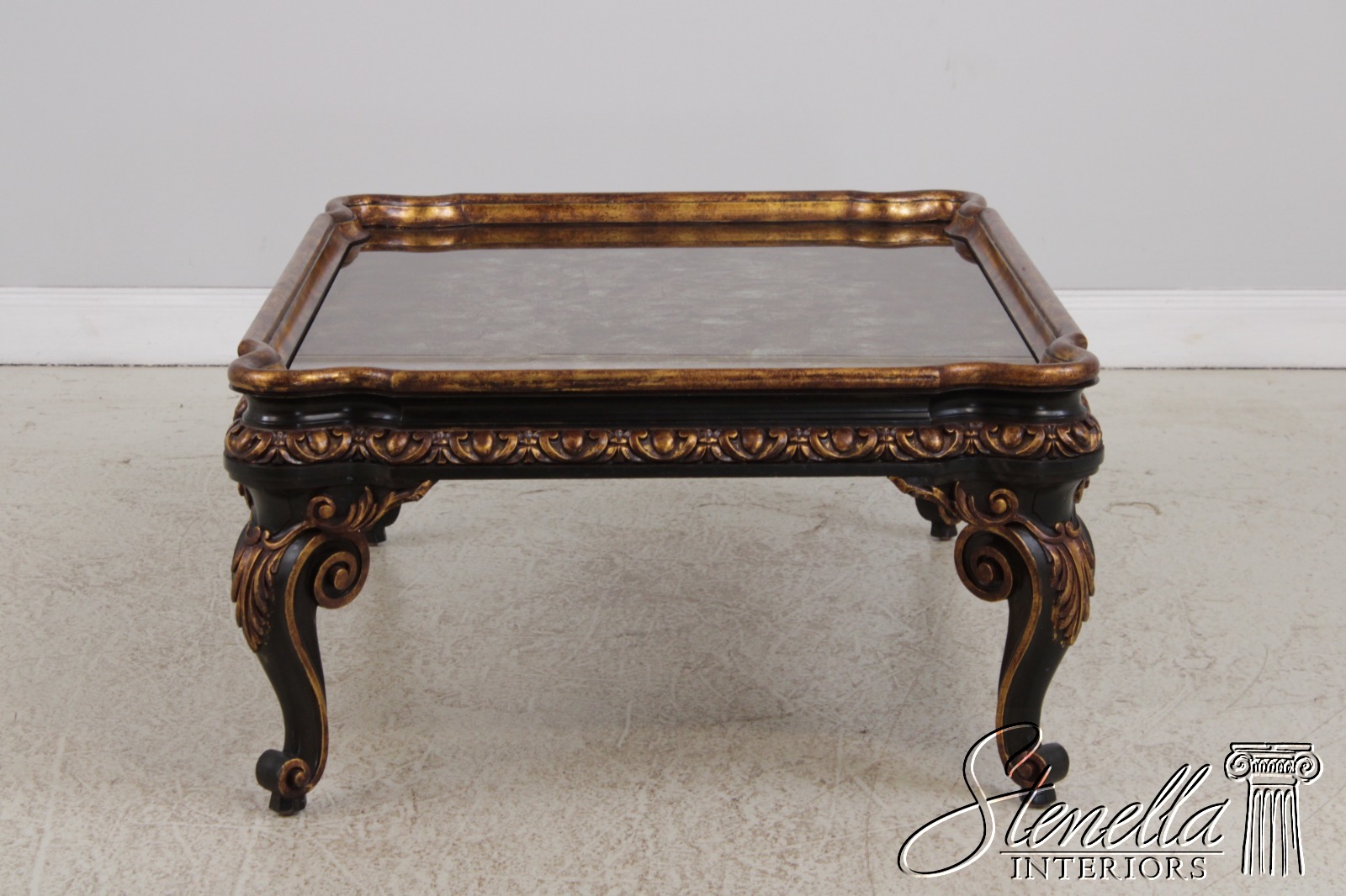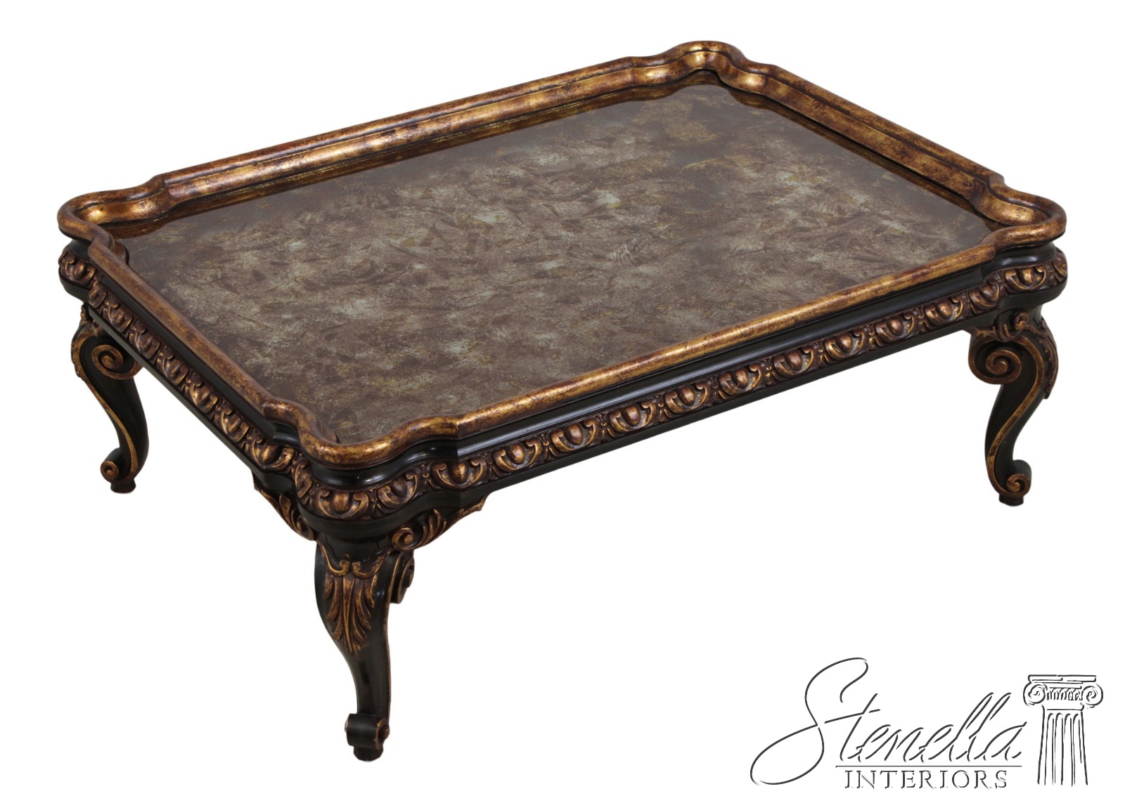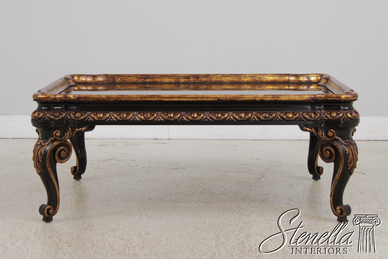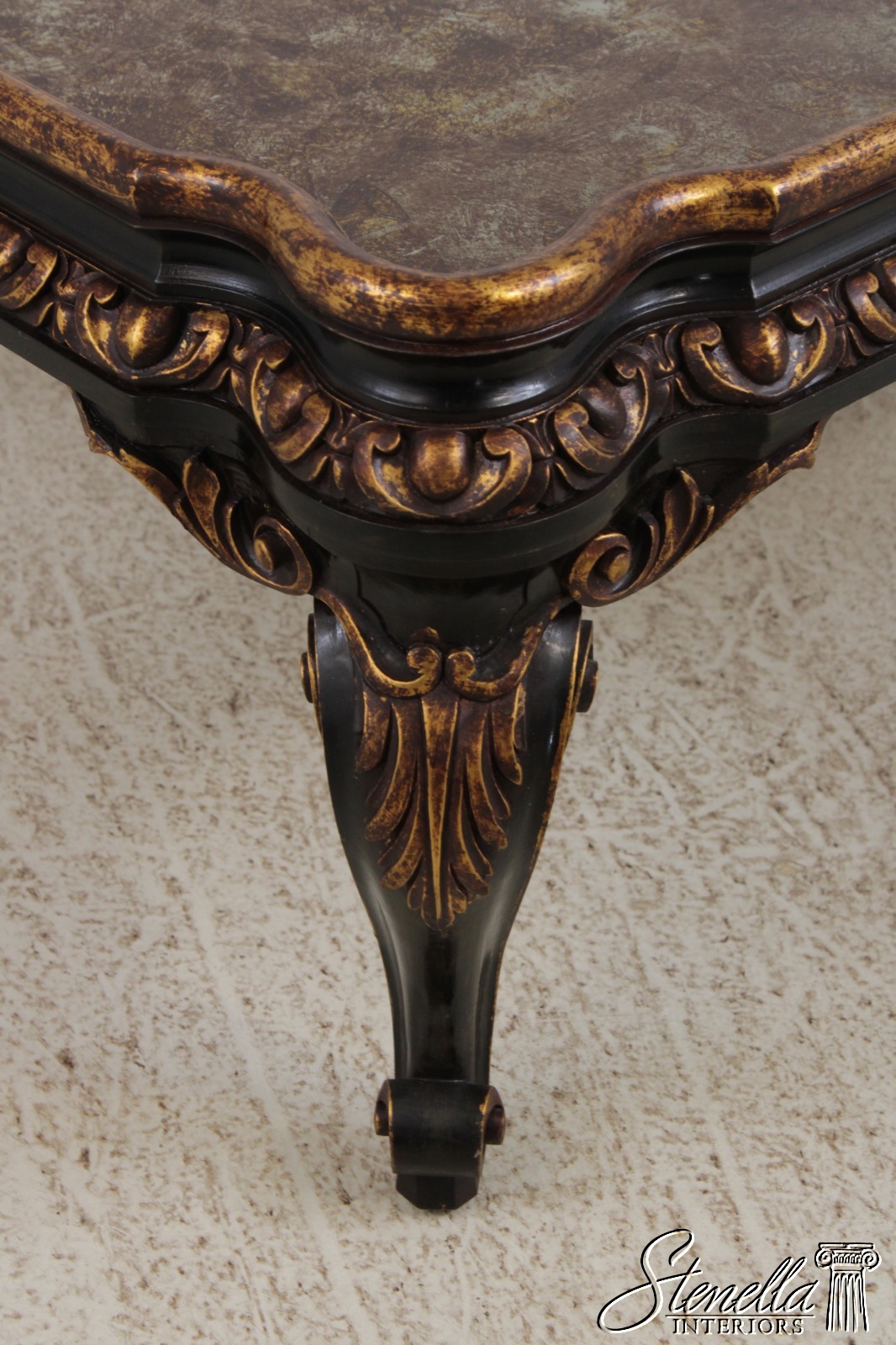 Details: Fine Carved Details High Quality Construction Queen Anne Legs & Pad Feet Individual Pane Glass Stunning Painted Finish French Style Ornate Carvings Tray Top Style Black And Gold Finish Unmarked As To Manufacturer - Possibly Marge Carson Or Similar Manufacturer Offered At A Fraction Of The Original Retail Cost