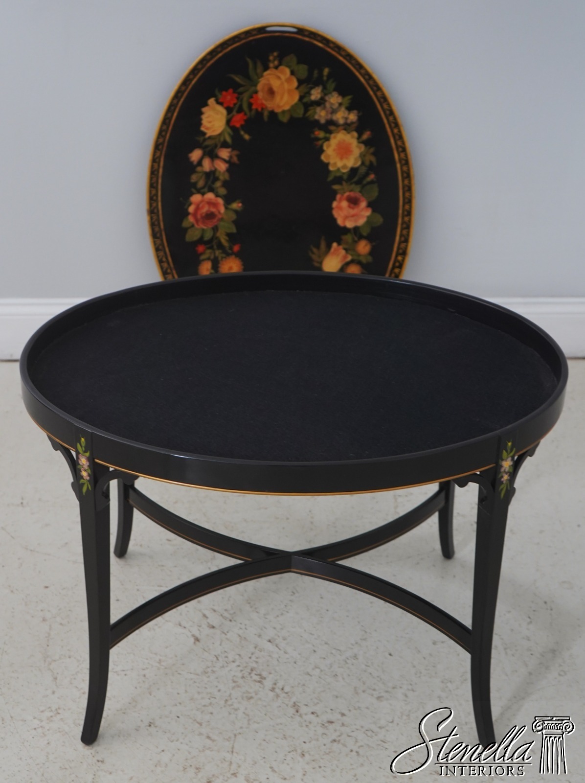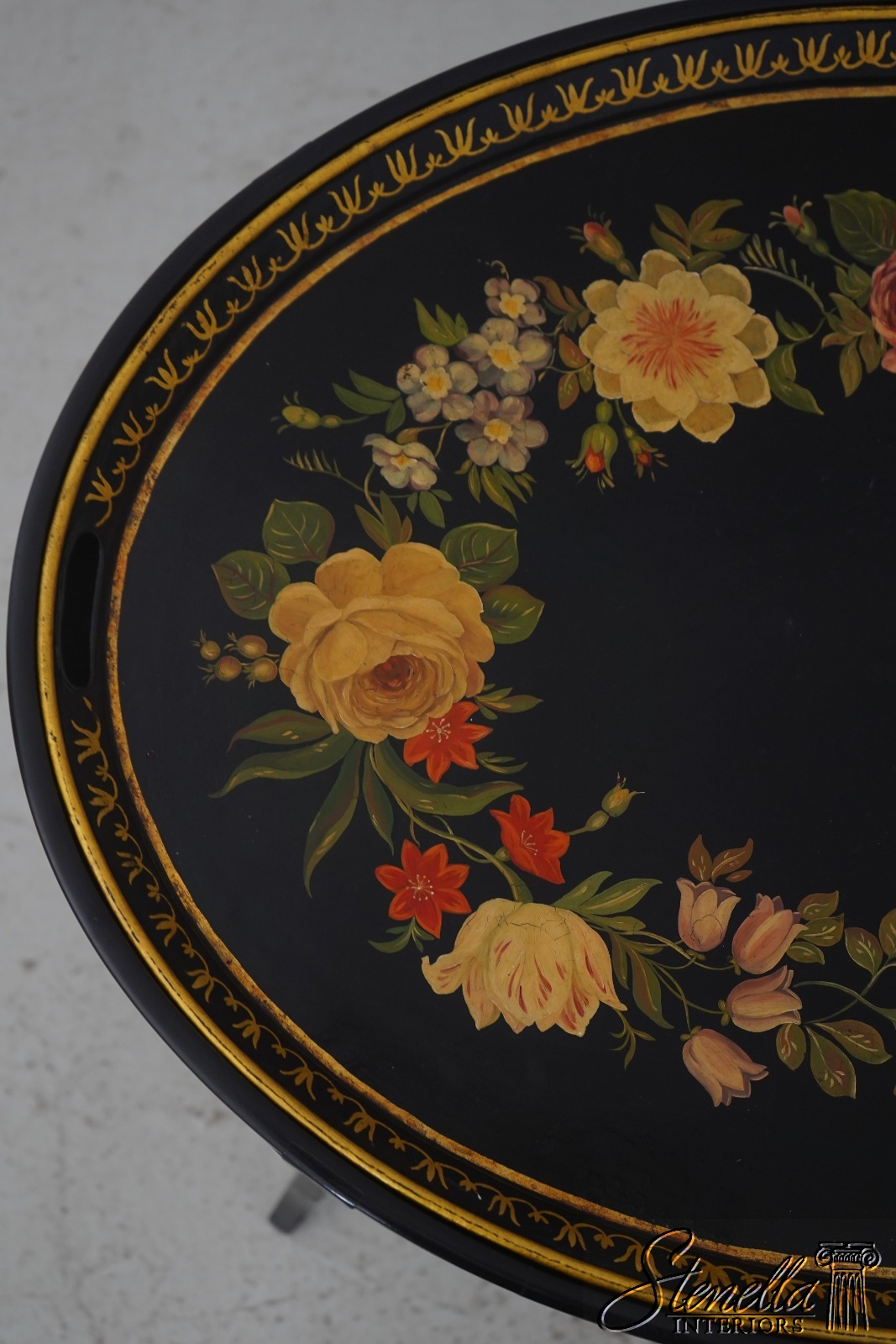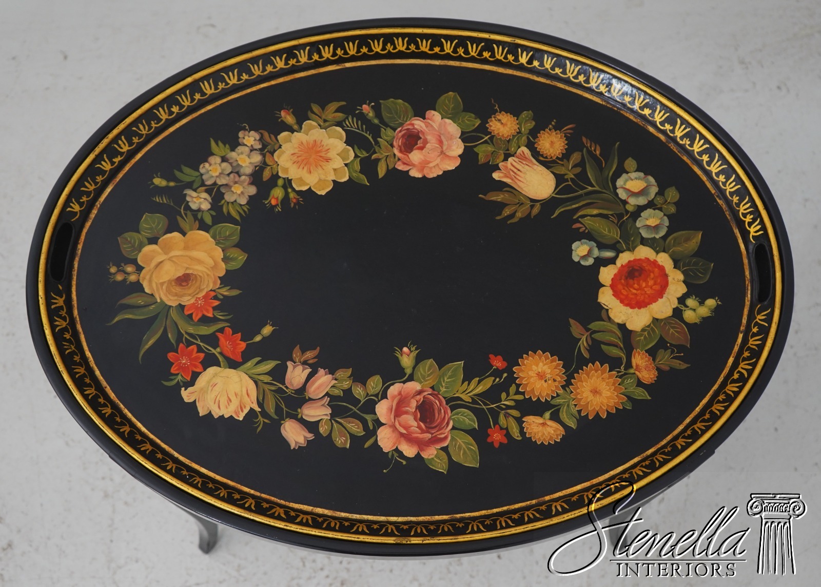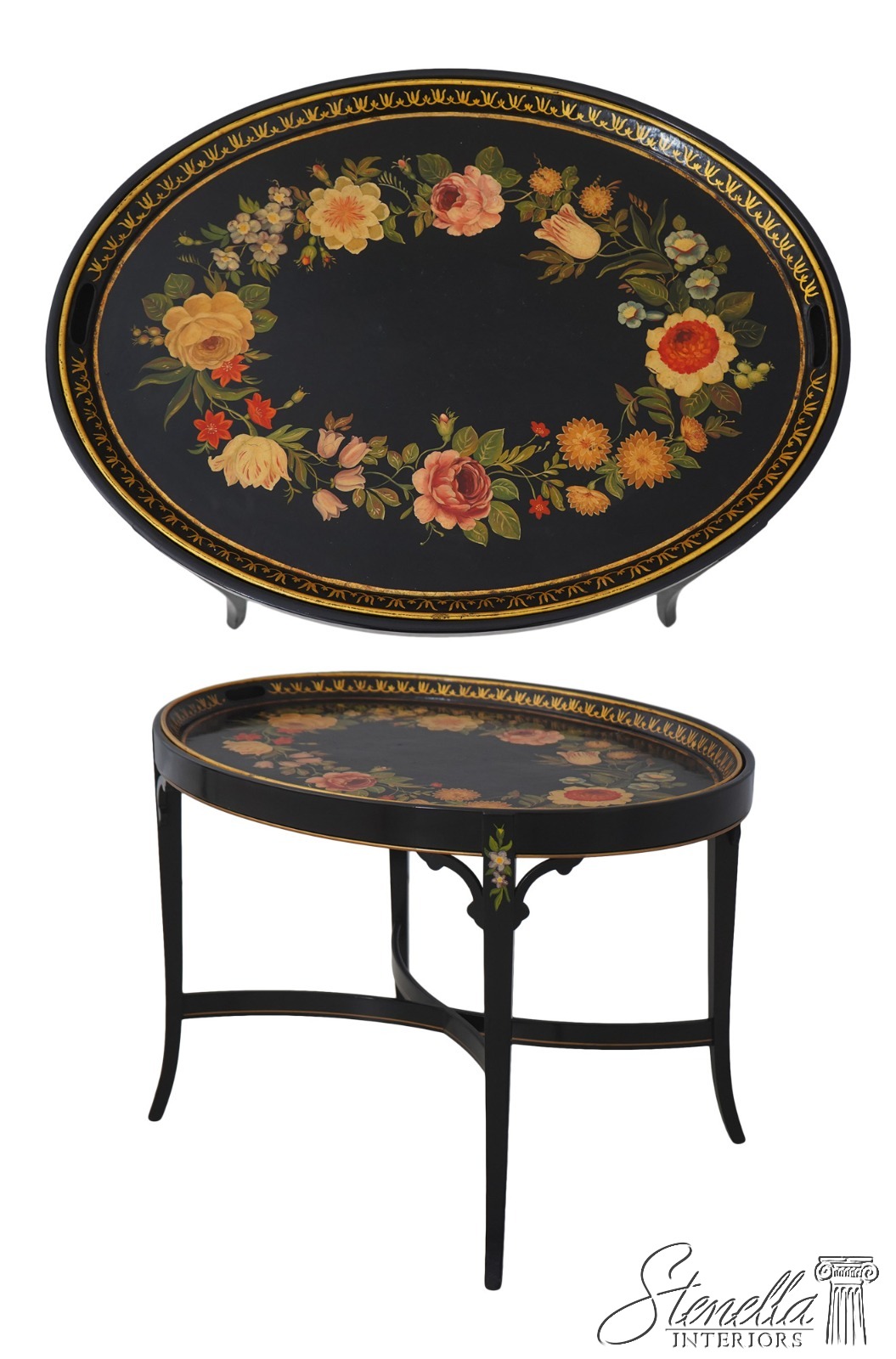 Details: Regency Style High Quality Construction Painted Toleware Tray Top Traditional Style Hand Painted Decoration Stretcher Base Frame Removable Tray Top Un-Marked As To Manufacture Offered @ Fraction Original Retail Cost