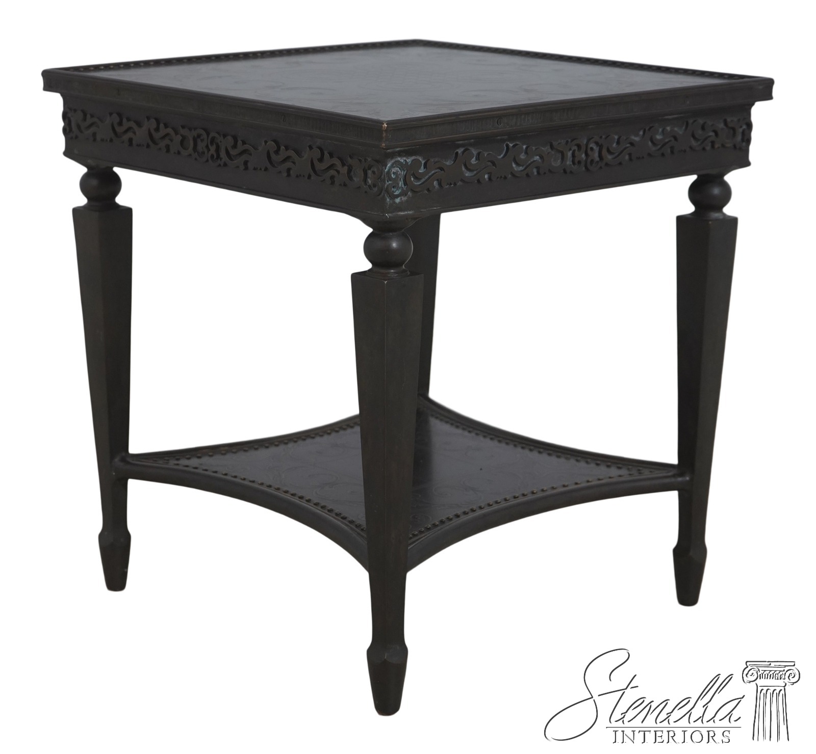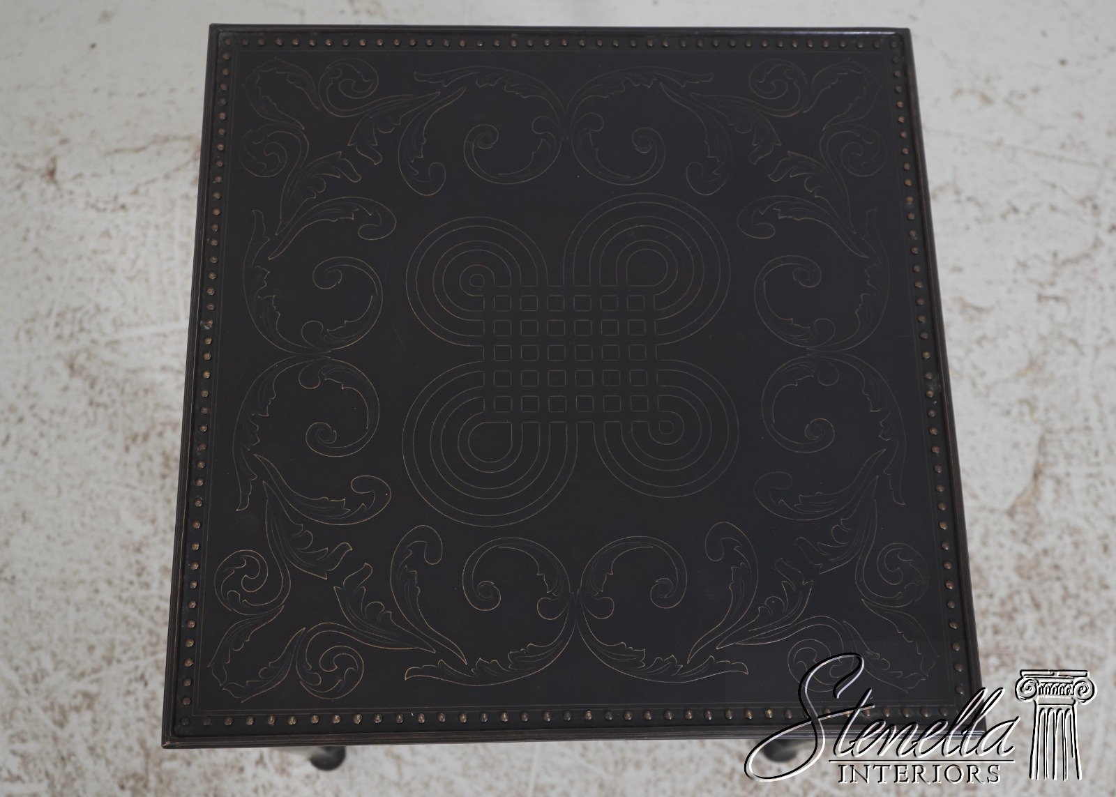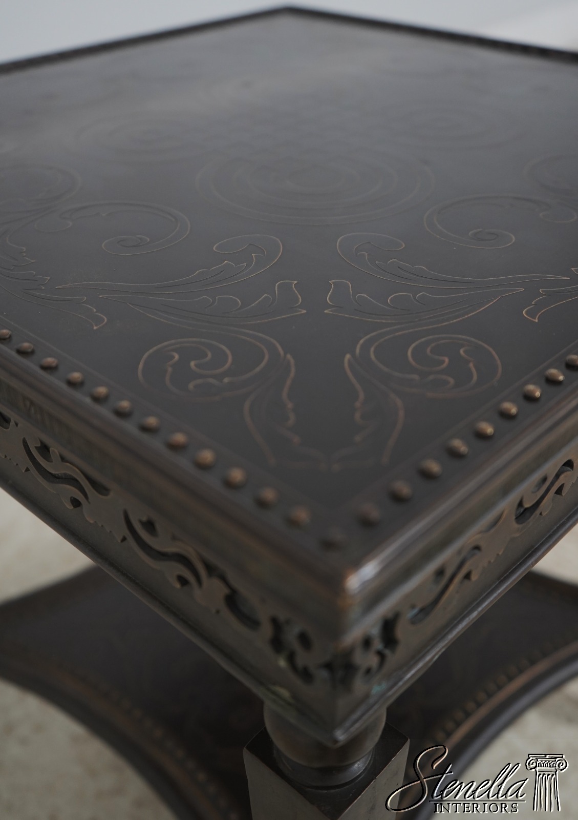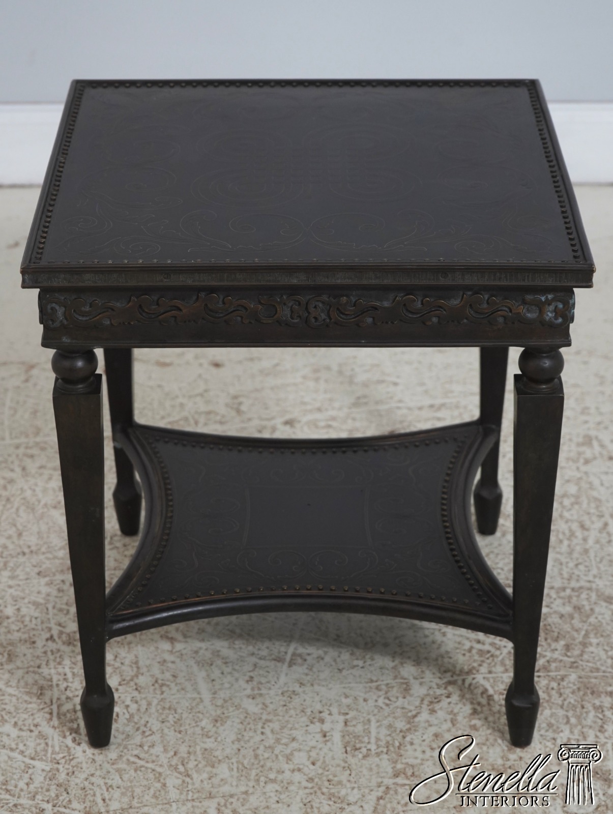 L72142: THEODORE ALEXANDER Bronze 2 Tier Square Etched Side Table