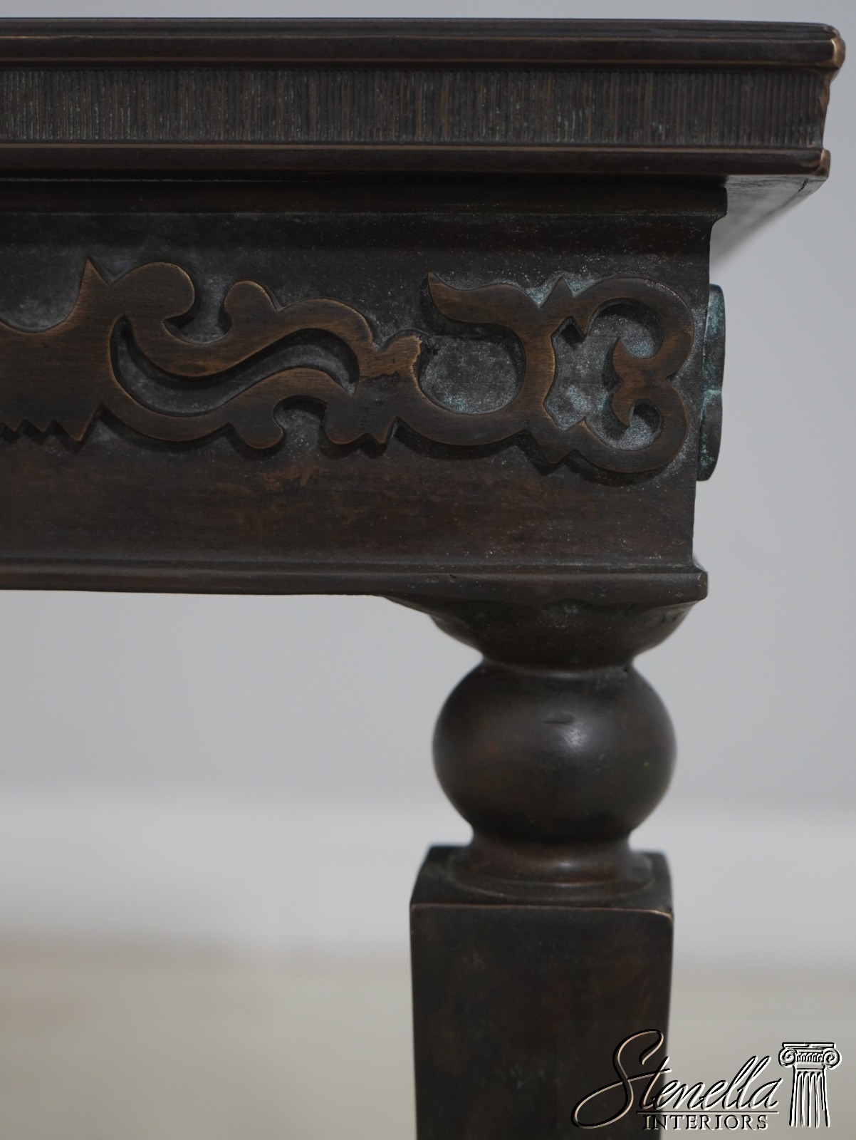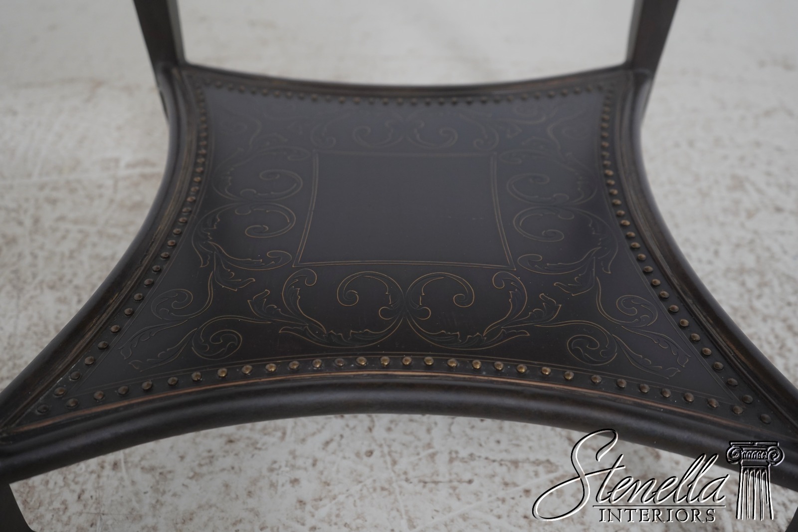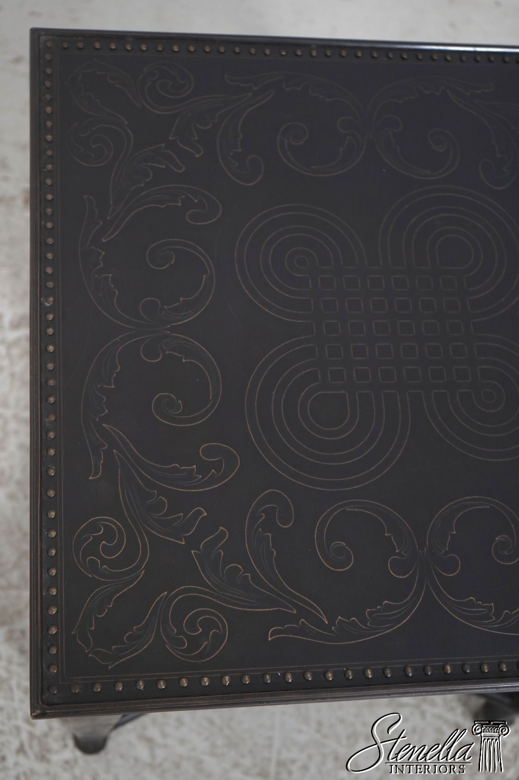 Details: Quality Construction Tack Head Trim Tapered Legs Spade Feet Nice Studded & Embossed Bronze Surface Etched Top & Shelf Un-Marked As To Manufacture Offered @ Fraction Original Retail Cost