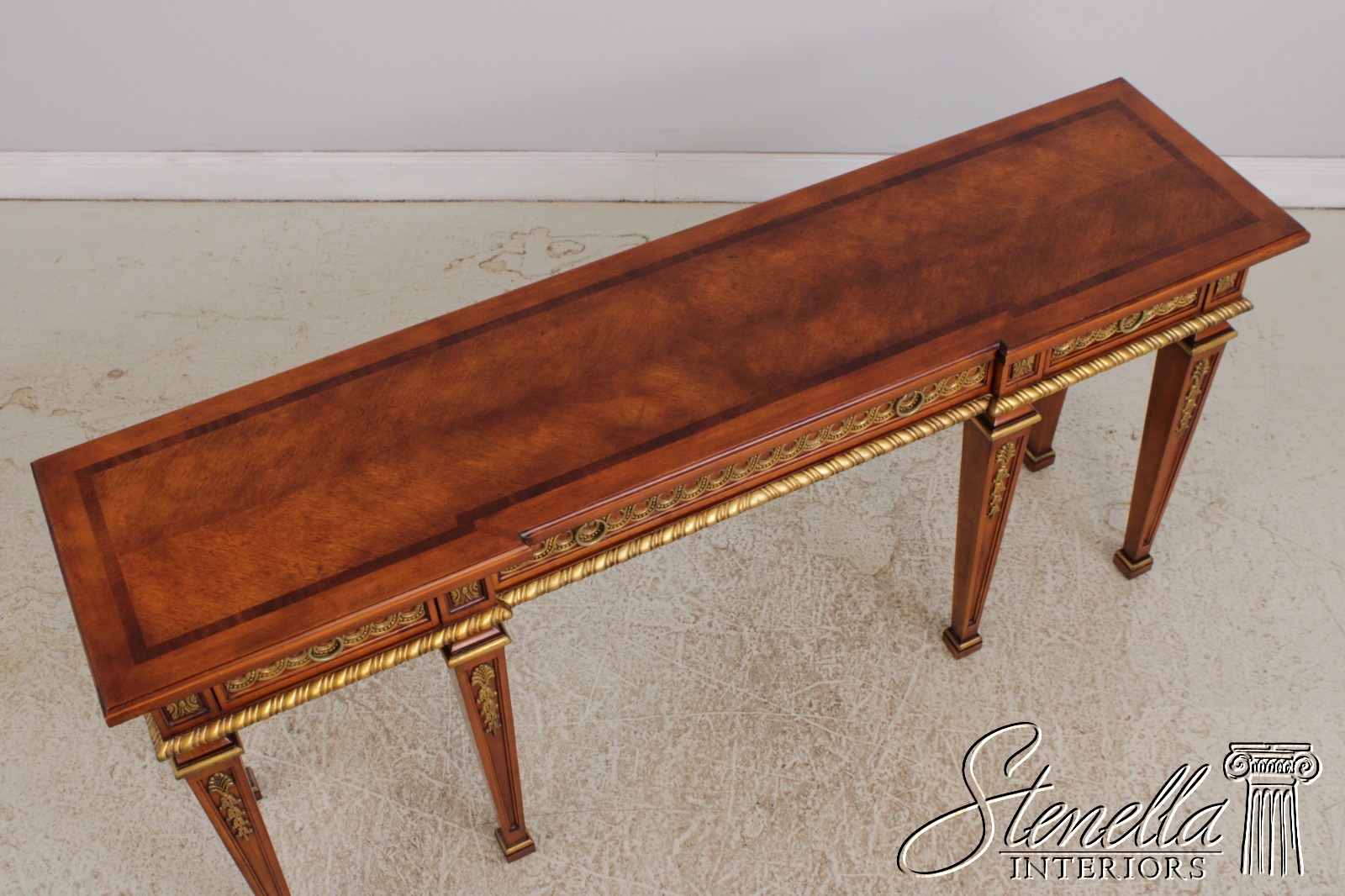 L72323: JOHN WIDDICOMB Italian Inlaid Gold Gilt Console Table