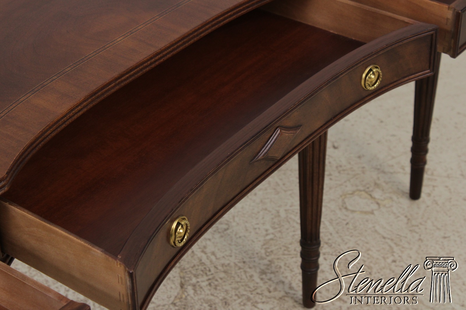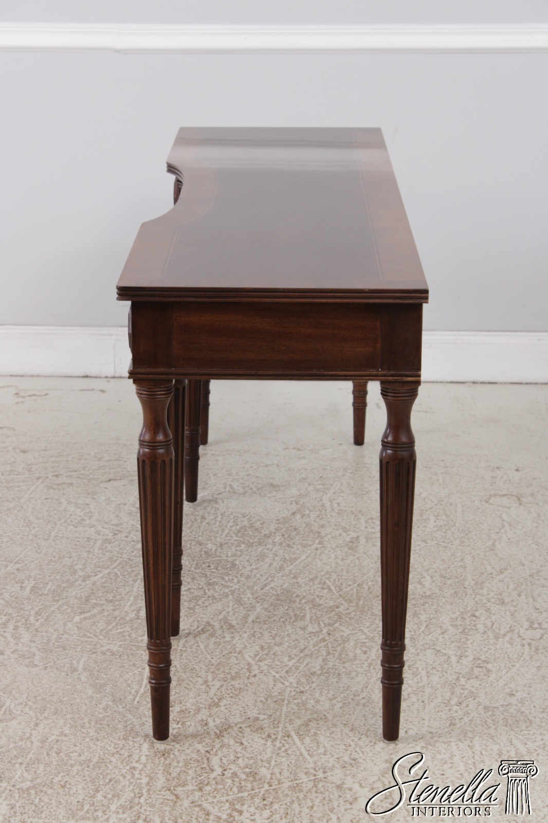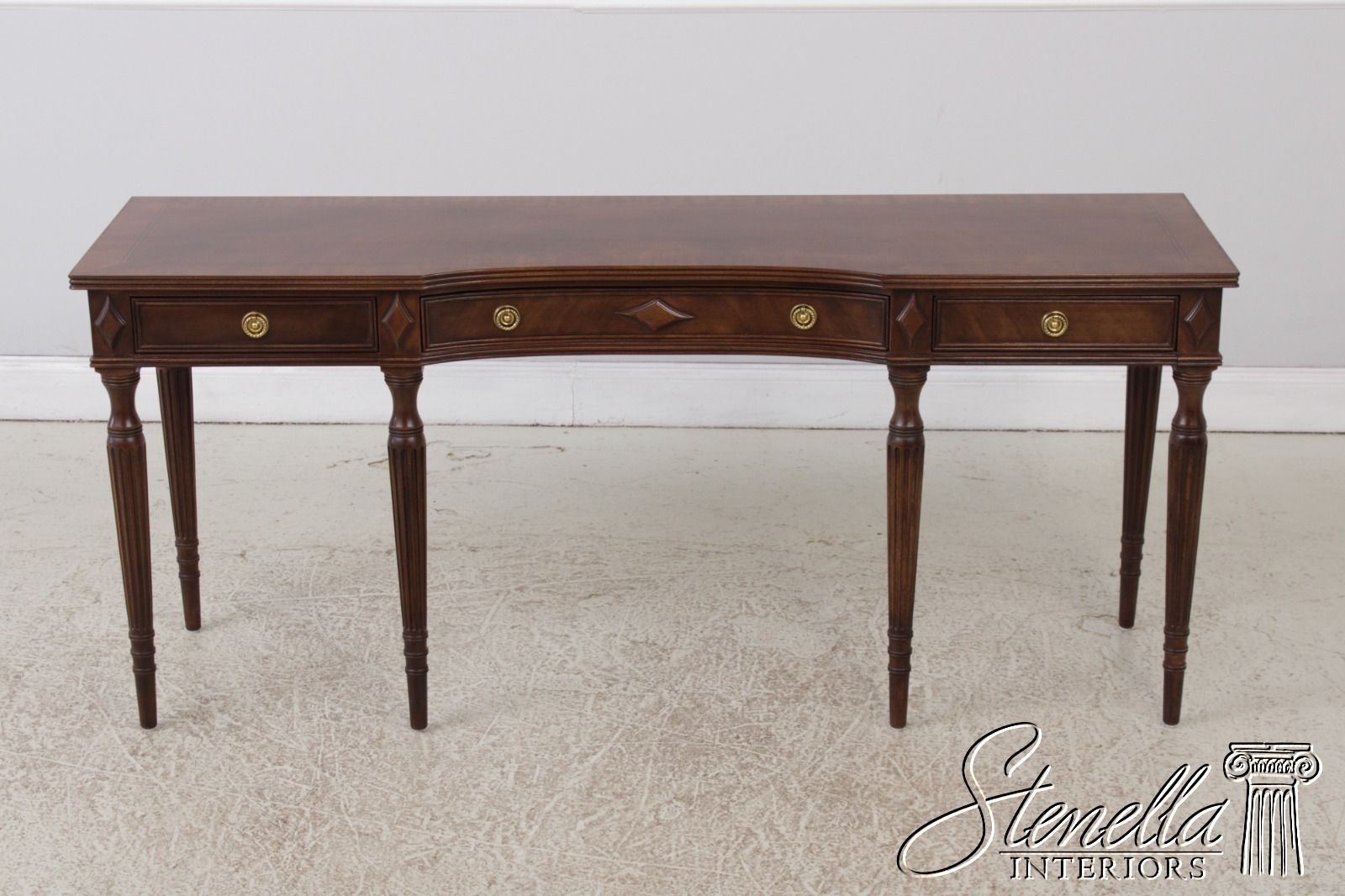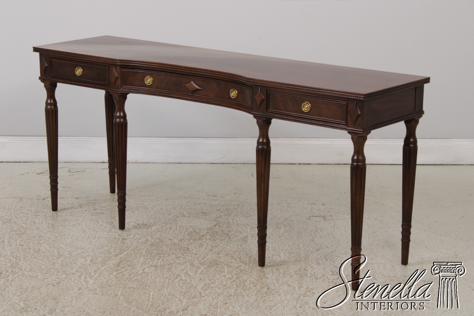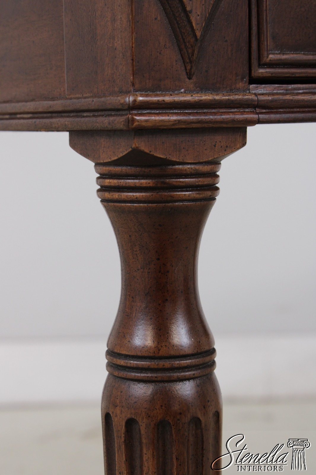Details: Regency Style Mahogany Dovetailed Drawer Construction Fine Carved Details High Quality Construction Sheraton Style Traditional Style Solid Brass Hardware Brown Mahogany Finish Tapered & Fluted Legs Offered @ Fraction Original Retail Cost