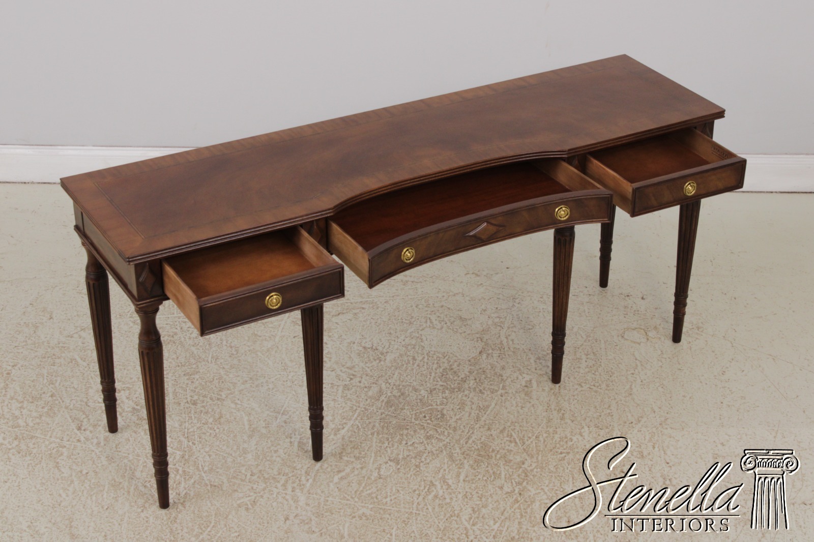 L72435: HENREDON Sheraton Mahogany 3 Drawer Hall Table