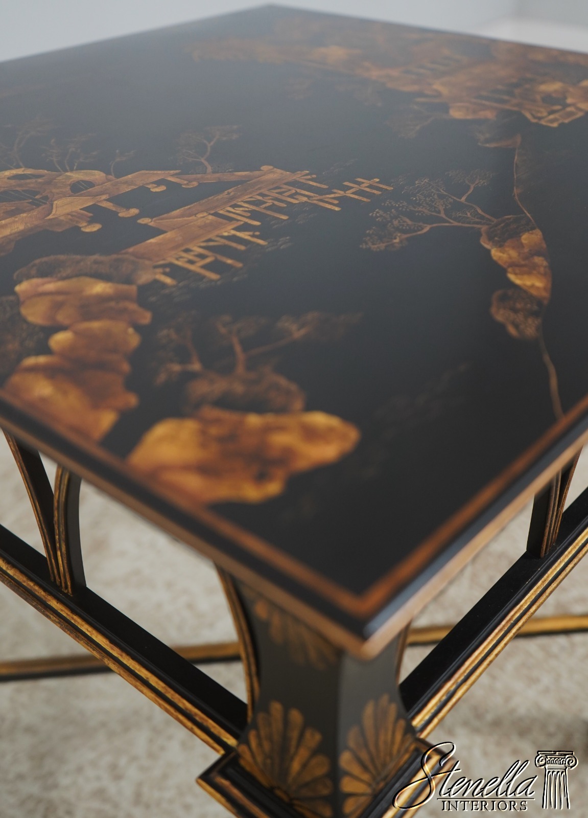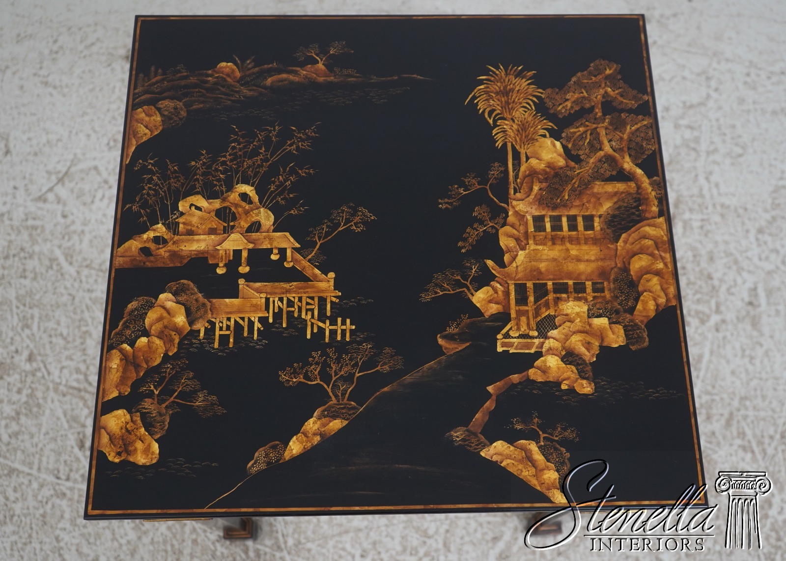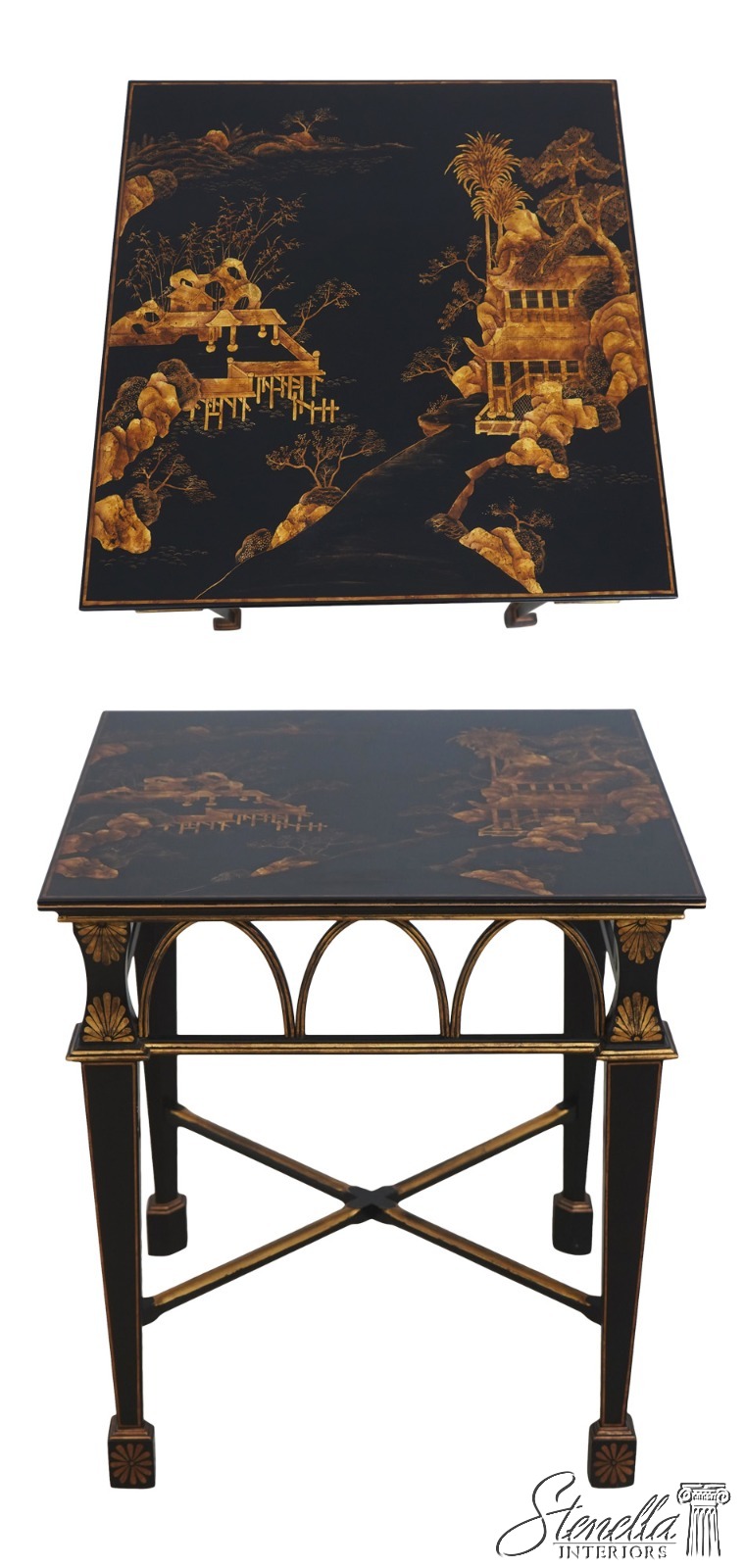 L72571: Chinoiserie Gold & Black Lacquer Occasional Lamp Table