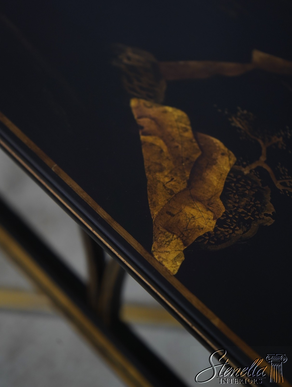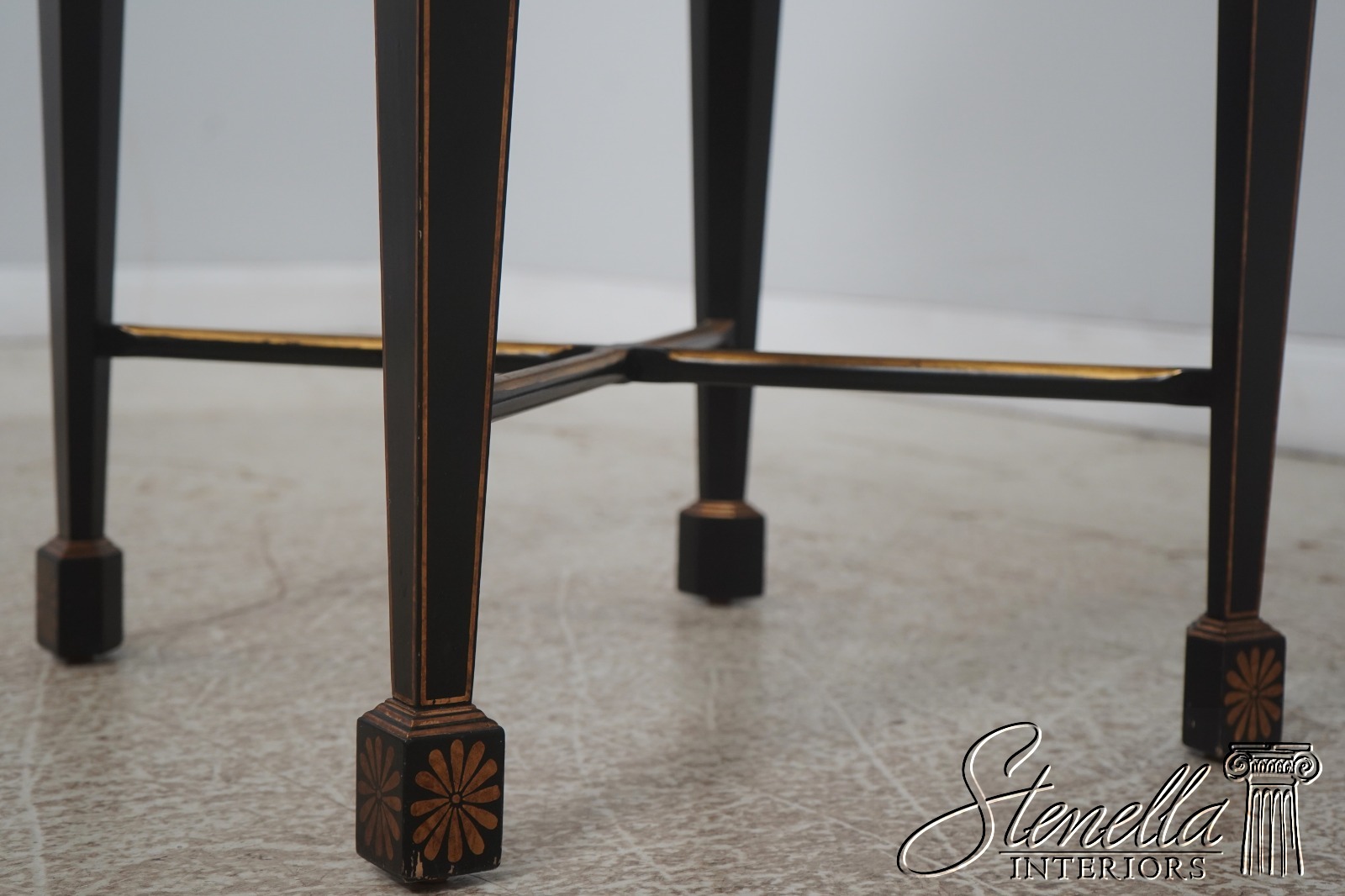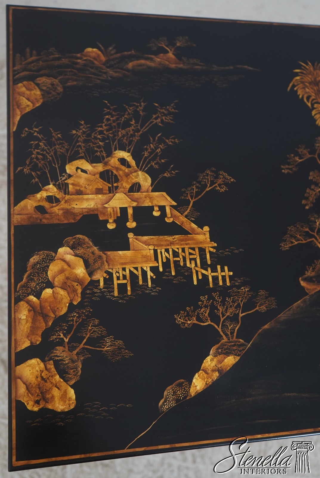Details: Quality Construction Stretcher Base Frame Stunning Chinoiserie Decorated Details Tapered Legs Unmarked As To Manufacturer Offered At A Fraction Of The Original Retail Cost