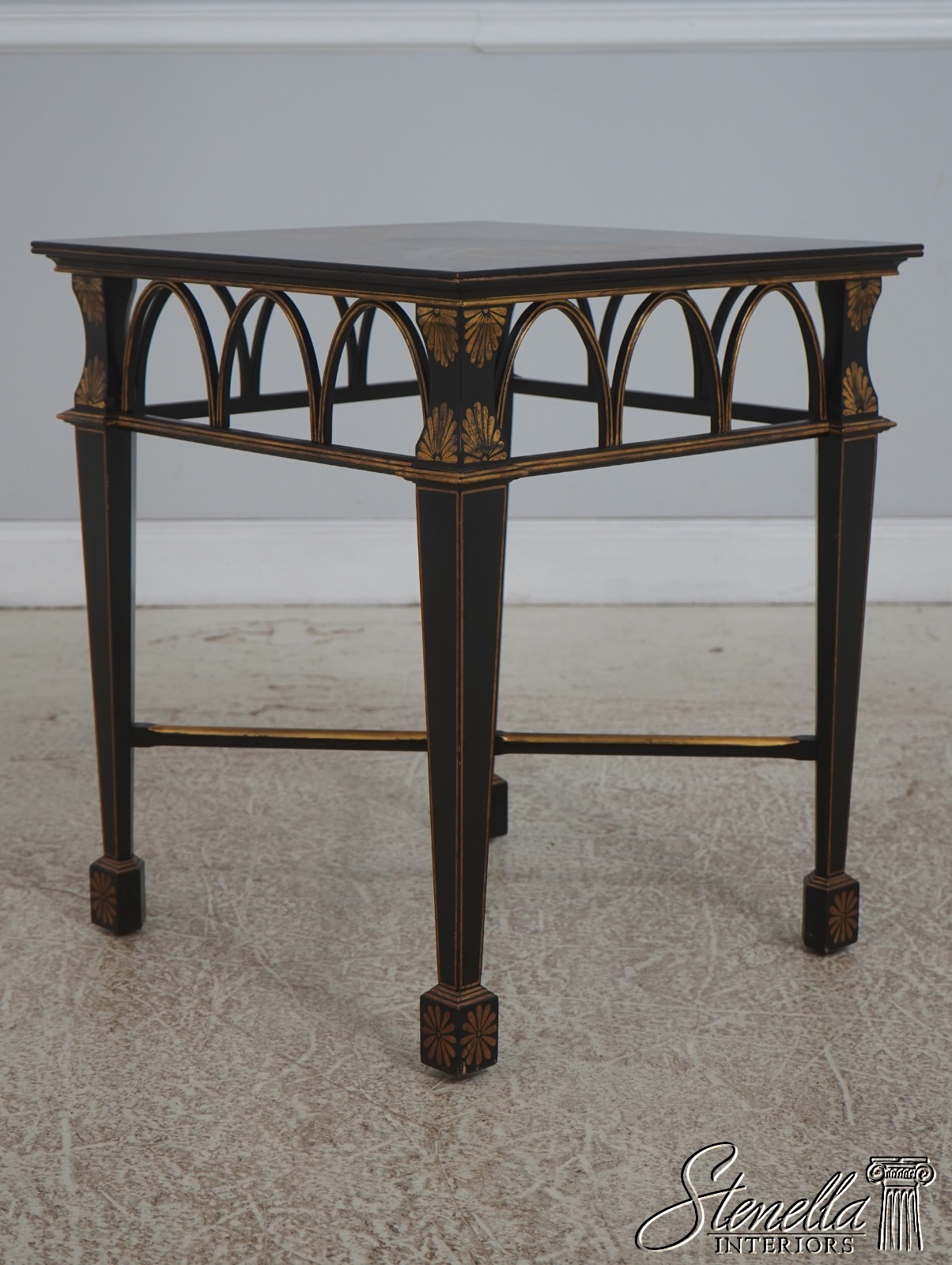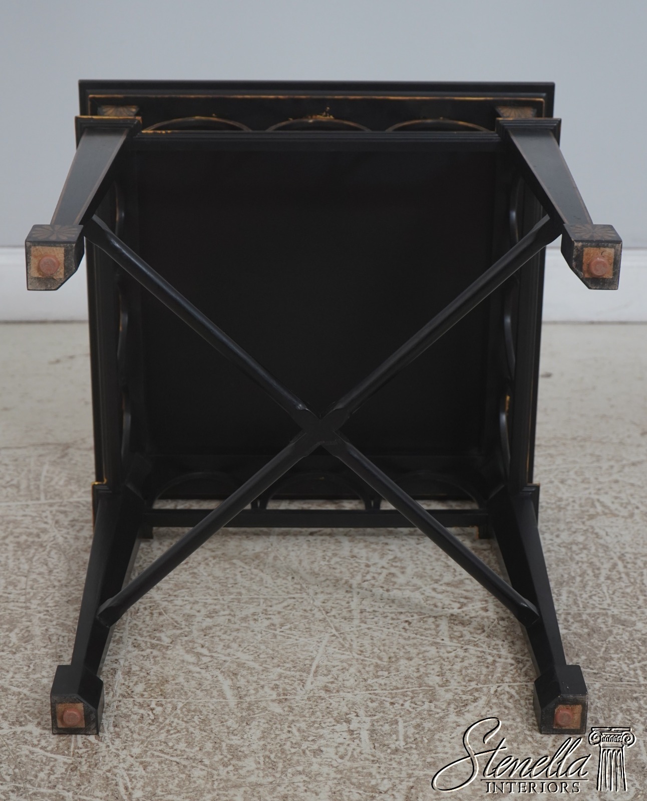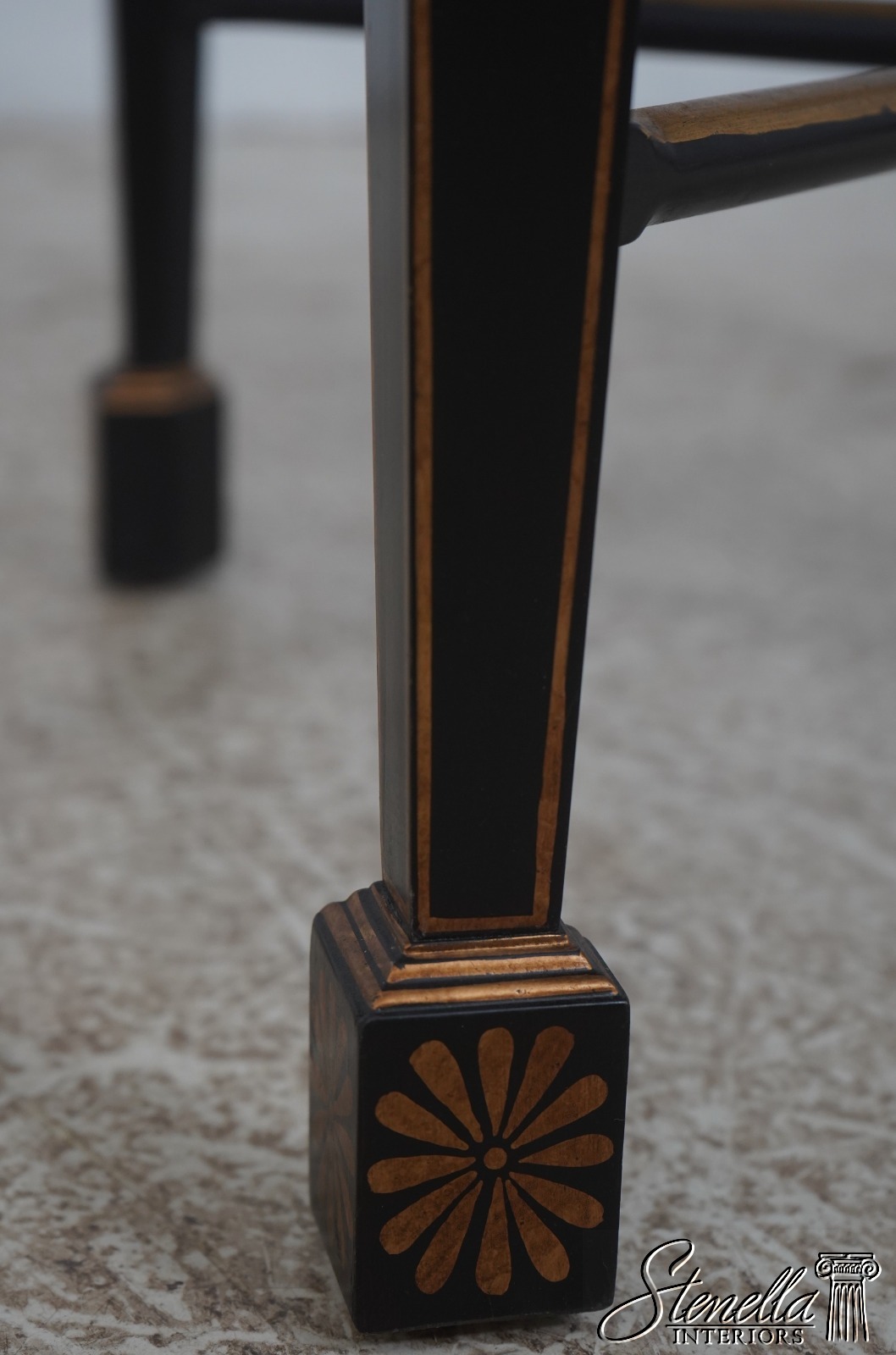 Details: Quality Construction Stretcher Base Frame Stunning Chinoiserie Decorated Details Tapered Legs Unmarked As To Manufacturer Offered At A Fraction Of The Original Retail Cost