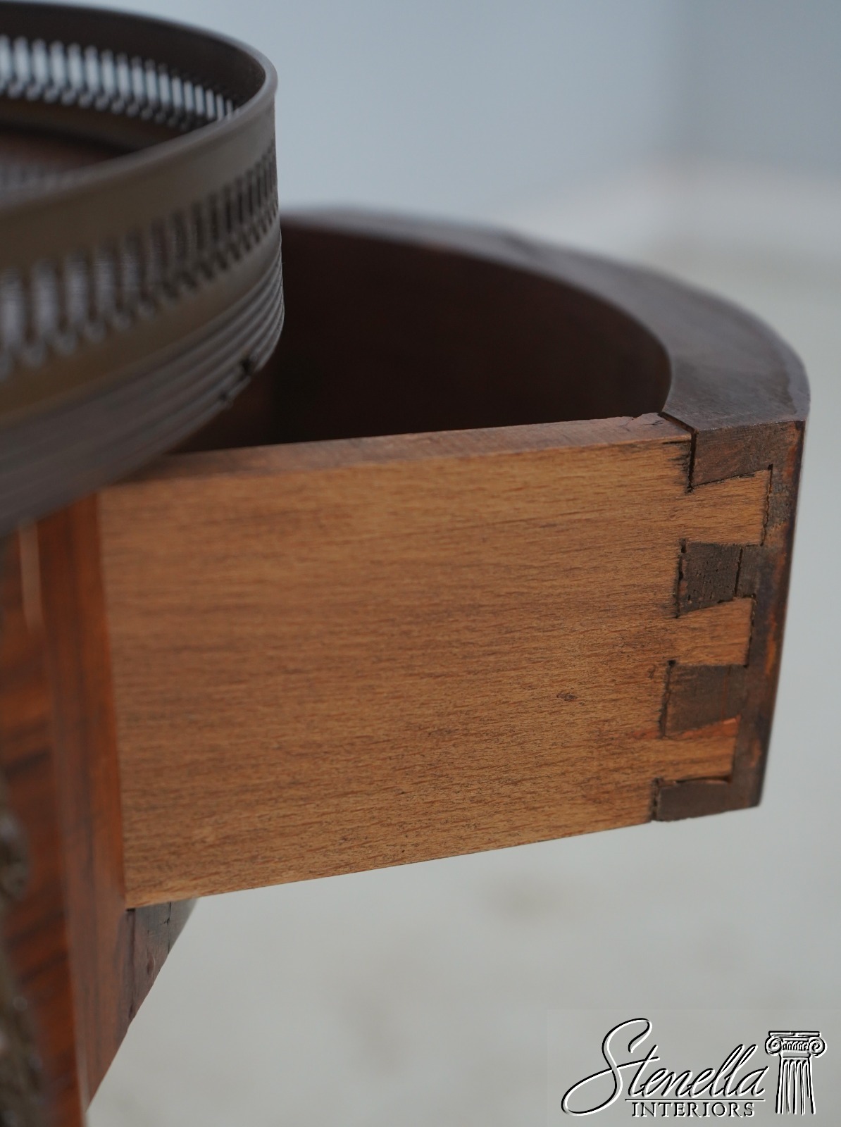 Details: Brass Gallery Top Dovetailed Drawer Construction High Quality Construction Pierced Bronze Gallery Bronze Mounted ormolu French Louis XV Style 1 Drawer 18 C. Design Solid Brass Hardware Un-Marked As To Manufacture Offered @ Fraction Original Retail Cost