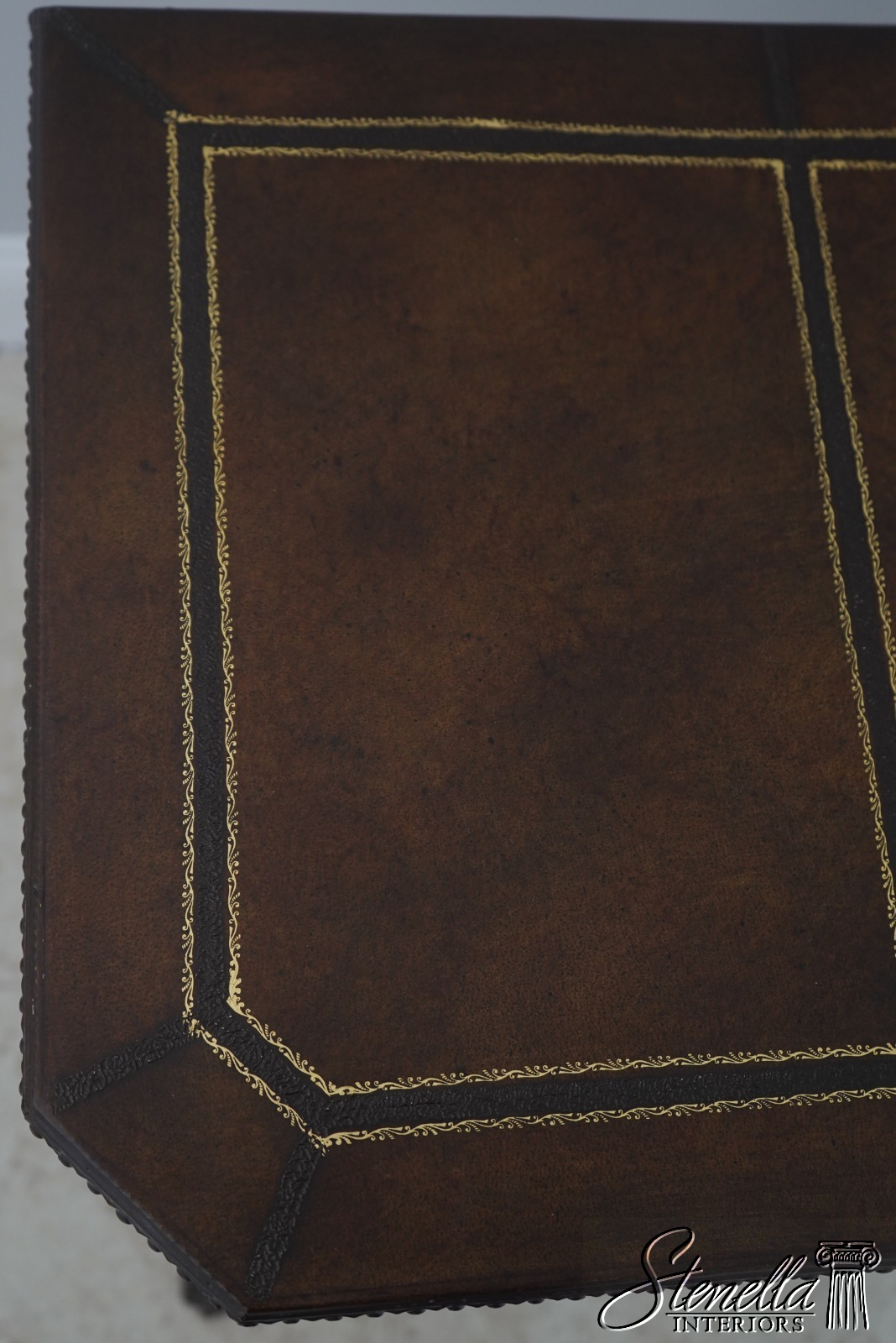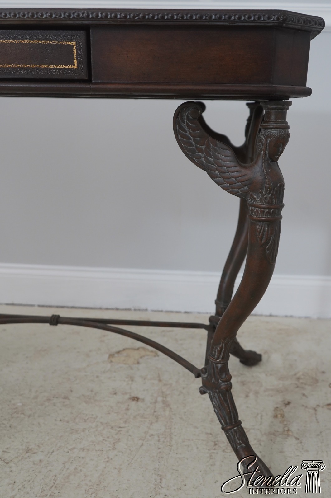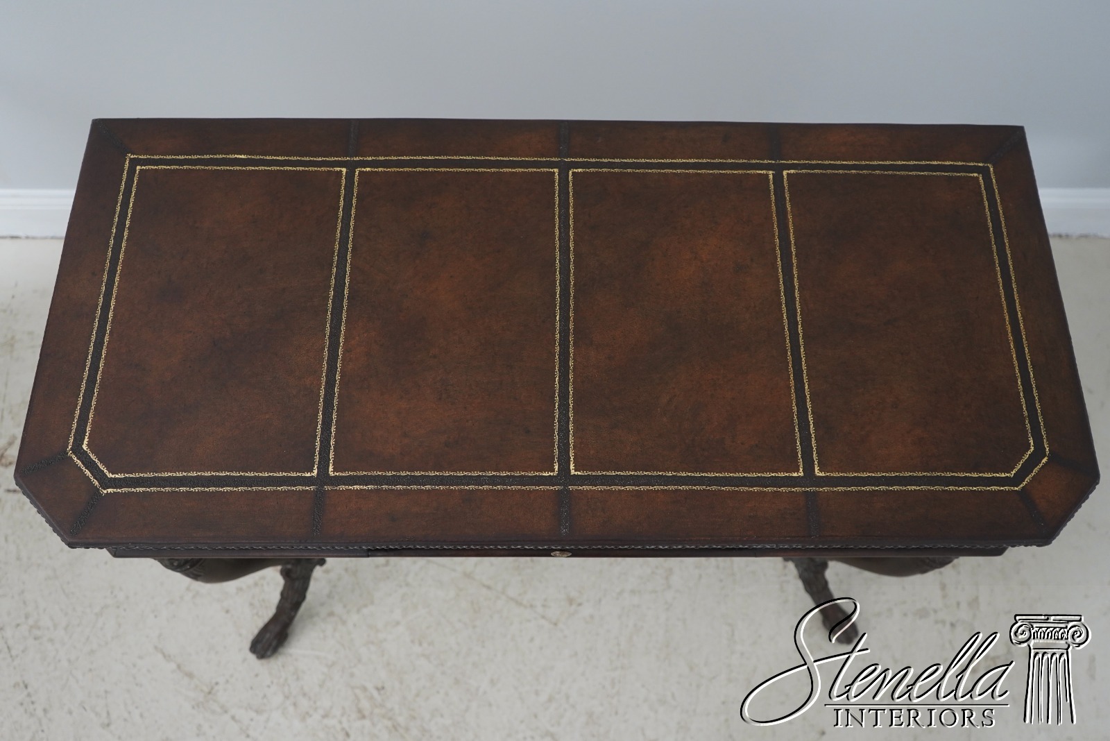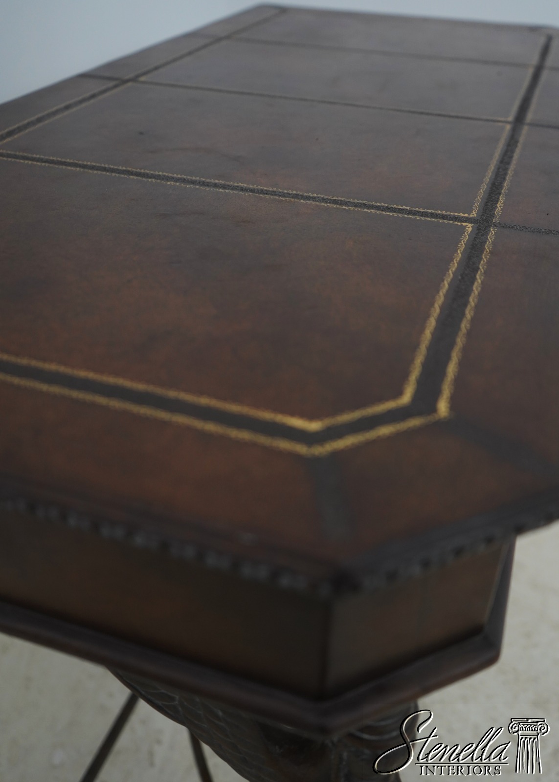 Details: Quality Tooled Leather Top Winged Figural Legs Un-Marked As To Manufacture Comparable To Maitland Smith Or Similar Manufacturer
