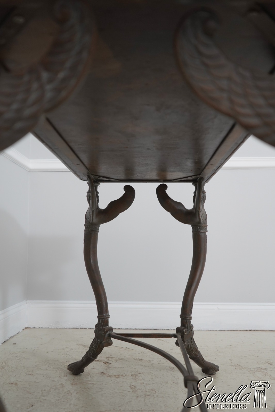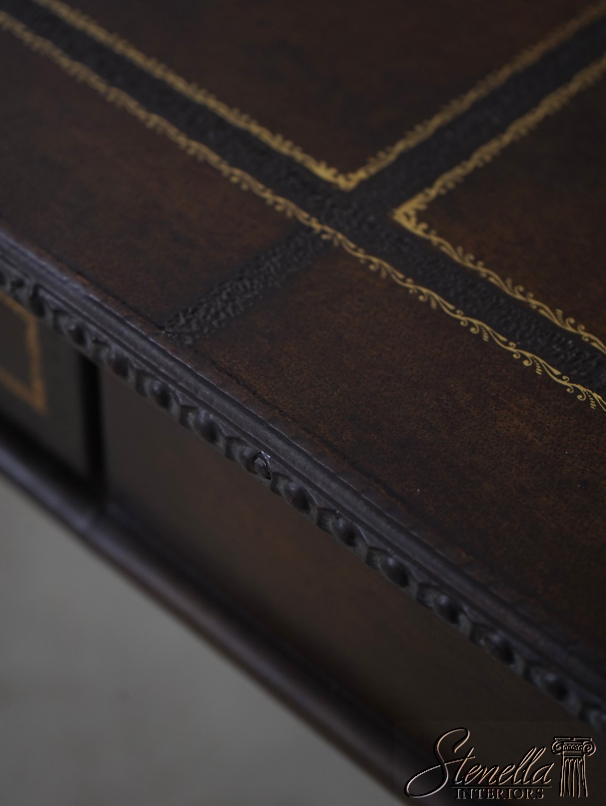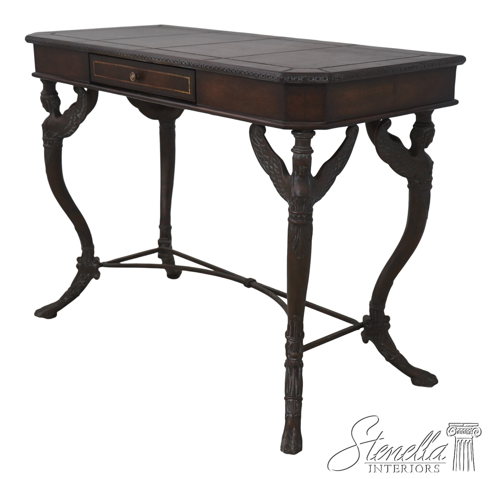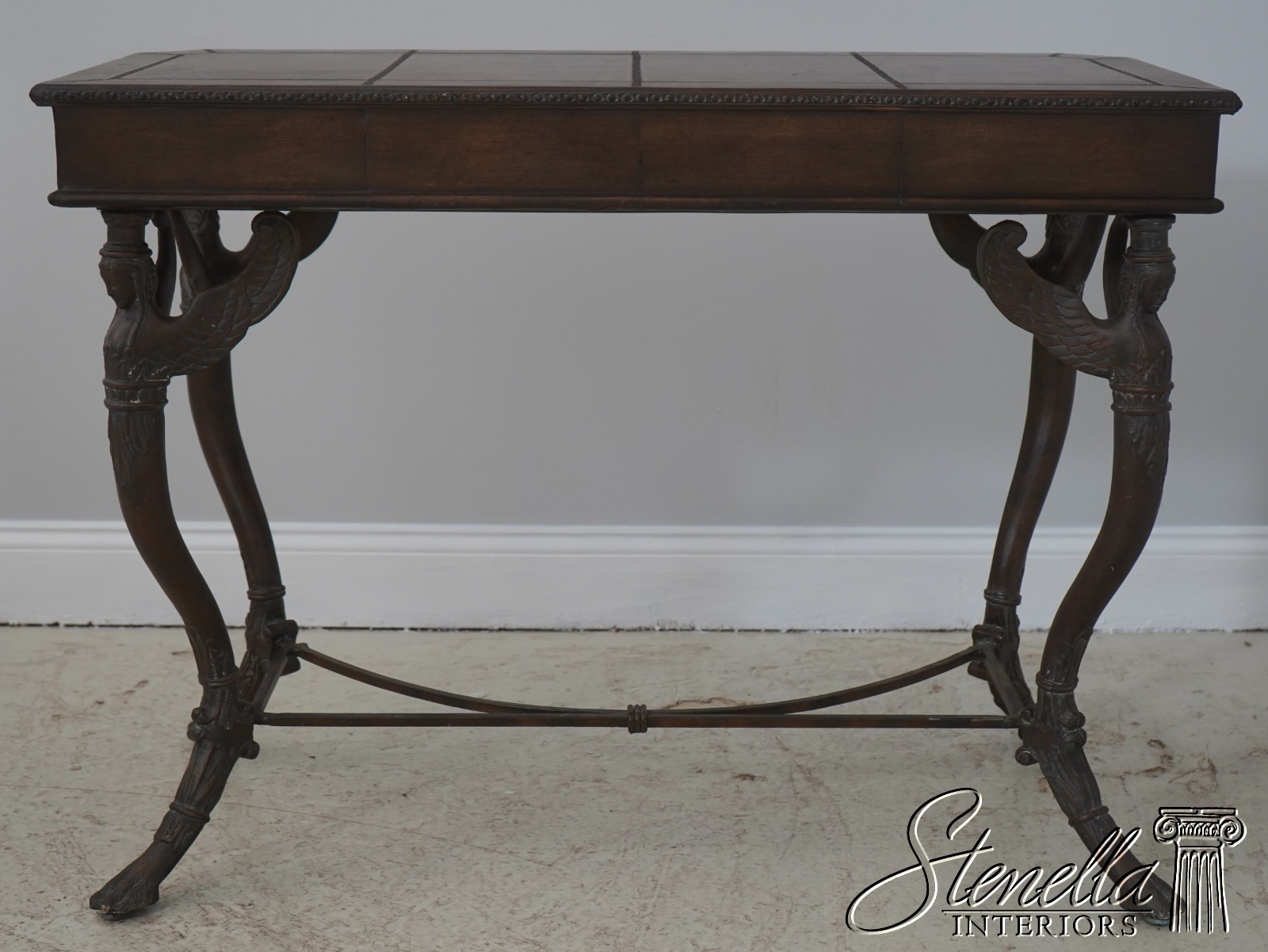 Details: Quality Tooled Leather Top Winged Figural Legs Un-Marked As To Manufacture Comparable To Maitland Smith Or Similar Manufacturer