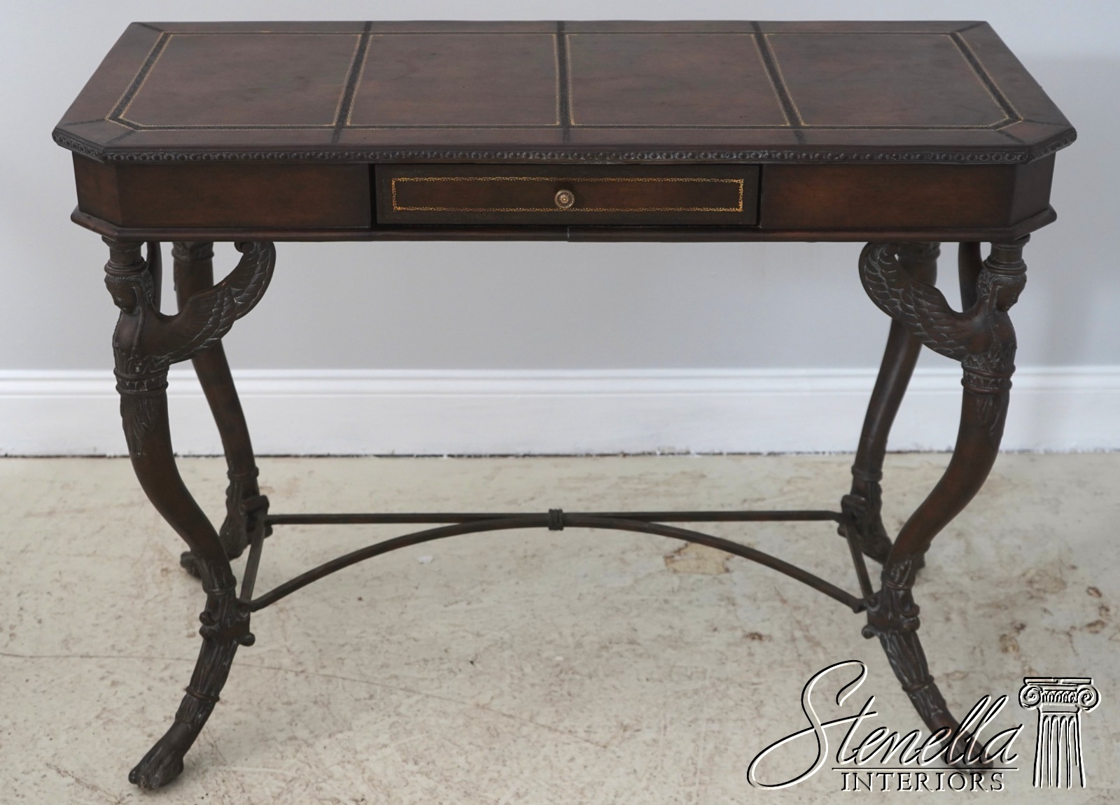 LF71087: Leather Top Metal Base 1 Drawer Console Table