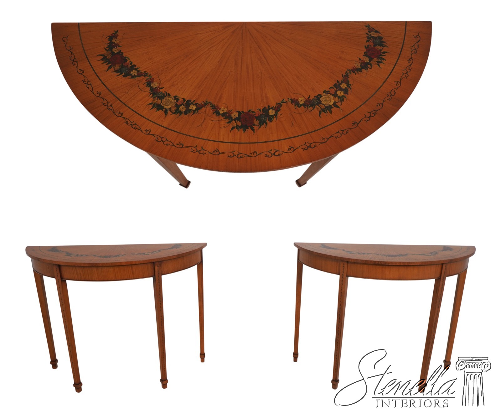 LF71862: Pair Of Adams Style Demilune Console Tables