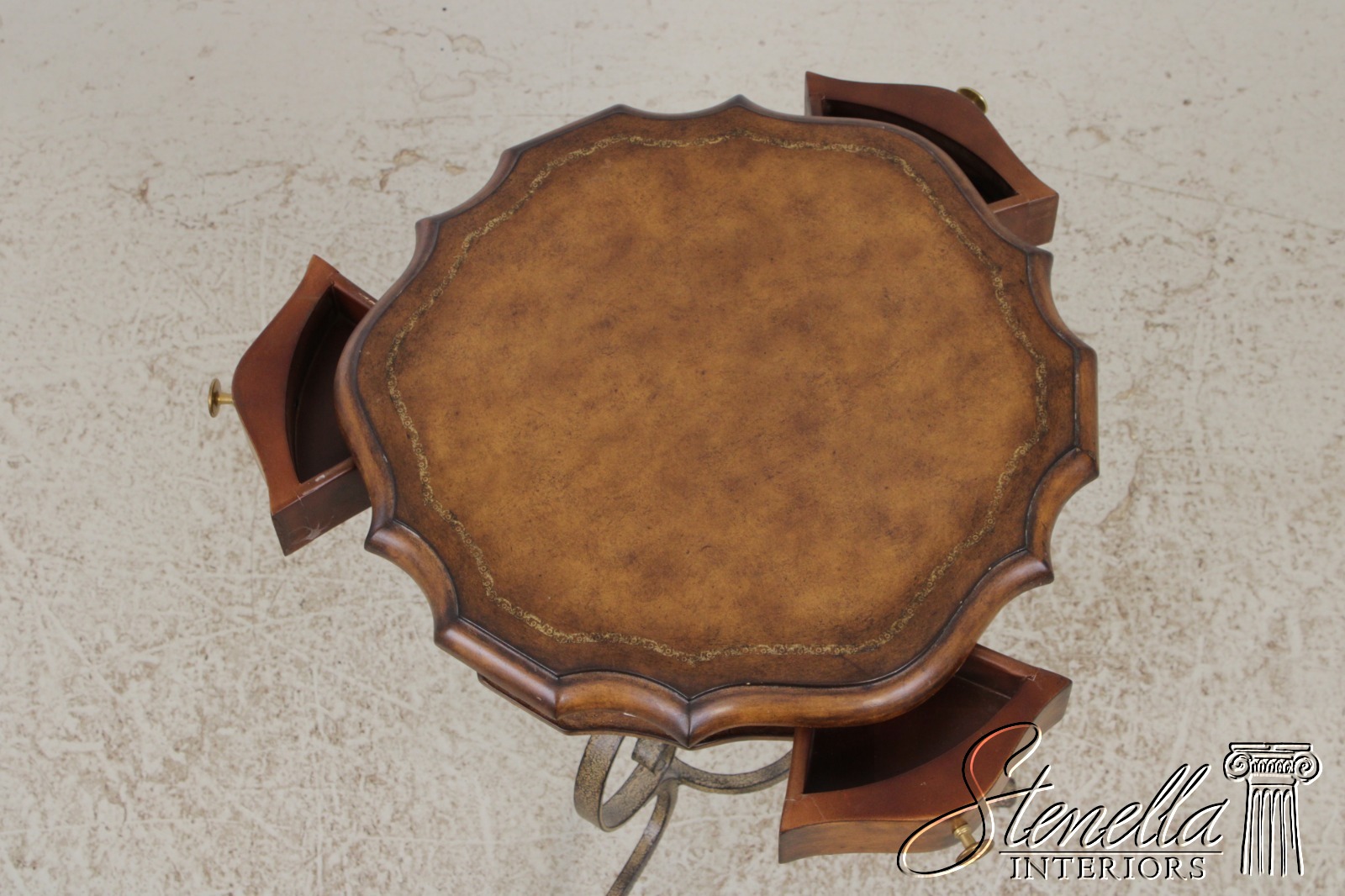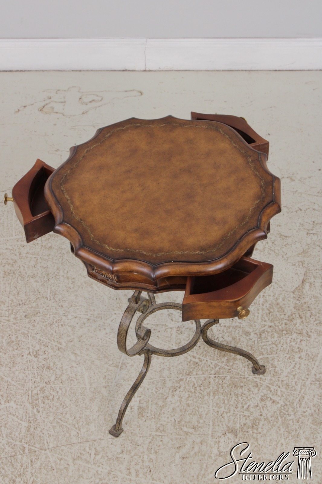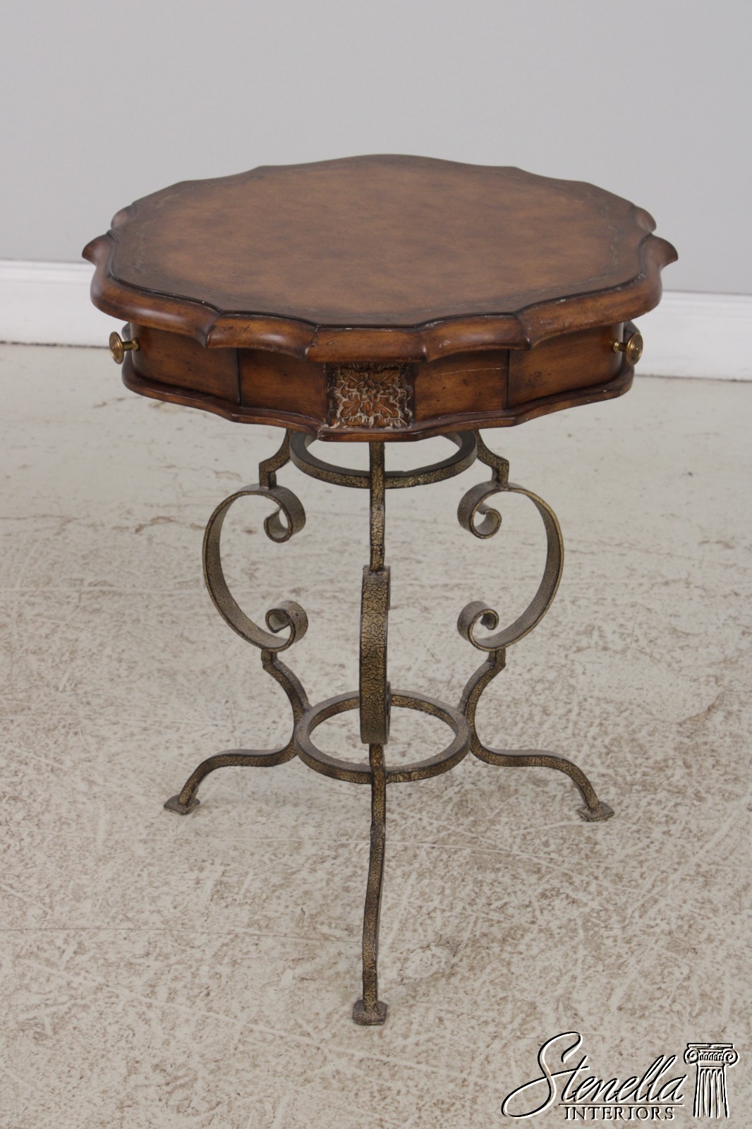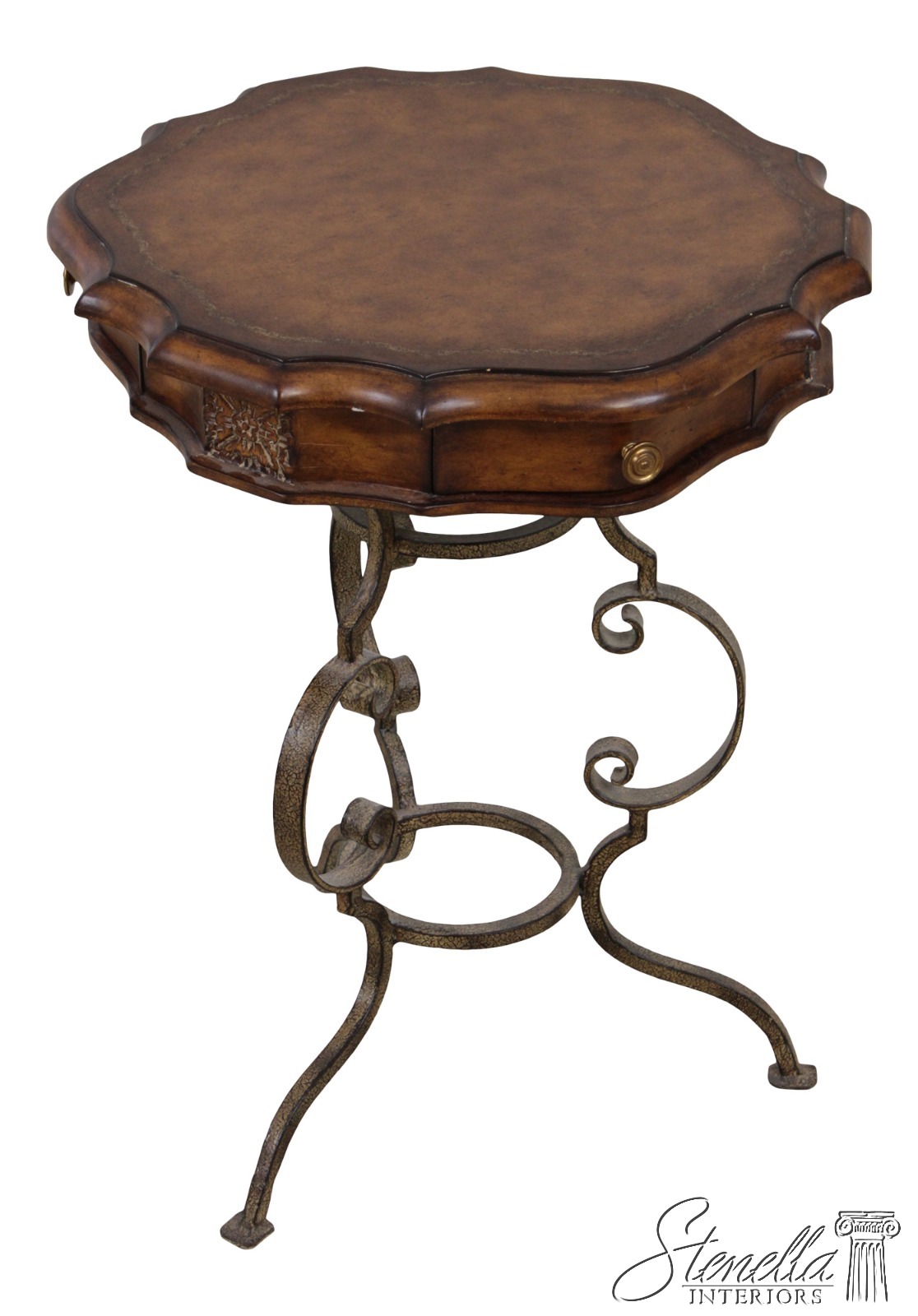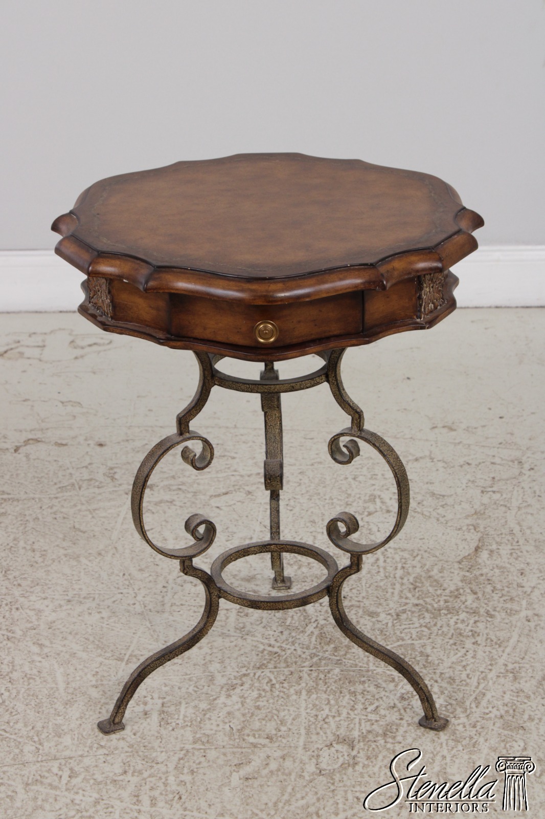 LF72087: Leather Top Wrought Iron Base Mahogany Side Table