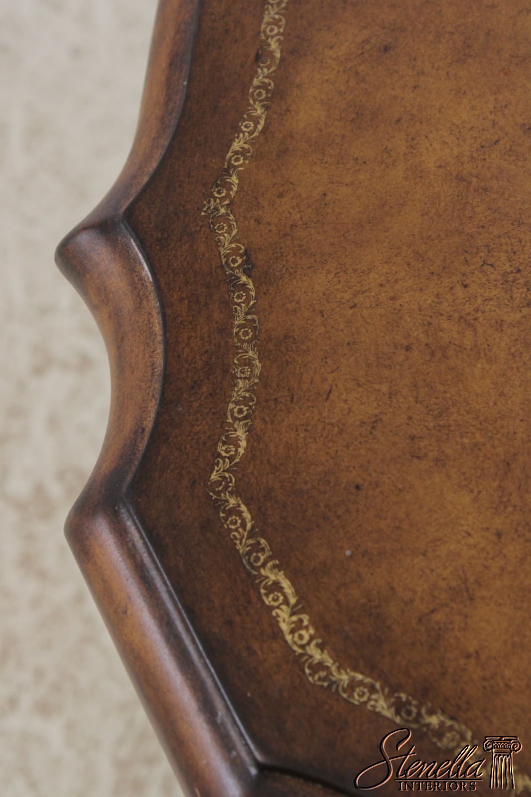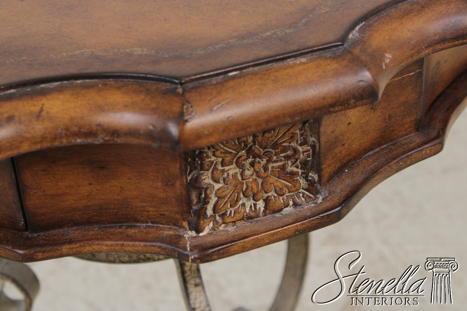 Details: Mahogany Fine Carved Details High Quality Construction Traditional Style Solid Brass Hardware Embossed Top Crackle Paint Base Un-Marked As To Manufacture Offered @ Fraction Original Finish & Condition