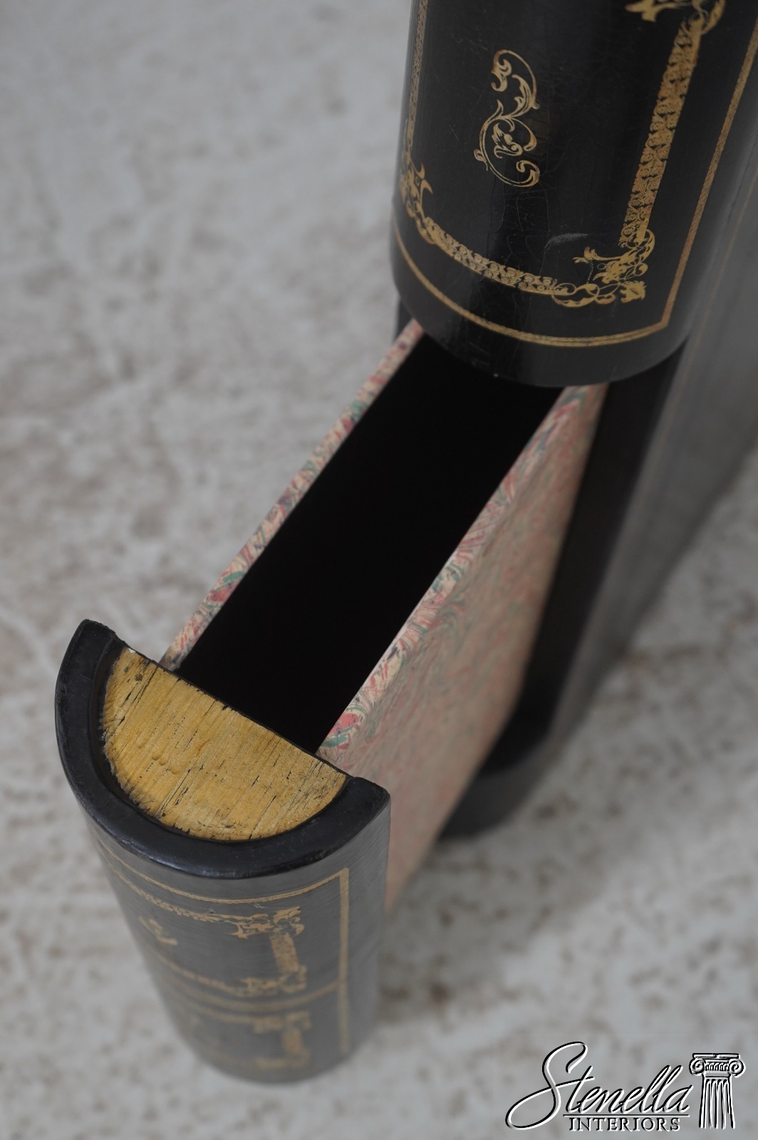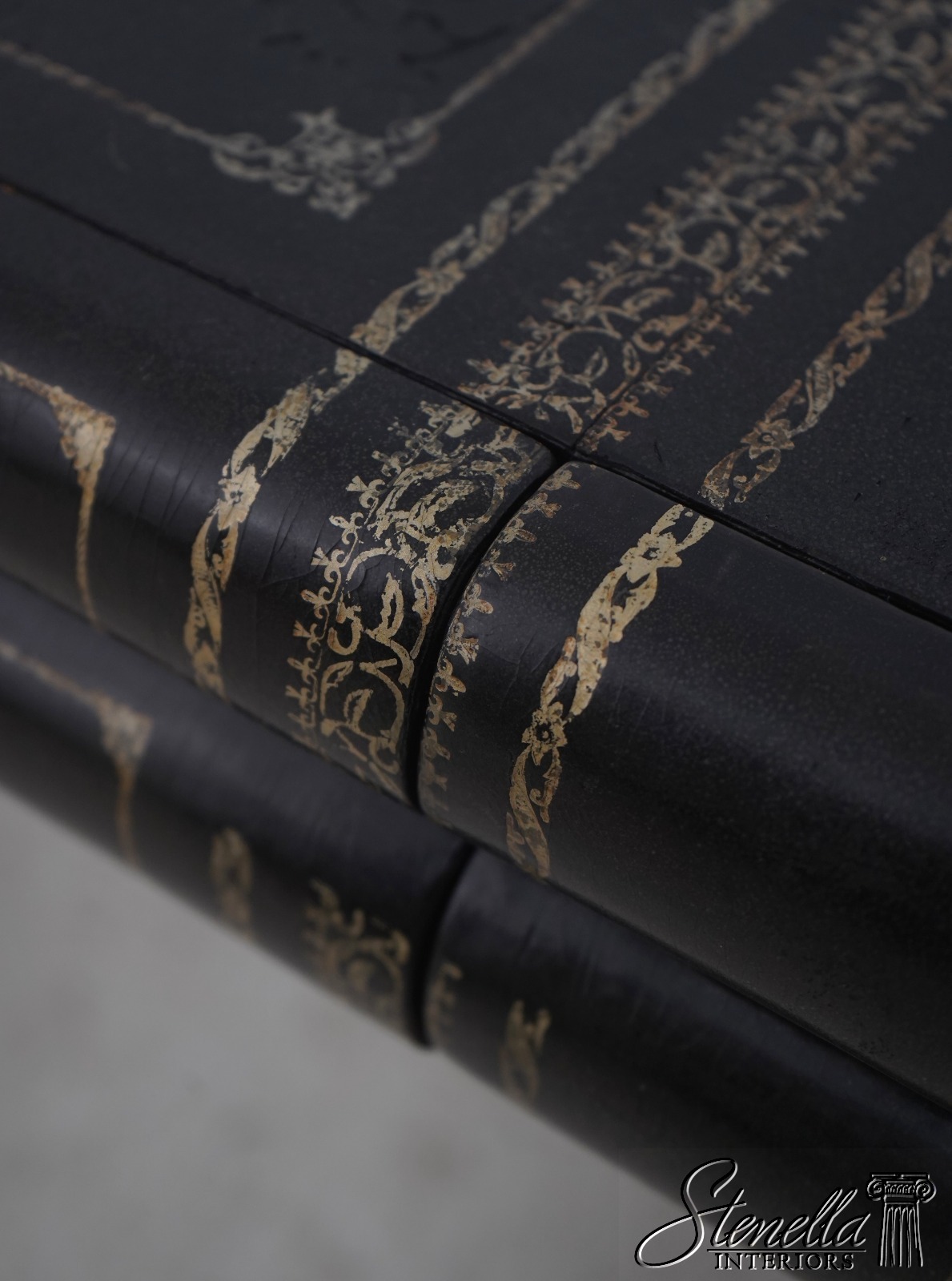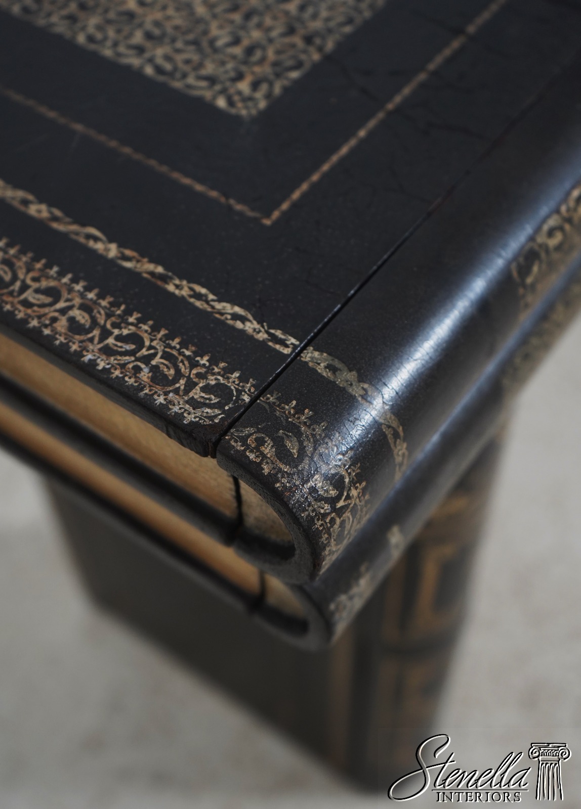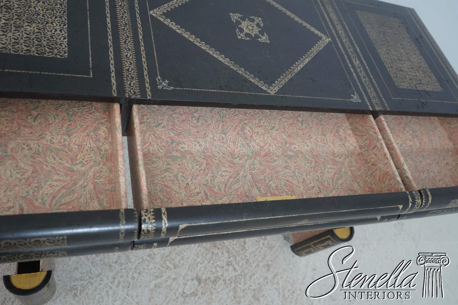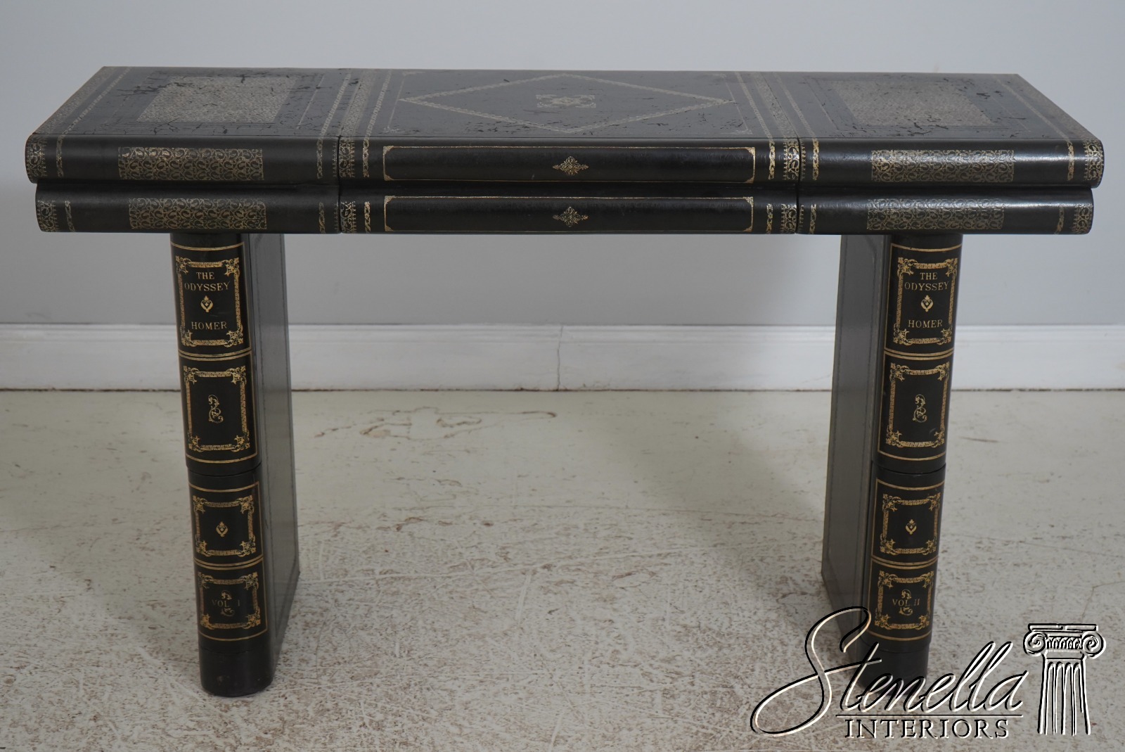 Details: Decorative Paper Lined Drawers High Quality Construction Nice Tooled Leather Top Unusual Design Book Form Table Resembles Stacks Of Classical Books Homer ‘The Odyssey’ Offered @ Fraction Original Retail Cost