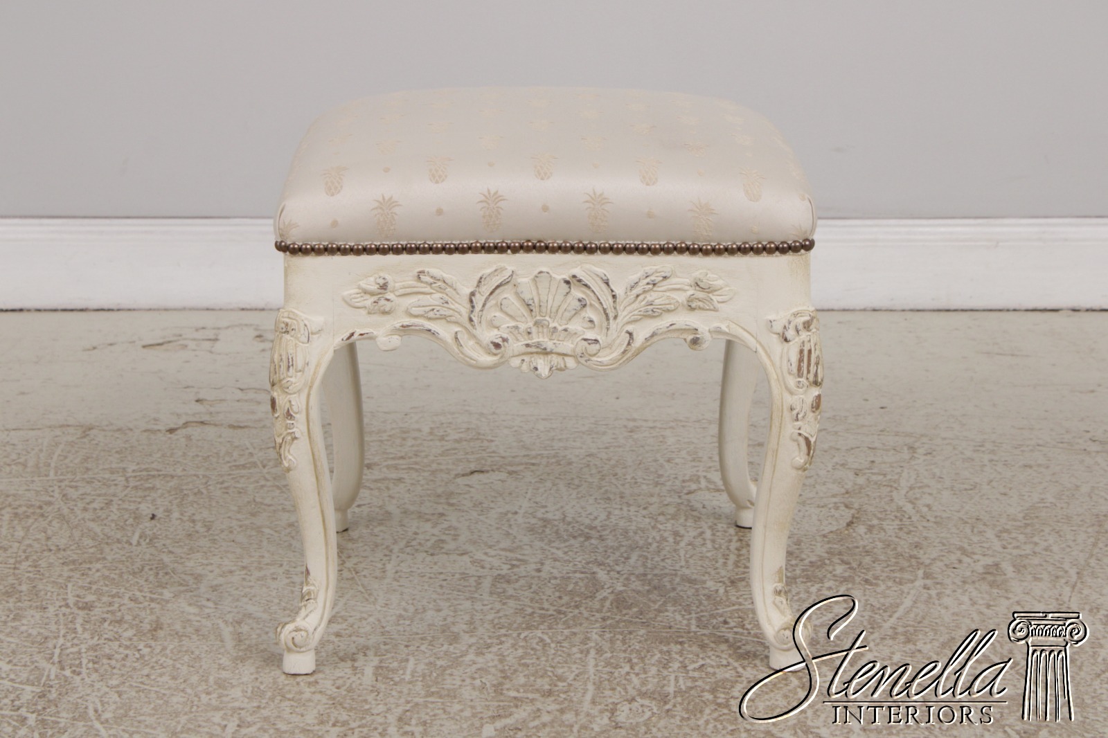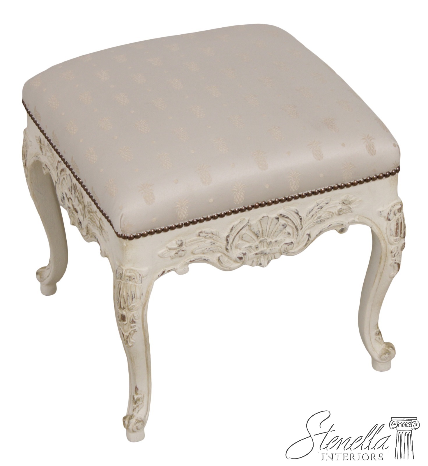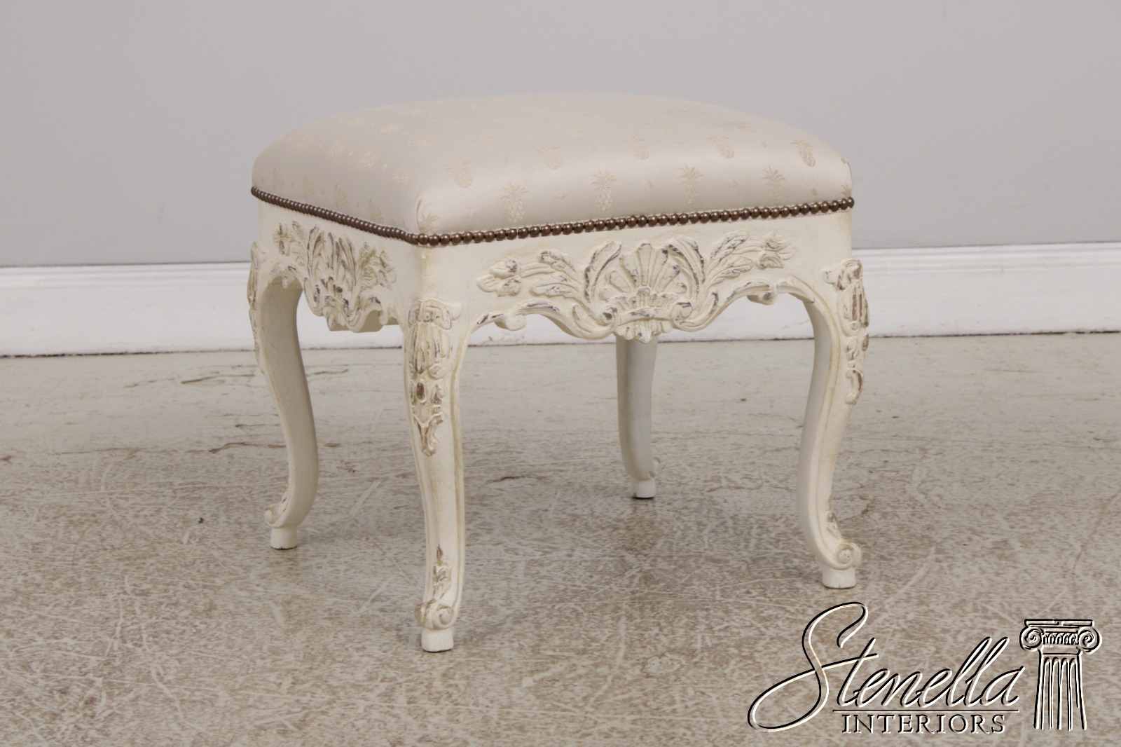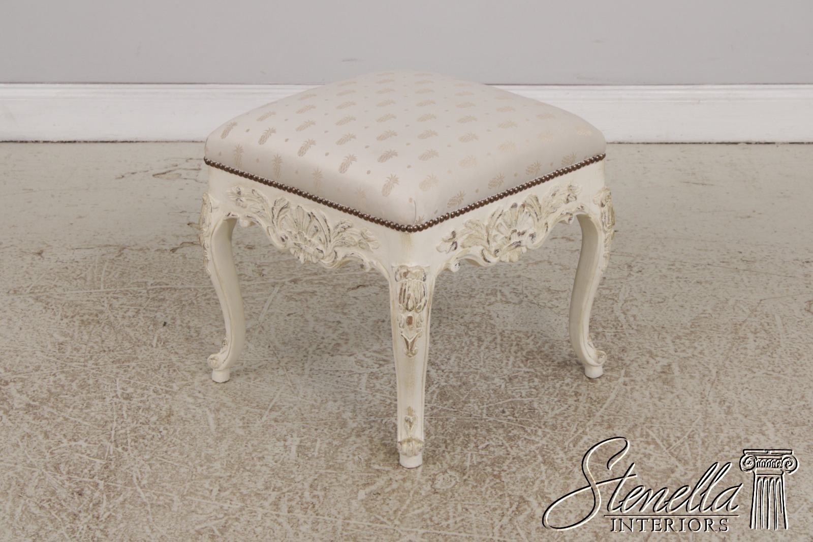 51607EC: French Style Square Paint Decorated Ottoman Or Stool