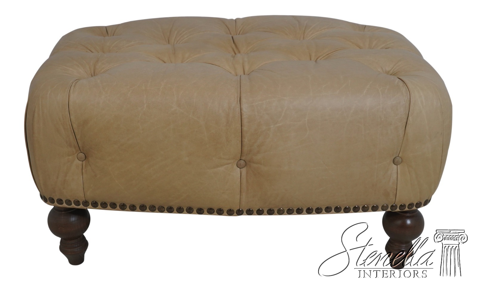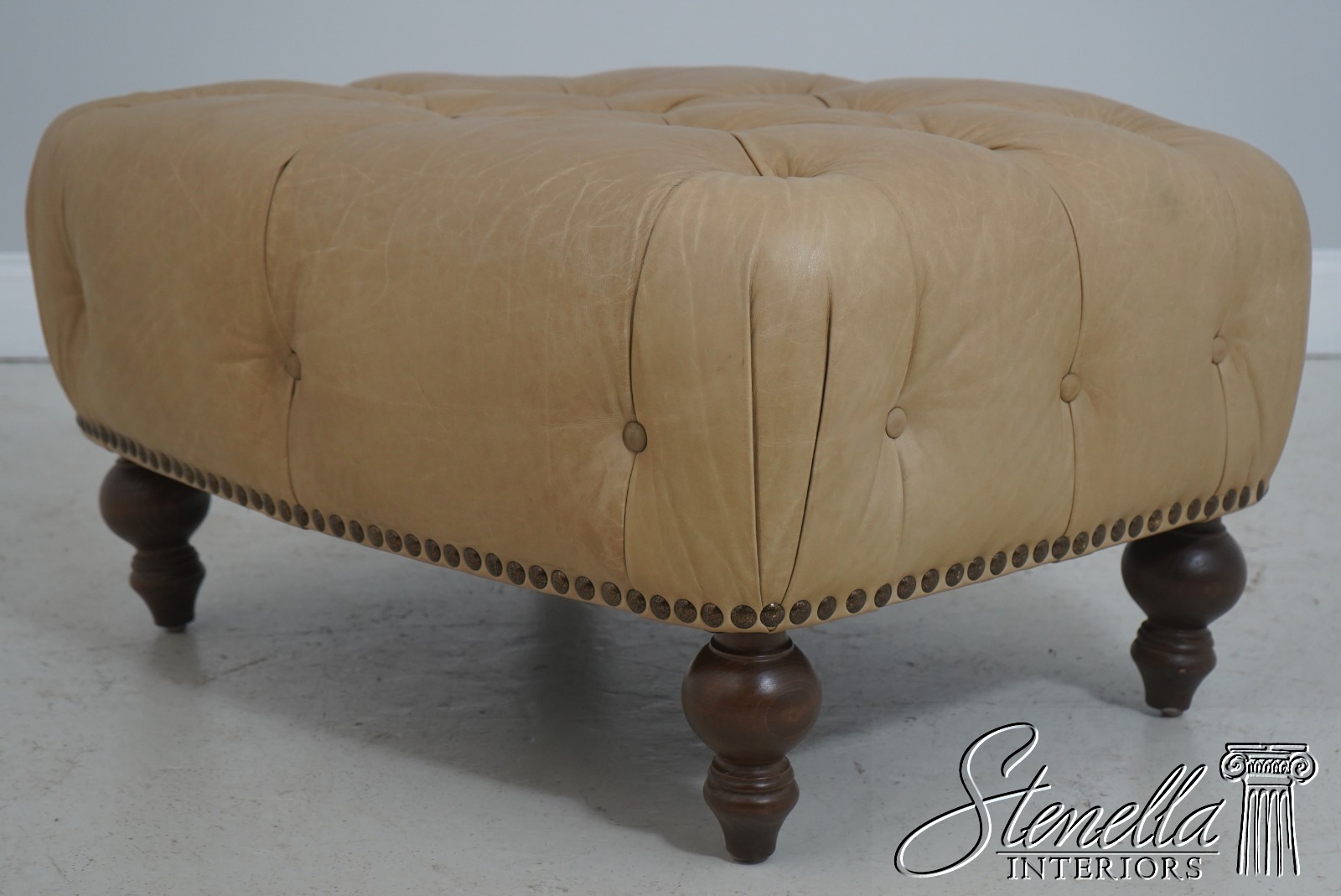 71190: Chesterfield Style Tufted Leather Ottoman Stool