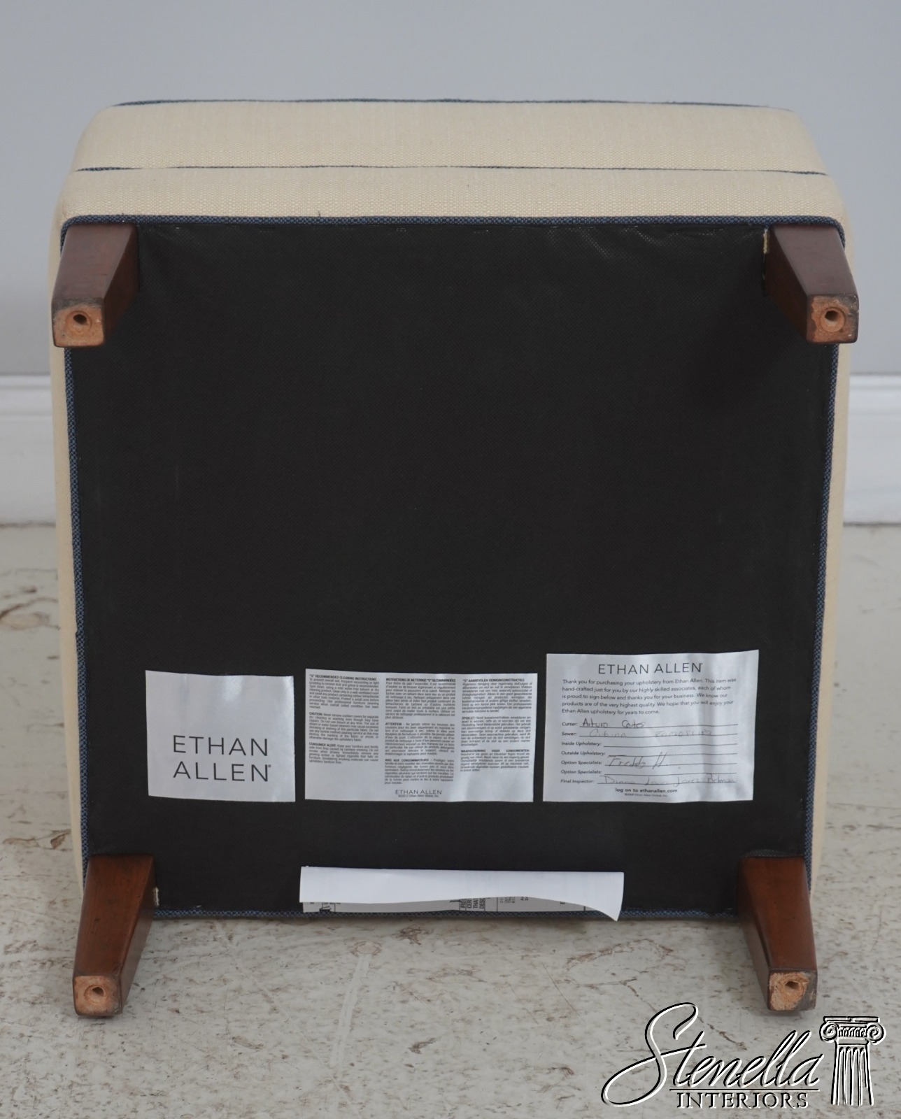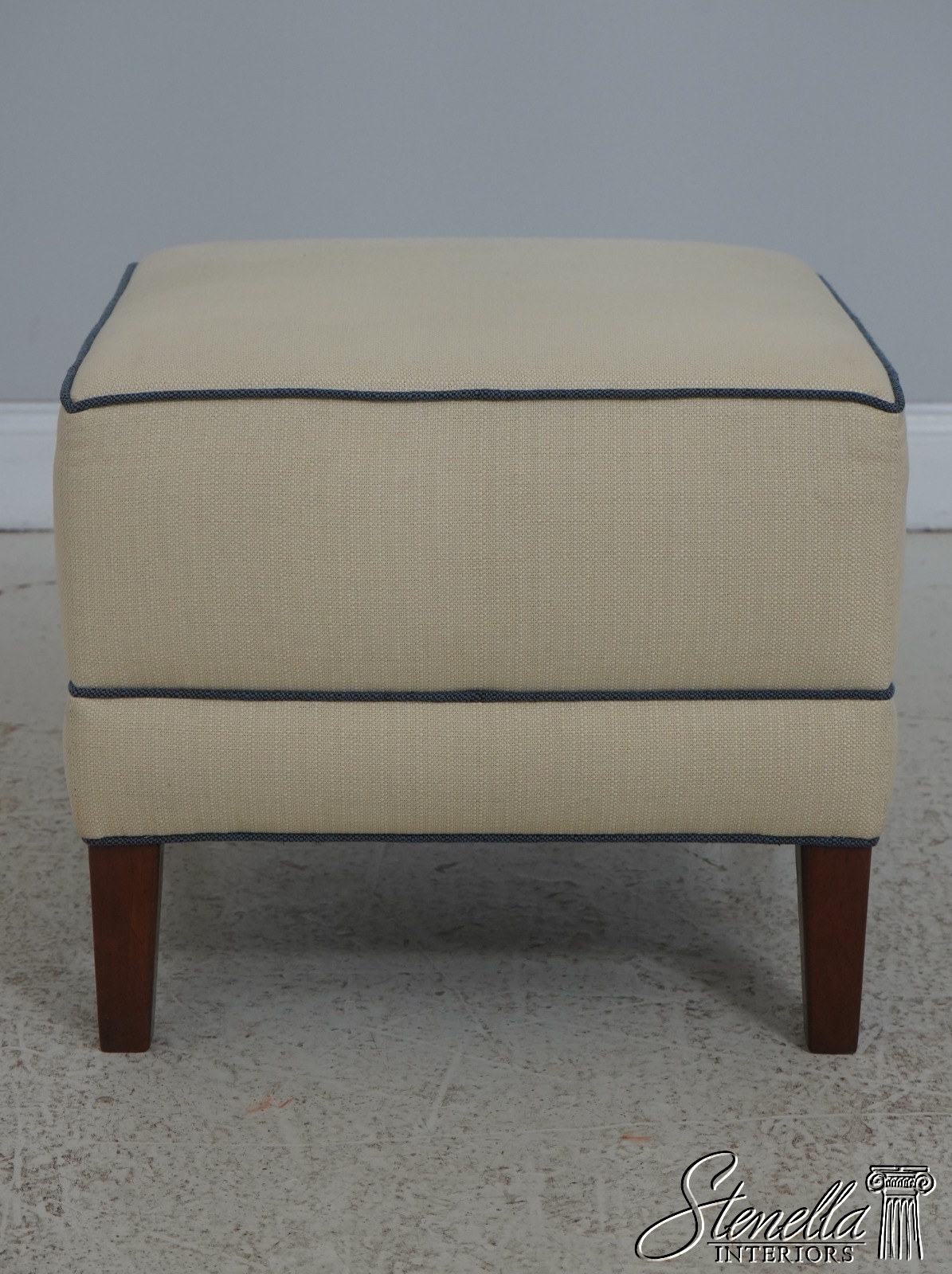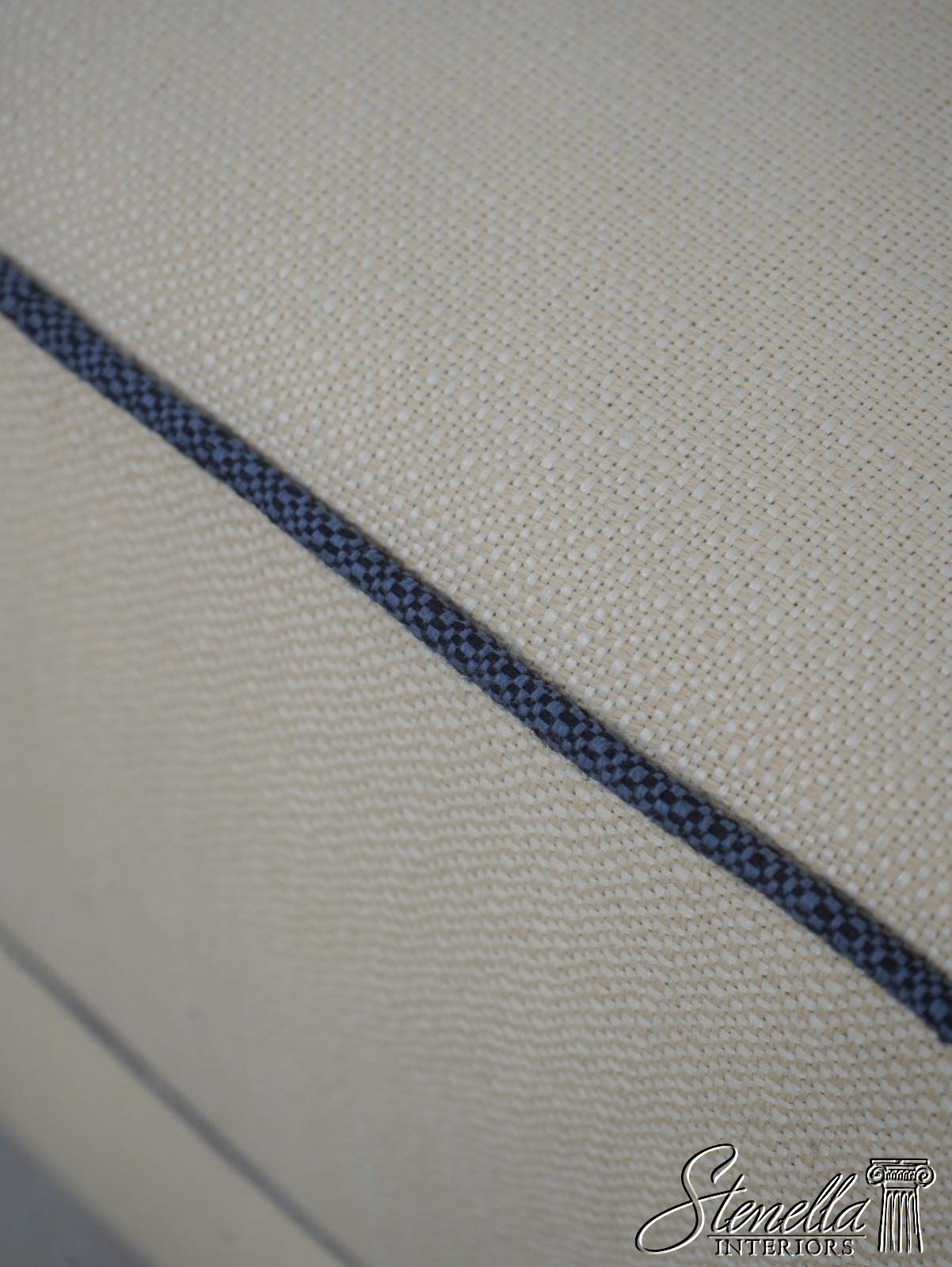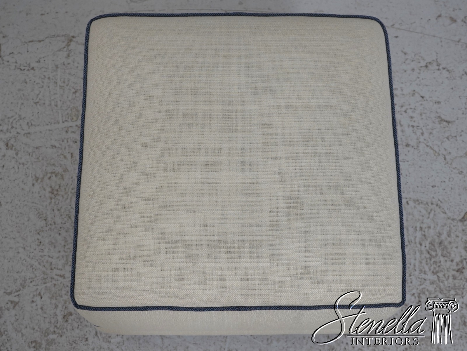 Details: Modern Design Quality Construction Covered In Quality Off White Fabric w. Blue Trim Clean Well Cared For Upholstery Buyer Could Also Add Wheels Or Casters If Desired Offered @ Fraction Original Retail Cost