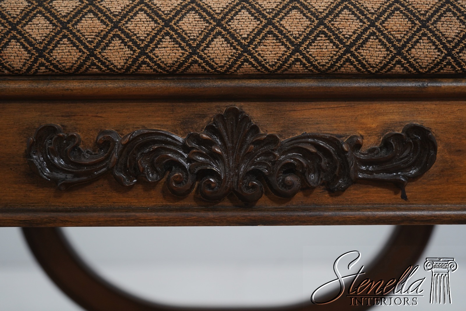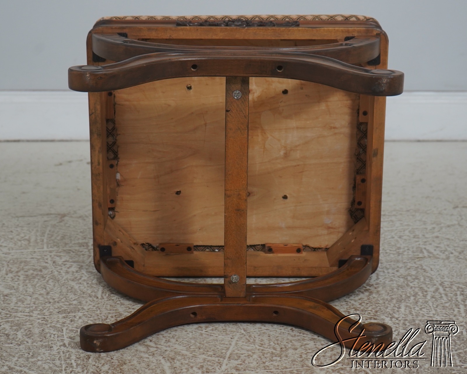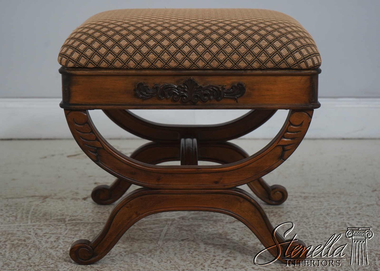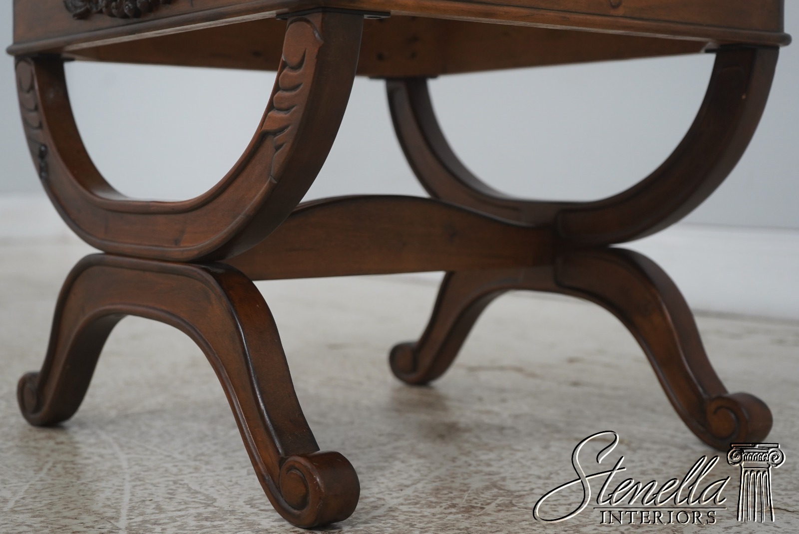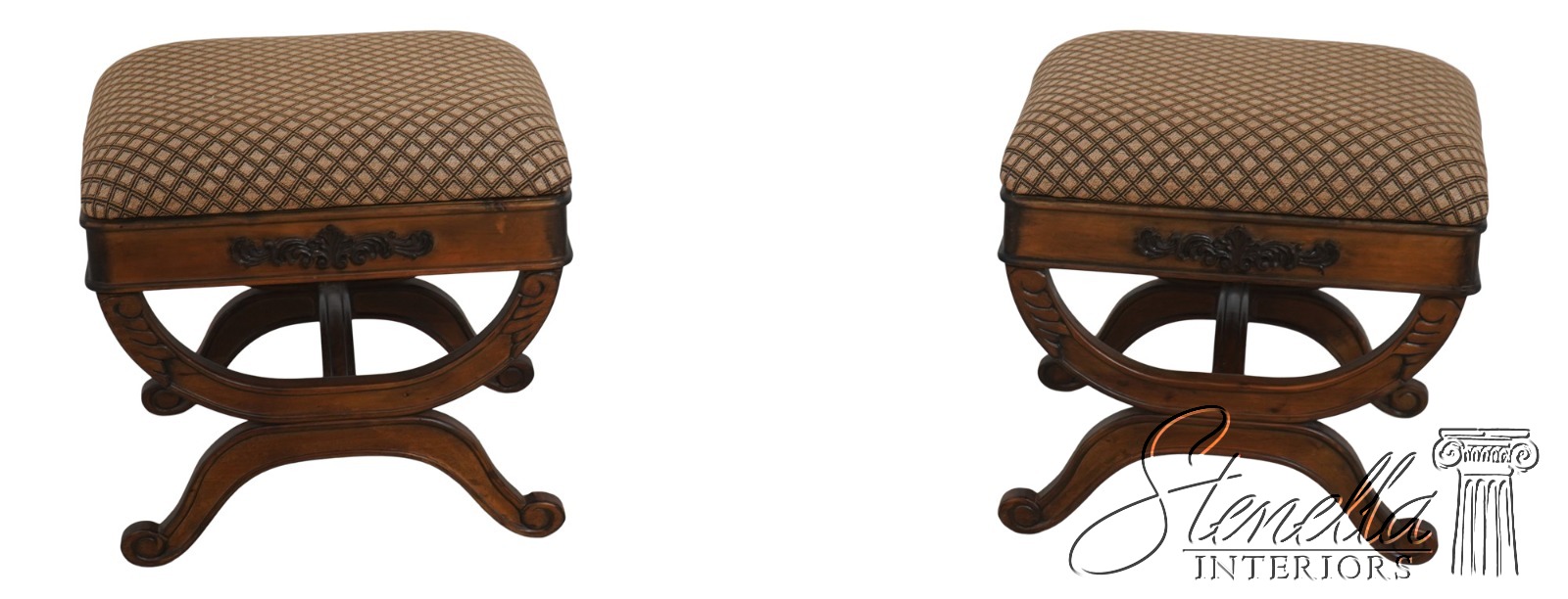 Details: Regency Style Walnut Finish Fine Carved Details High Quality Construction Nice Decorator Stools Stretcher Base Frame Un-Marked As To Manufacture Offered @ Fraction Original Retail Cost