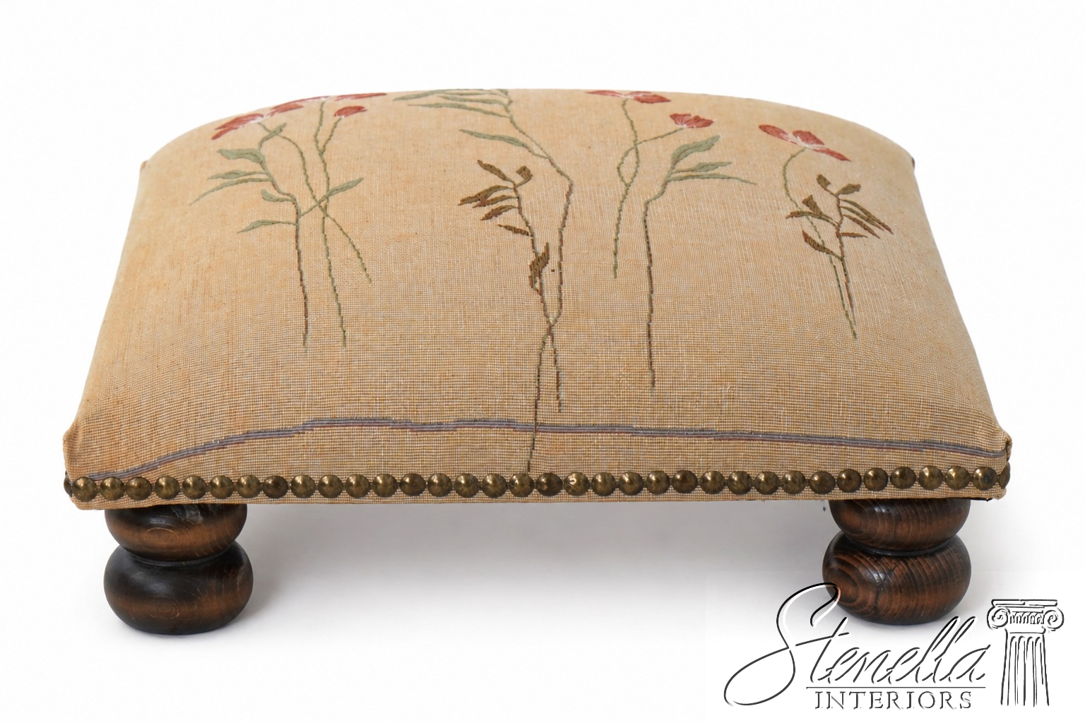 Details: Bun Feet Quality Construction Quality Tapestry Type Upholstery Floral Design Tack Head Trim Needlepoint Tapestry Un-Marked as To Manufacture Offered @ Fraction Original Retail Cost