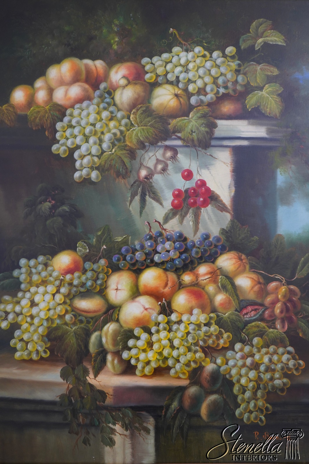 F52118EC: Large Framed Still Life Oil Painting On Canvas ~ Grapes
