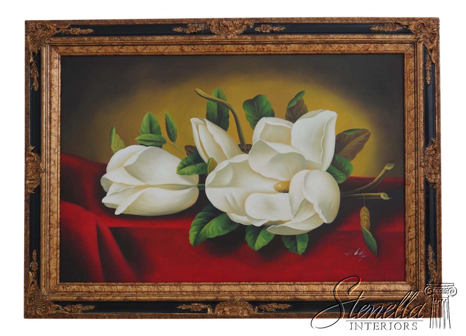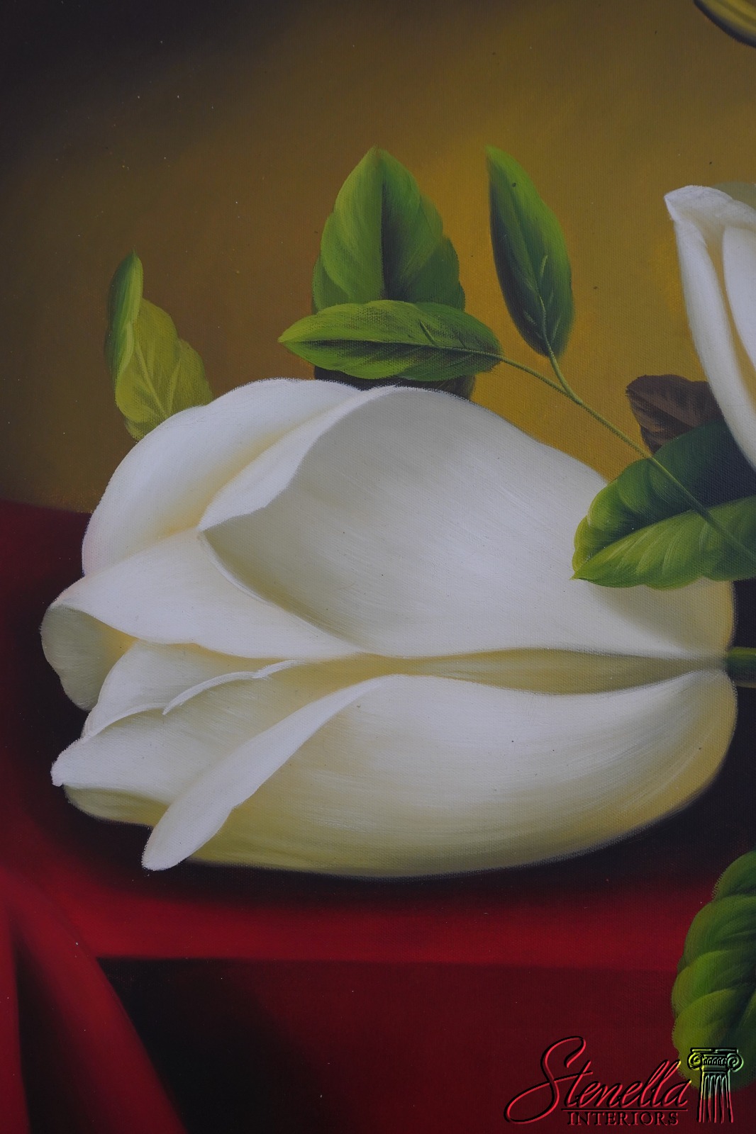 F64997: MAGNOLIA FLOWERS Still Life Artist Signed Oil Painting On Canvas