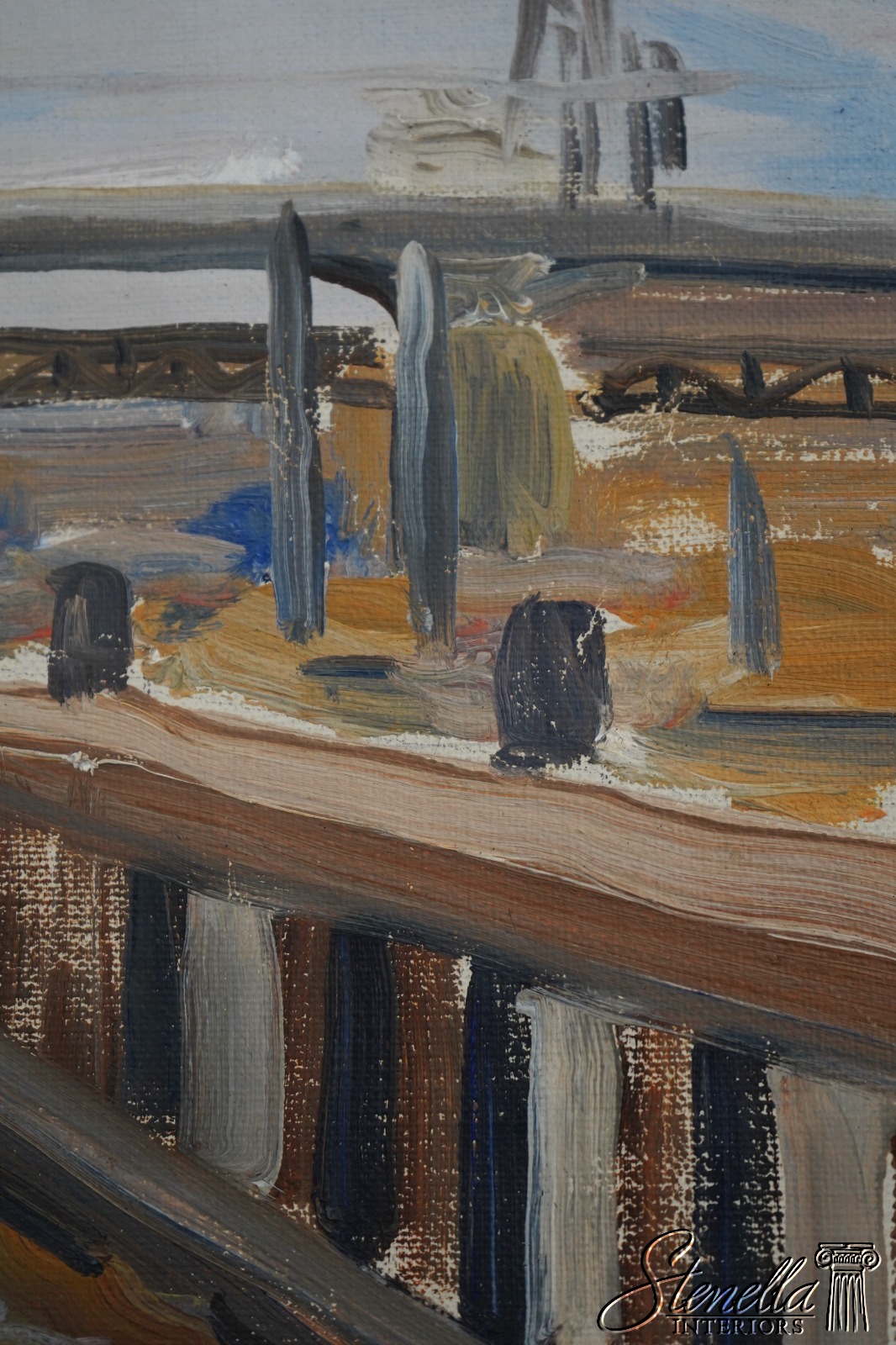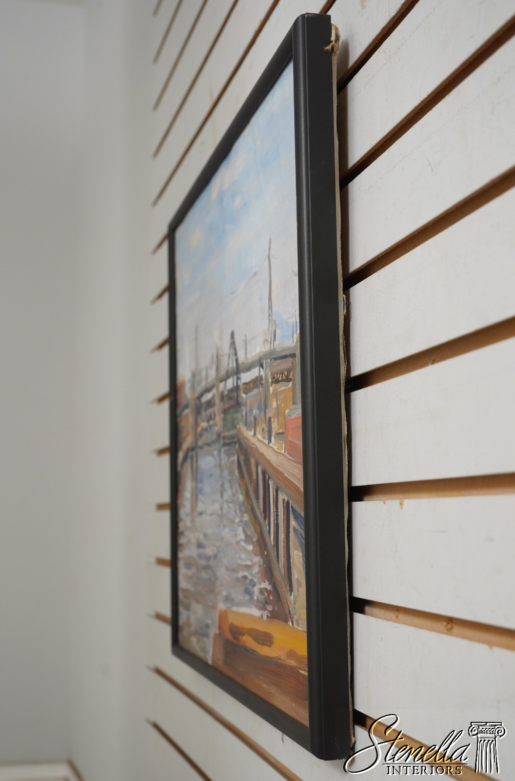 F66991: Modern Waterfront Bridge Oil Painting On Canvas