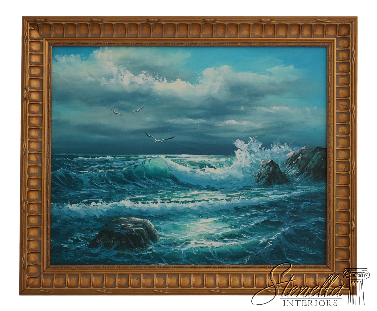 F67496: W. DAWSON Signed Ocean & Seagull Oil Painting On Canvas