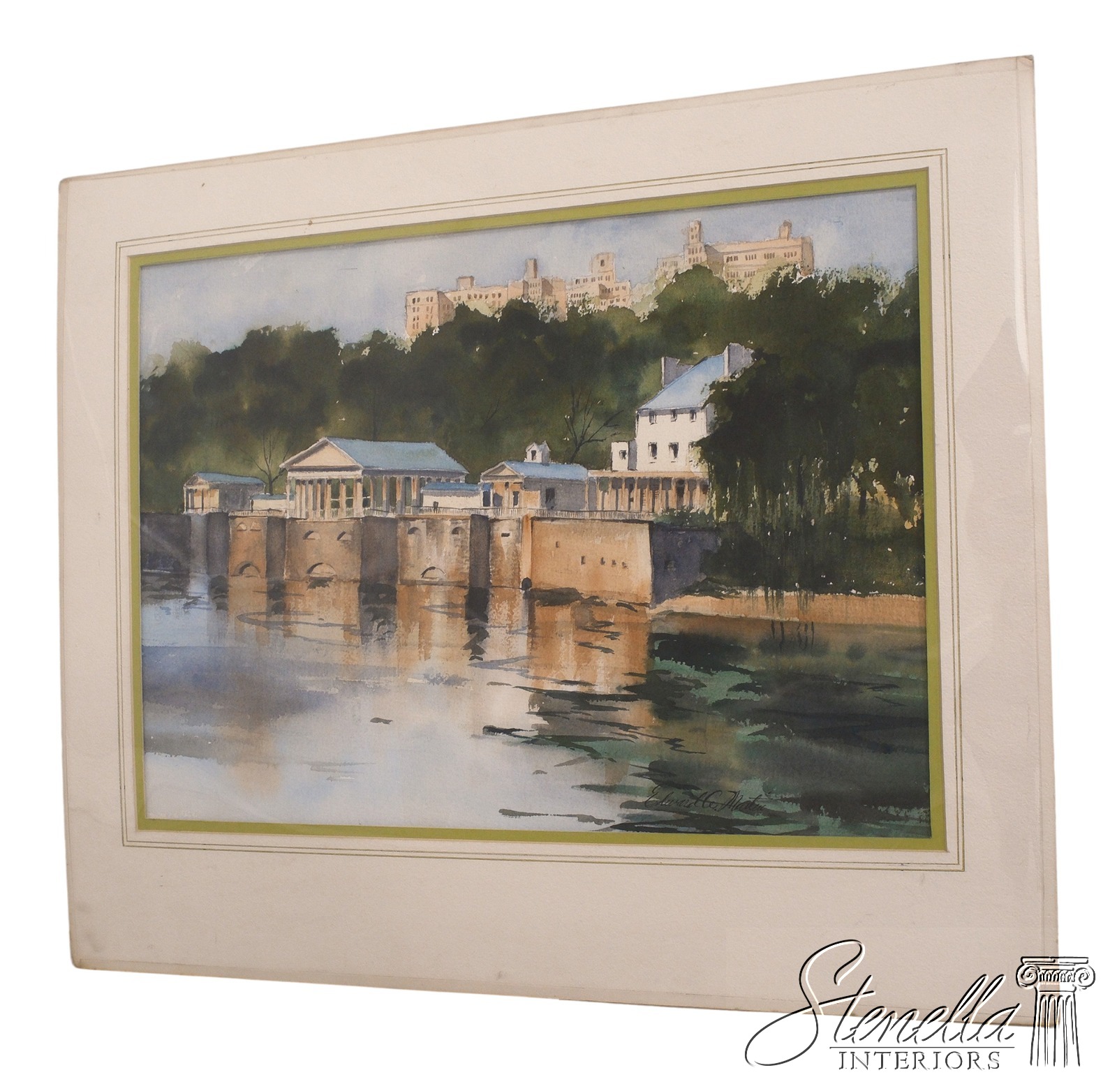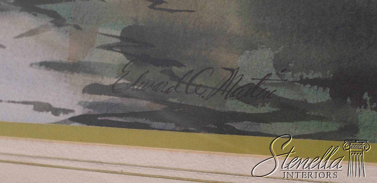 F68429: EDWARD MARTIN River Scene Hand Painted Watercolor Painting
