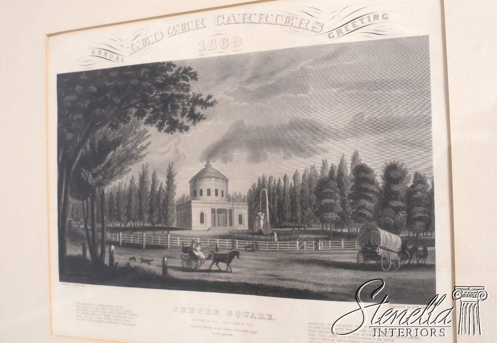 F68505: AB WALTERS Central Square Philadelphia Framed & Matted Engraving