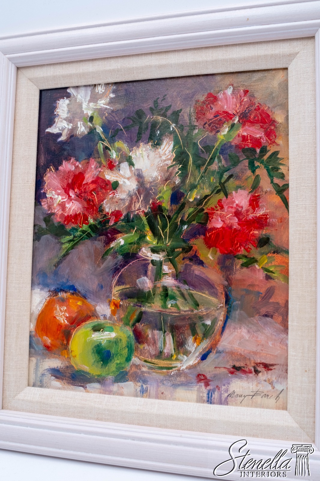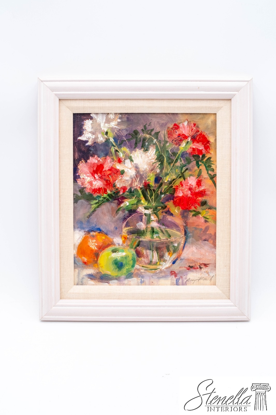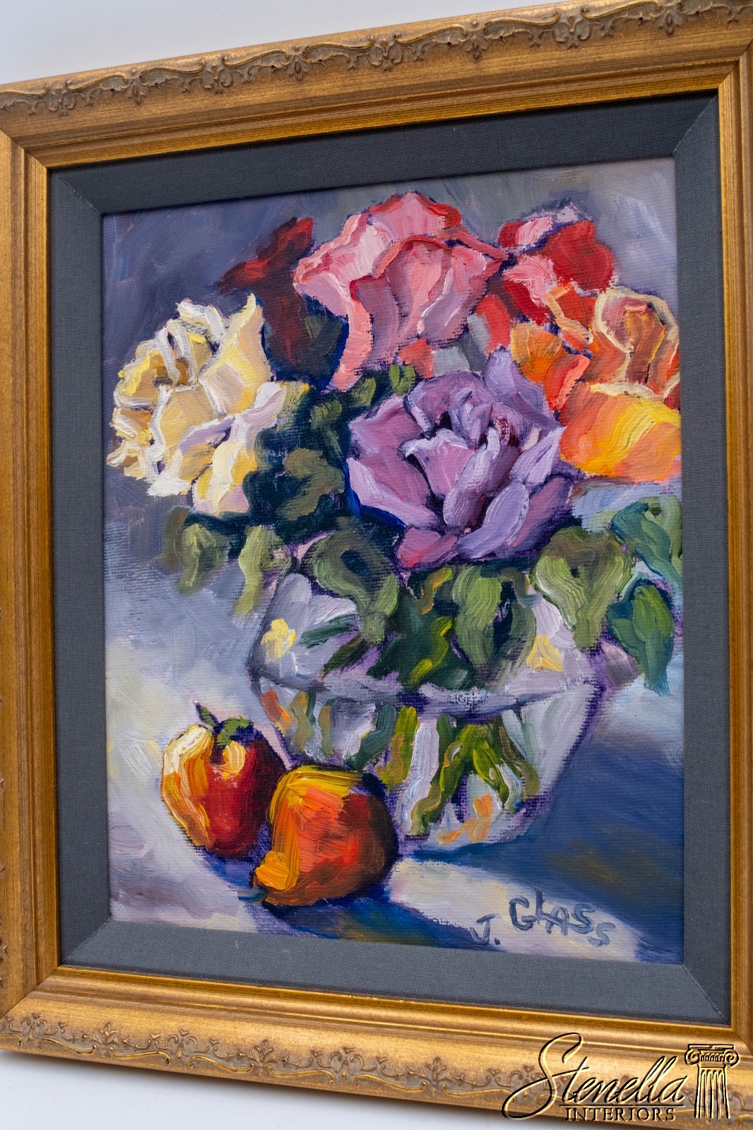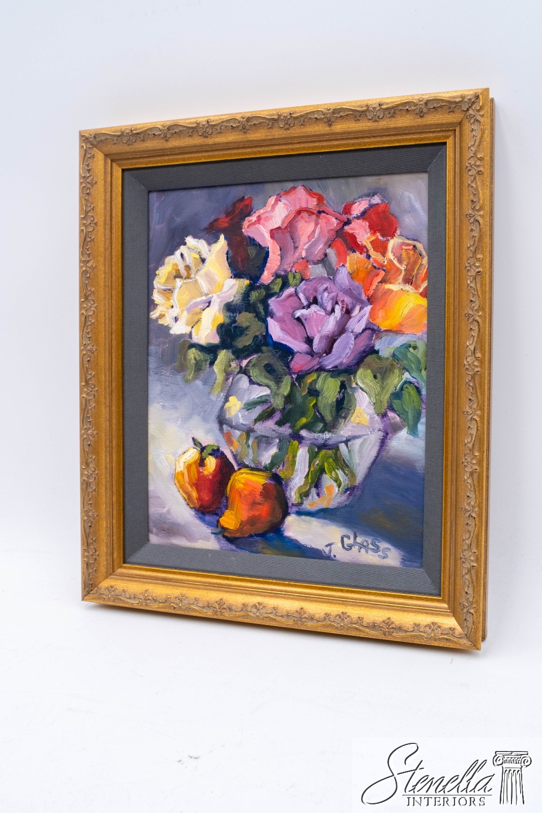 F69164: Pair NANCY BARCH and J GLASS Fruit & Flower Still Life Oil Paintings Artist Signed